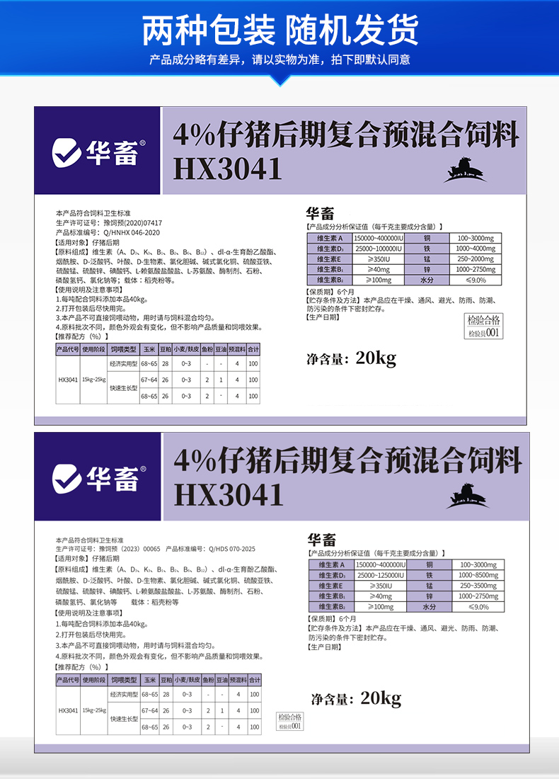 【整吨更优惠】华畜4%仔猪后期复合预混料20kg 适口性好拉骨架