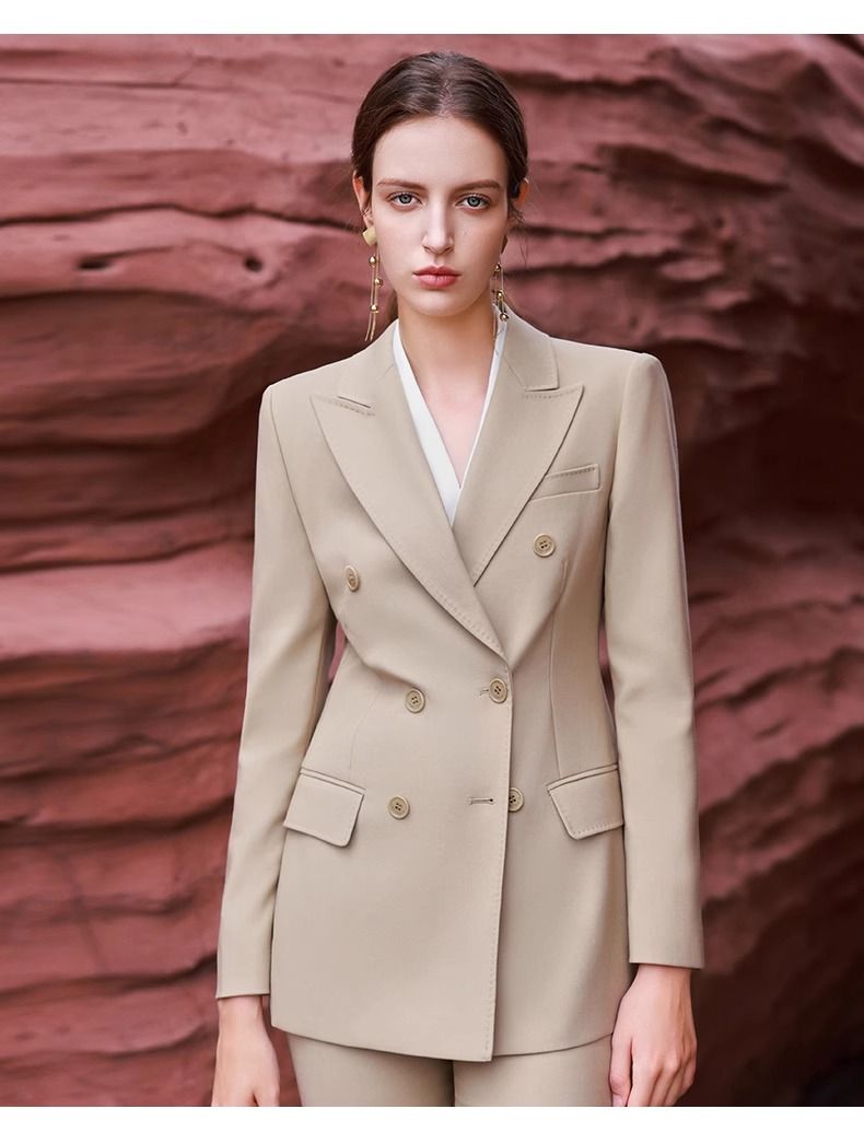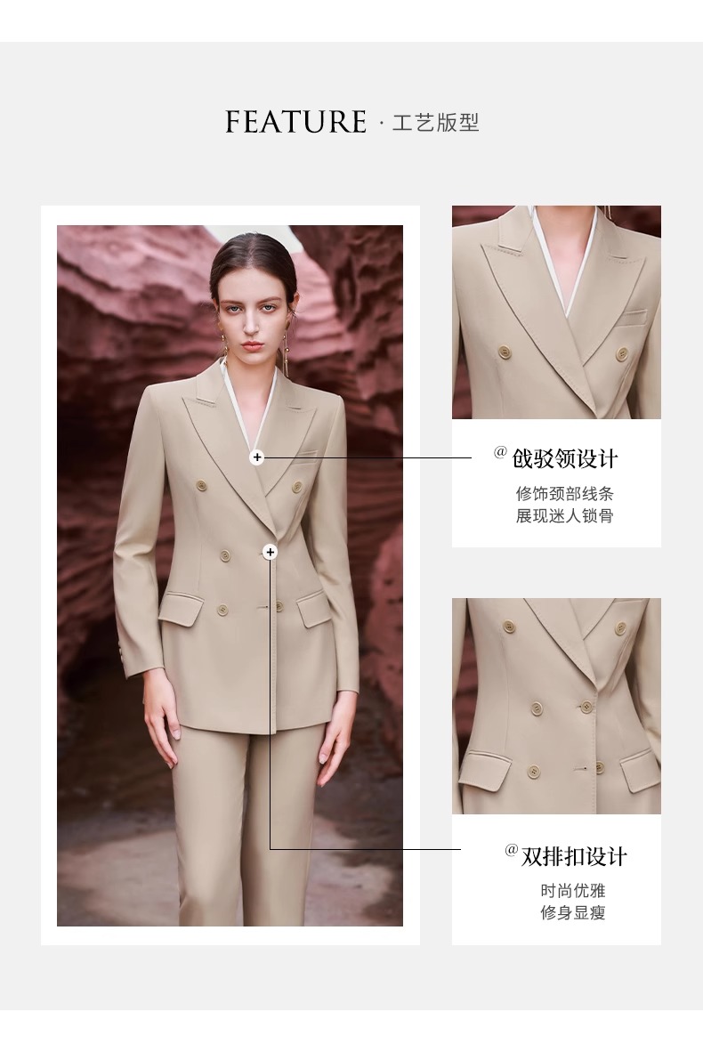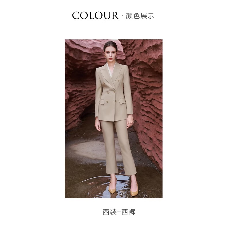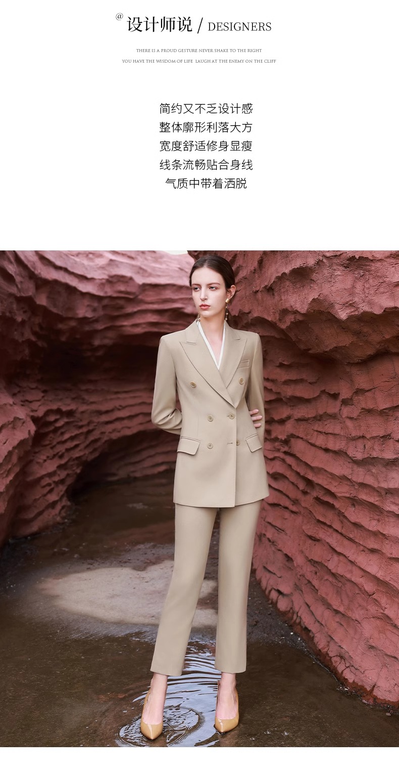 时尚干练卡其色双排扣西服套裤气质白领上班族西装套装名媛职业装
