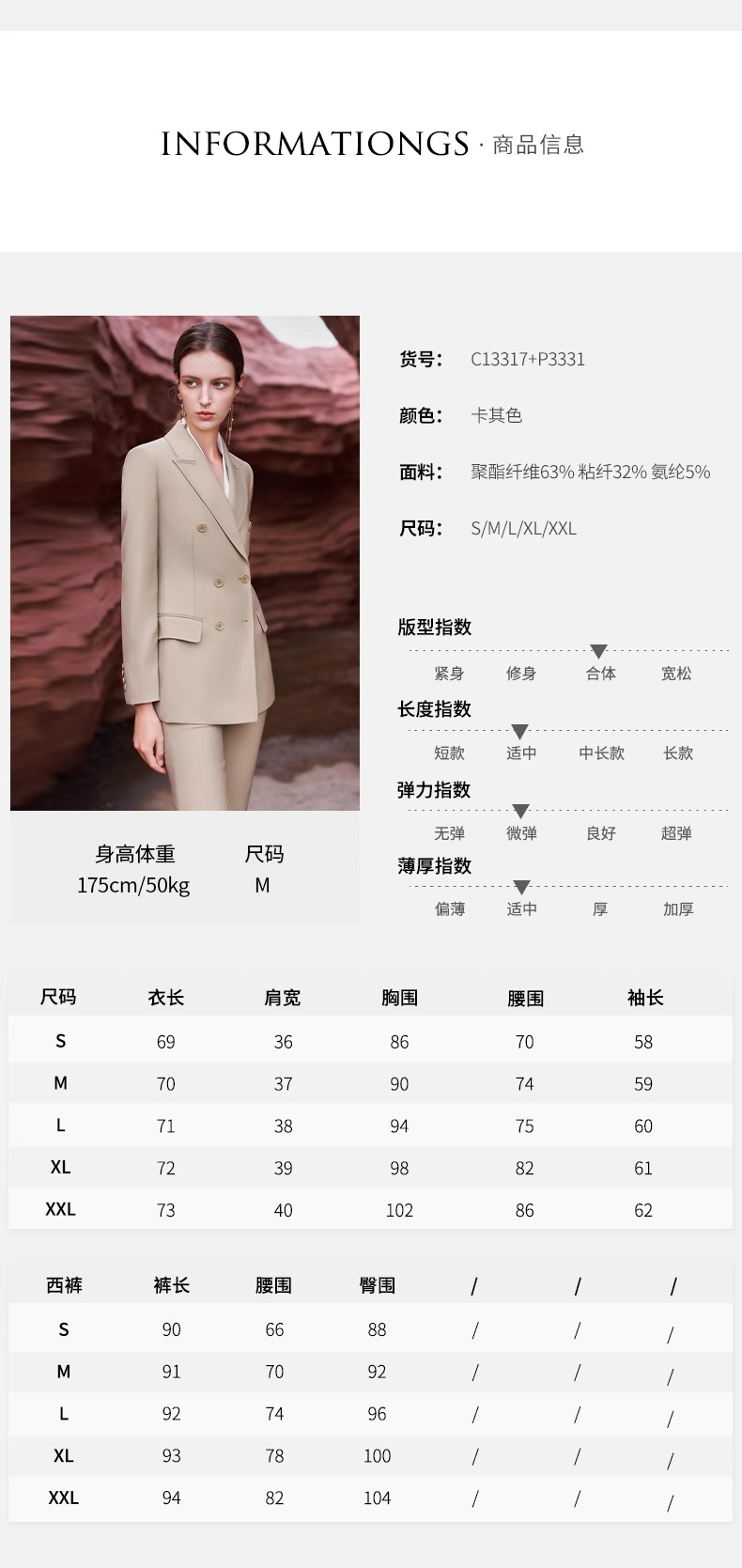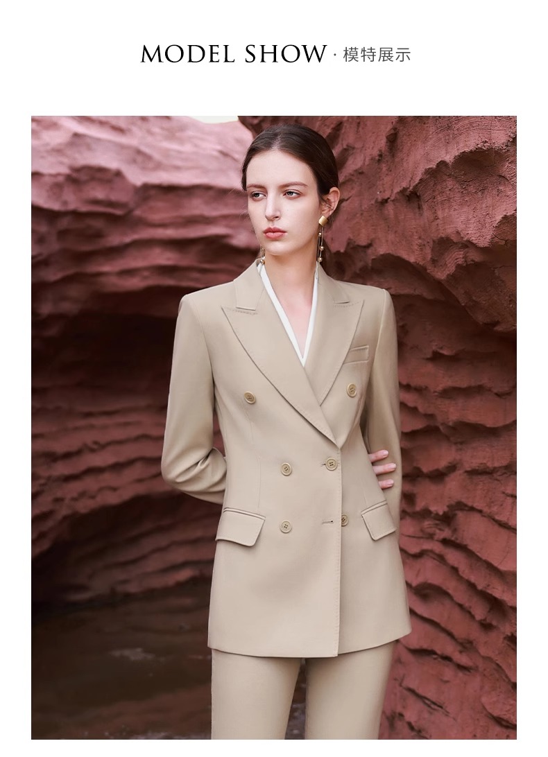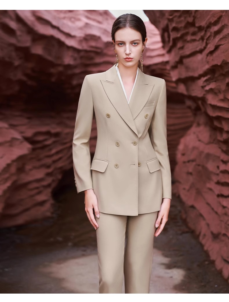 时尚干练卡其色双排扣西服套裤气质白领上班族西装套装名媛职业装