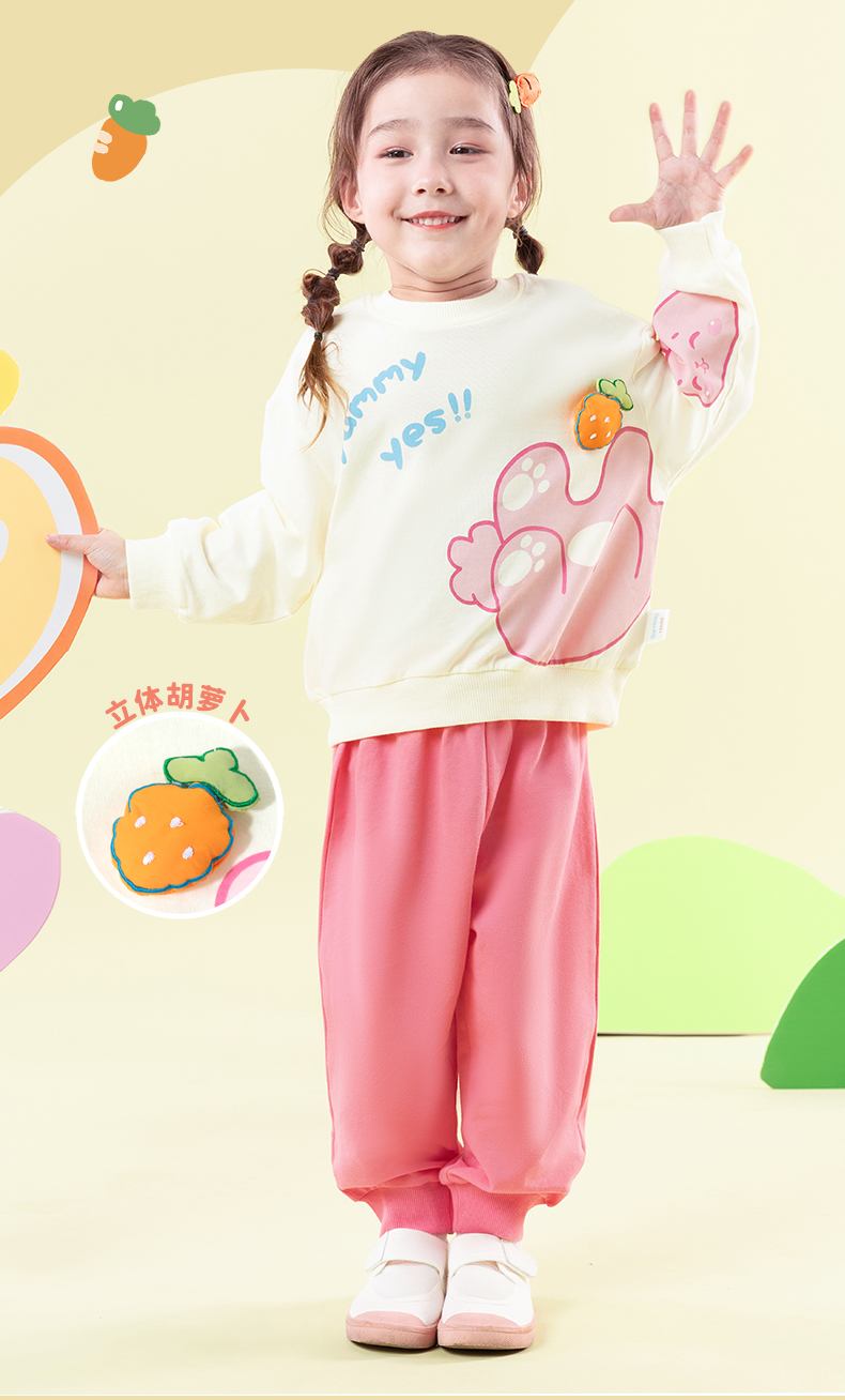 ZB1ET005贝贝怡童装女童套装两件套纯棉新款卫衣春秋休闲长裤