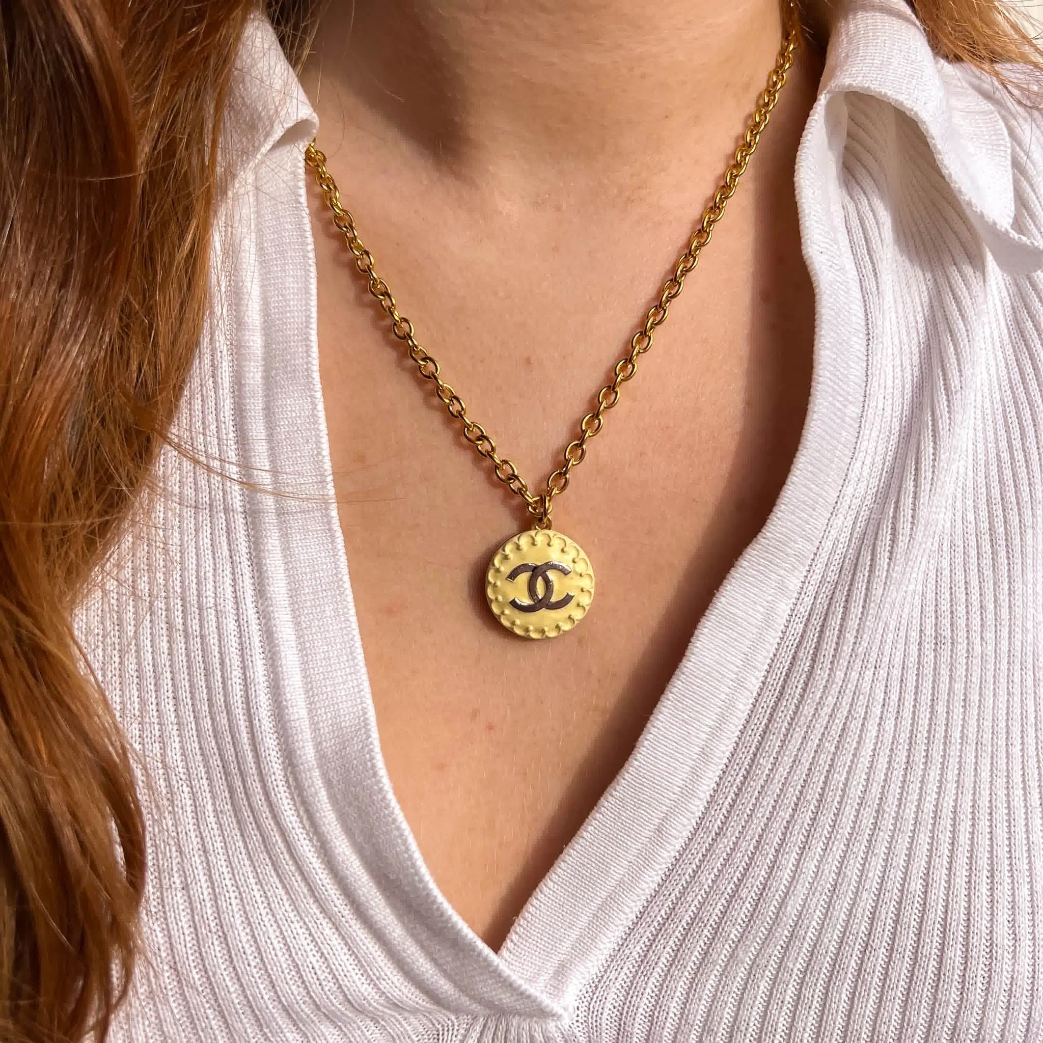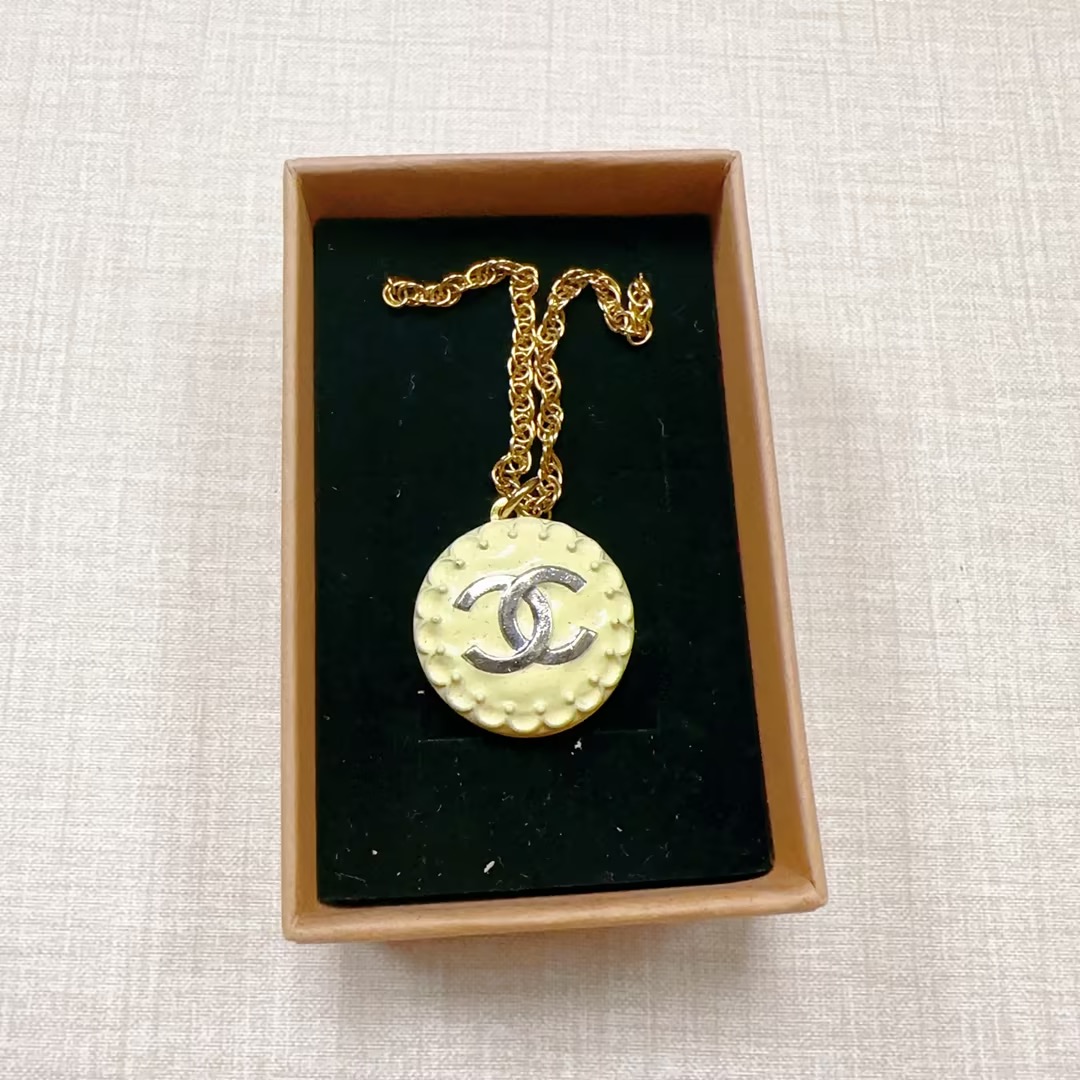 北京仓|Gigi Paris-奶油色 双C logo-Vintage 中古纽扣 项链[法国设计师]