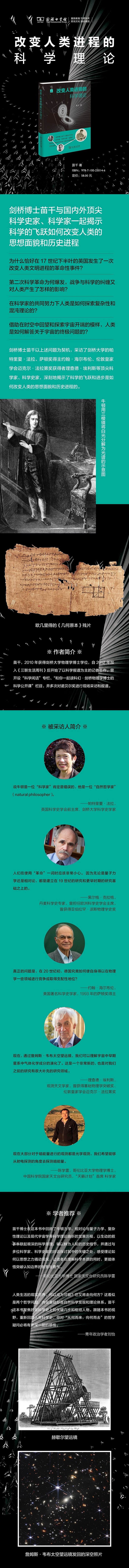 剑桥博士苗千以上述问题为契机,采访了剑桥大学科学史家帕特里夏·法拉、萨顿奖得主约翰·海尔布伦、伦敦皇家学会迈克尔·法拉第奖获得者理查德·埃利斯等顶尖科学家、科学史家,深刻地揭示了科学的飞跃和进步是如何改变人类的思想面貌和历史进程的。