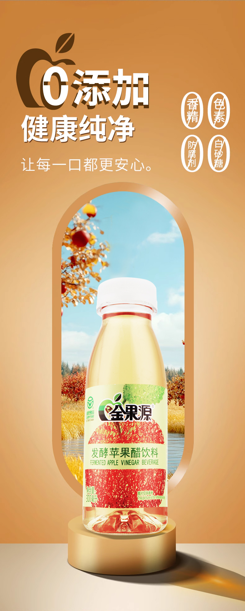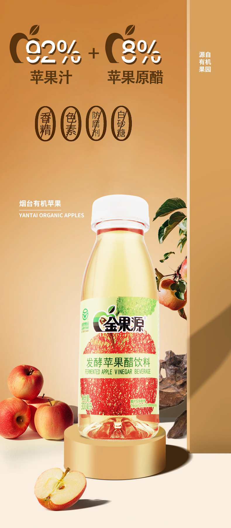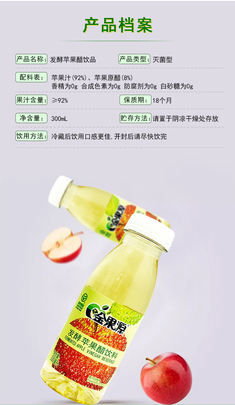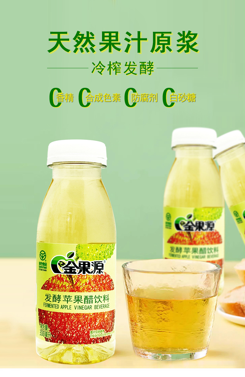 *自营*苹果醋6瓶装 | 92%果汁二次发酵苹果醋饮料饮品家庭装金果源