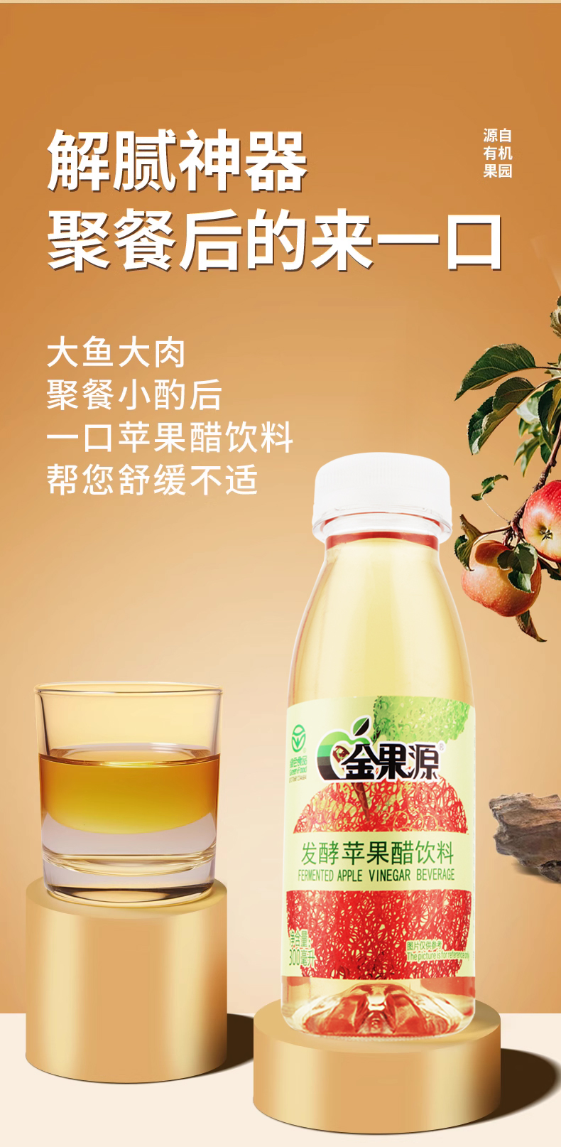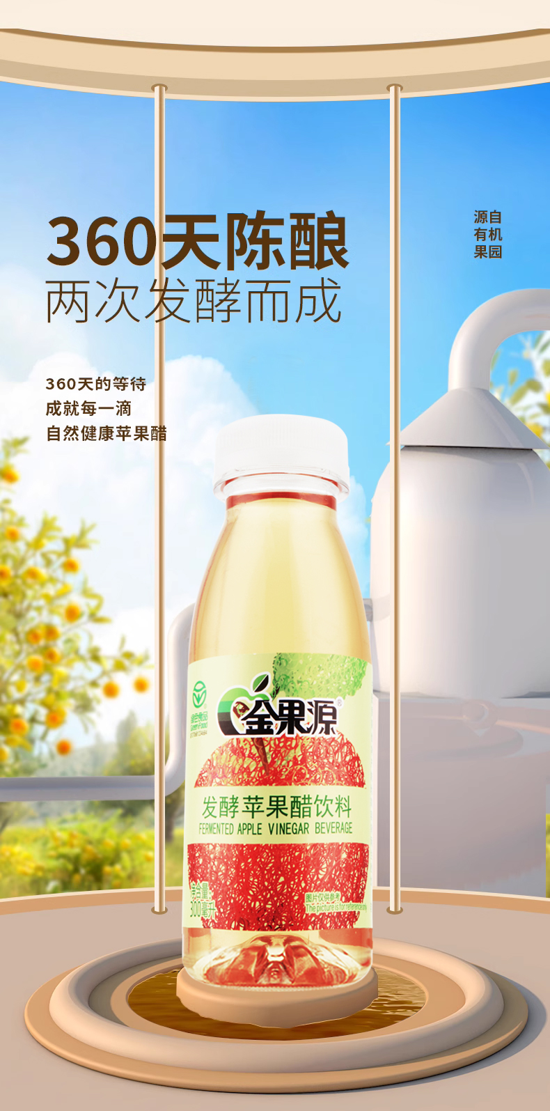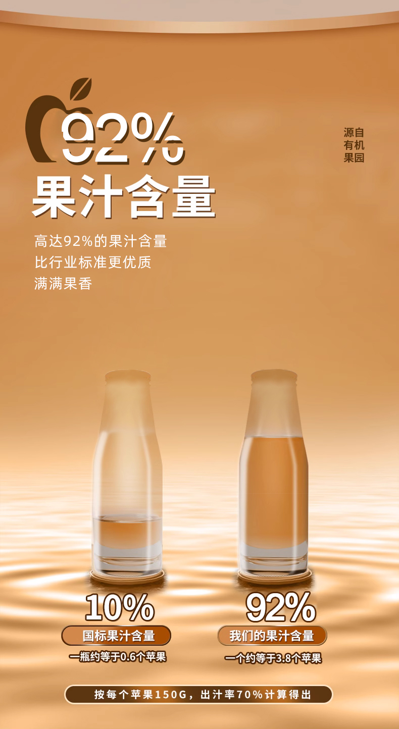 *自营*苹果醋6瓶装 | 92%果汁二次发酵苹果醋饮料饮品家庭装金果源