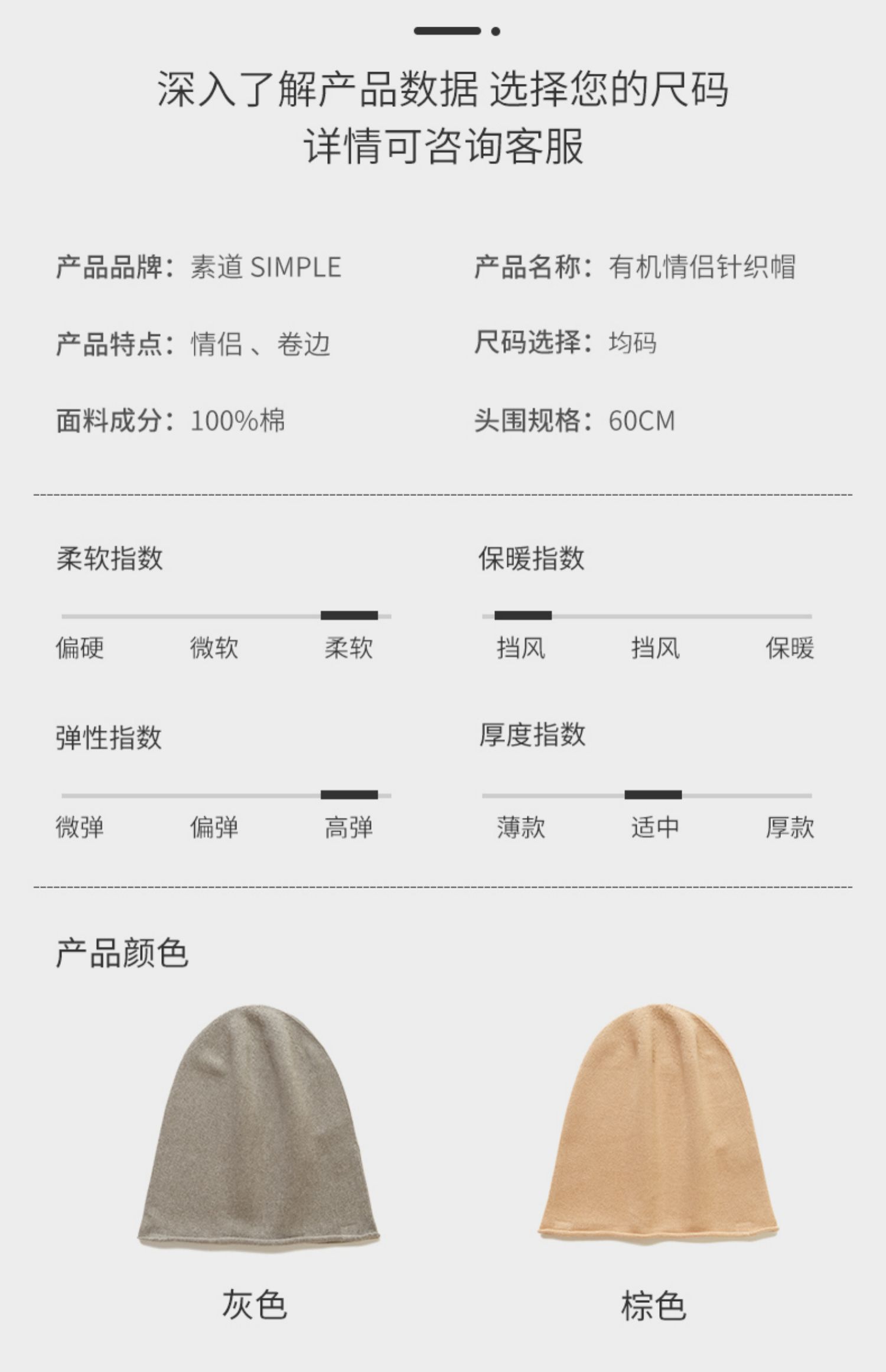 敦煌有机彩棉 素道情侣针织帽 男女秋冬保暖帽子 防风纯棉帽