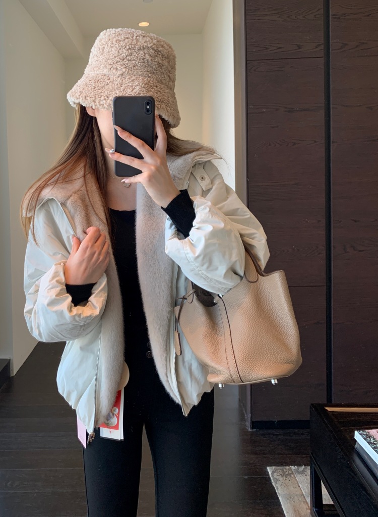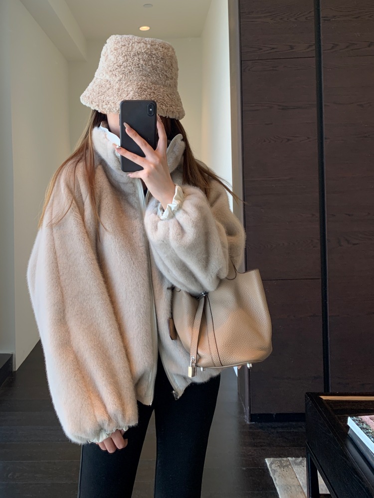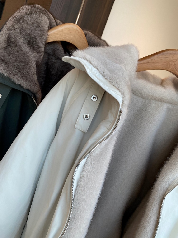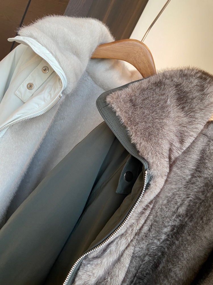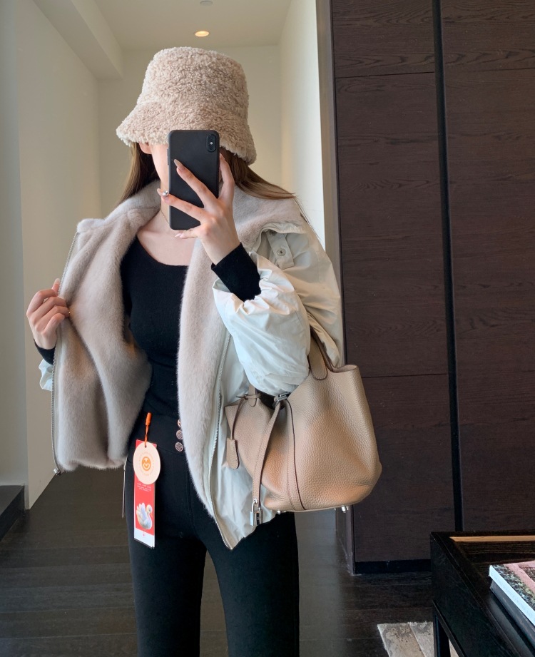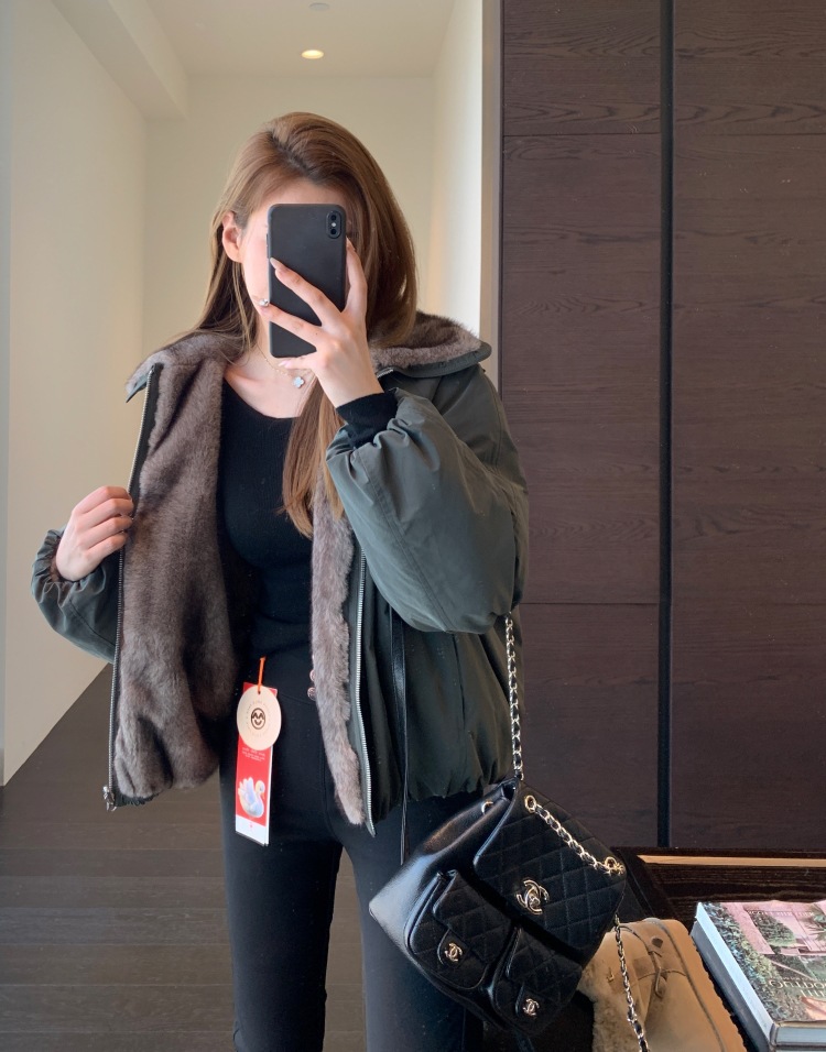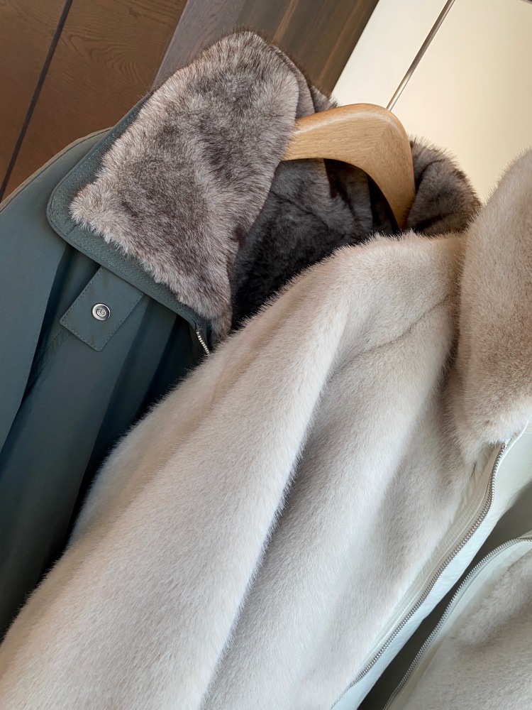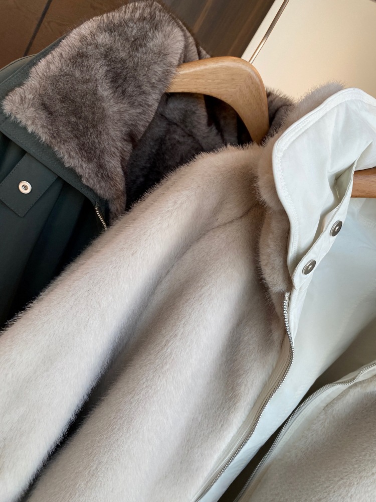 加厚的厚度,挺括有型且防风,皮毛轻盈无厚重感!