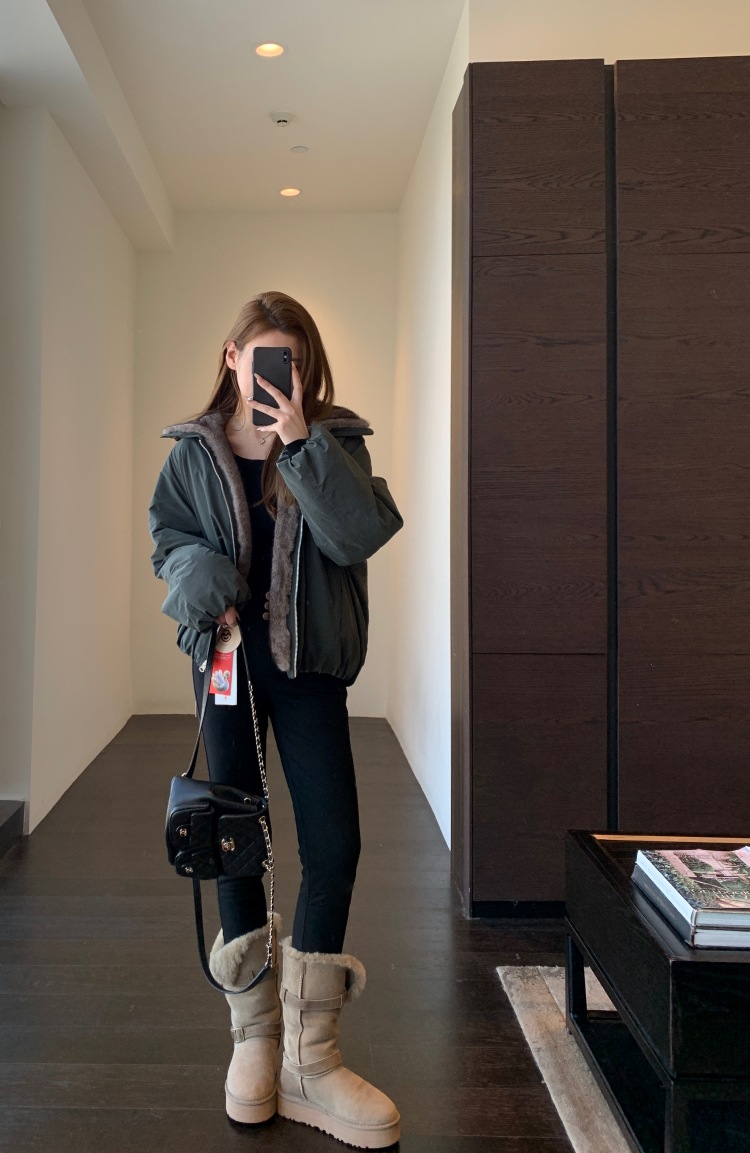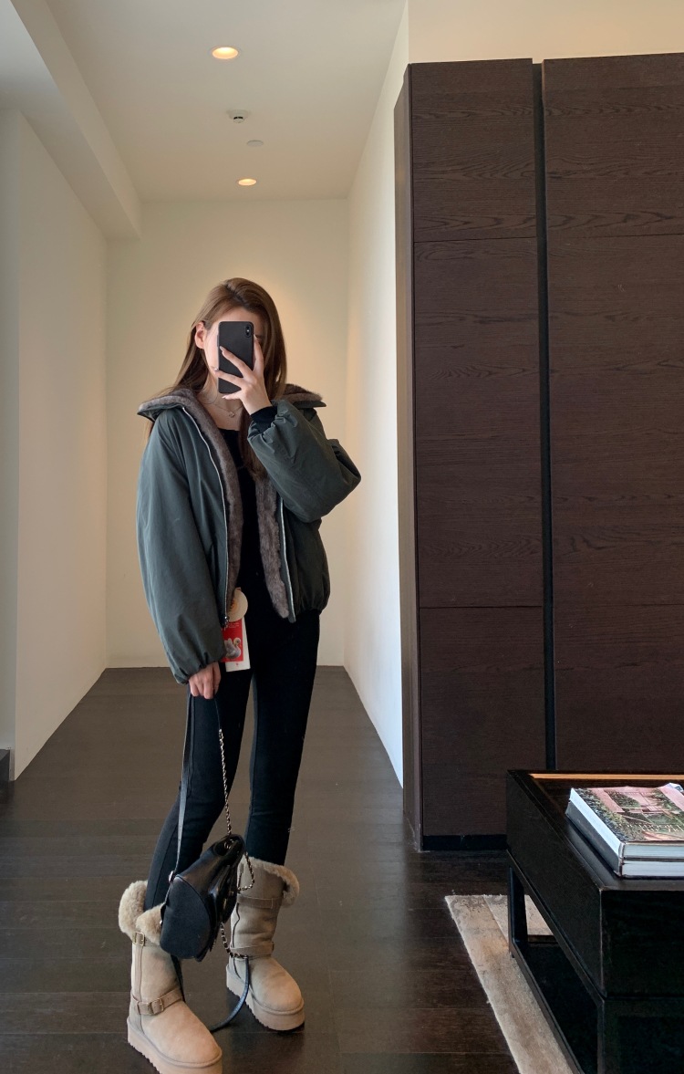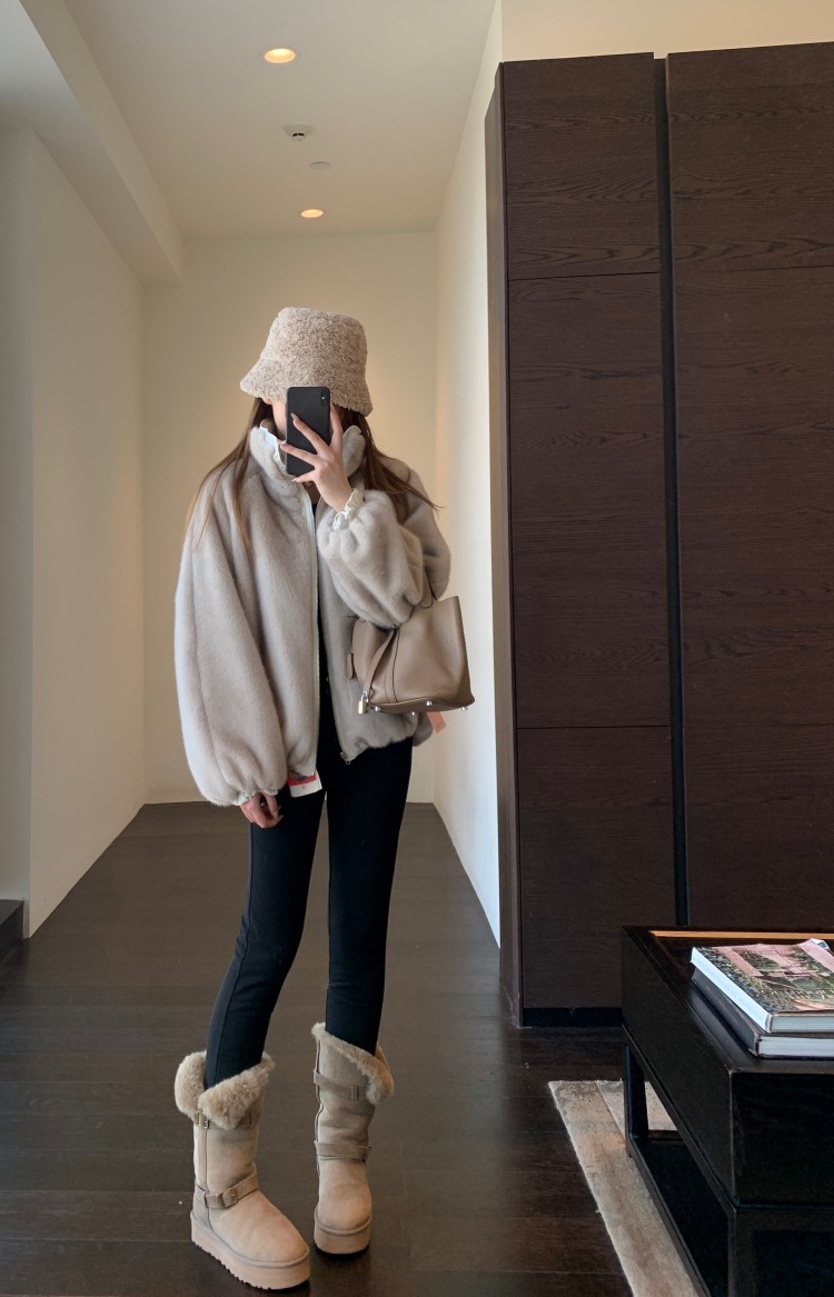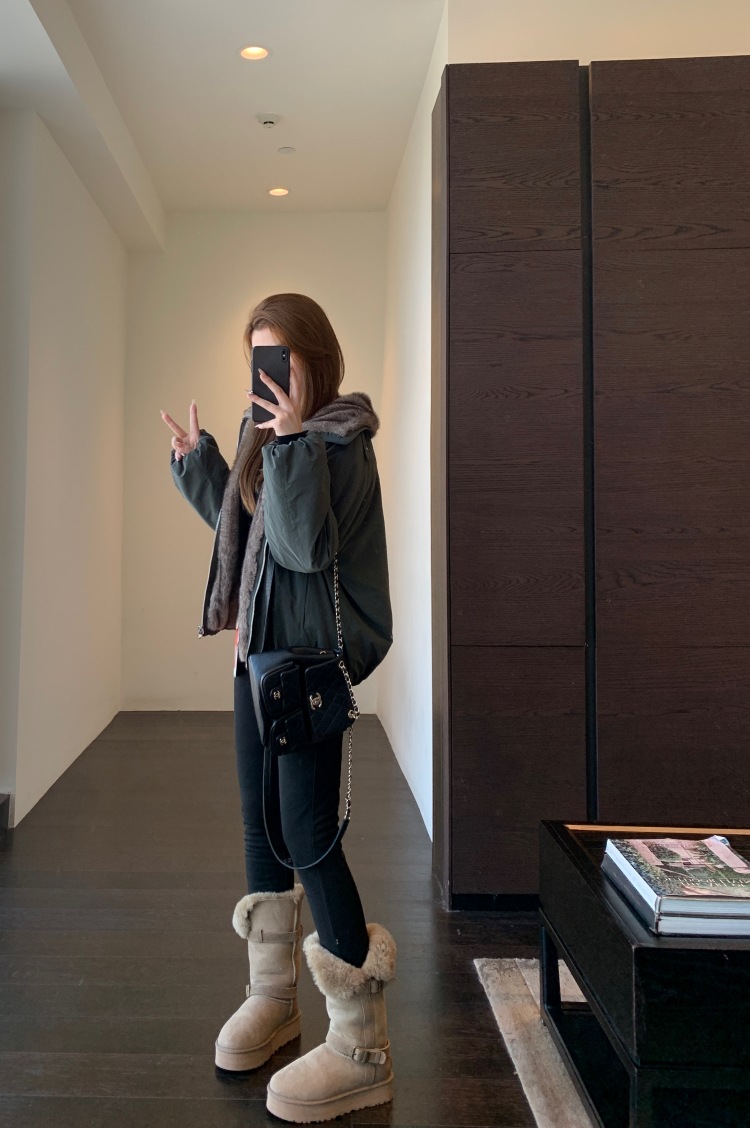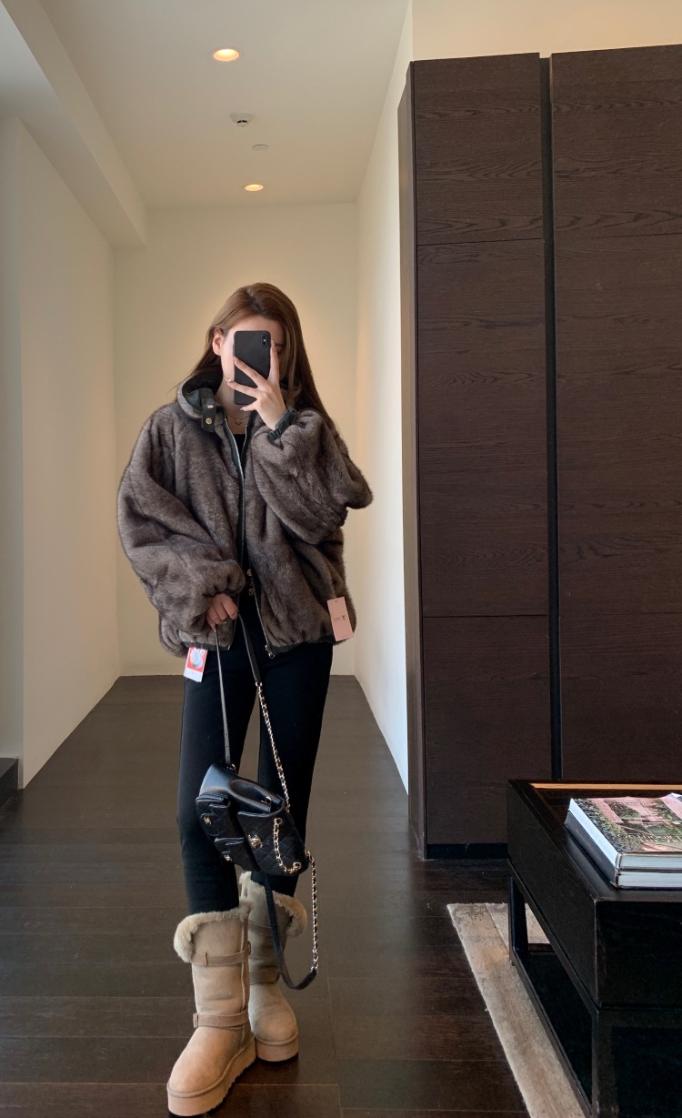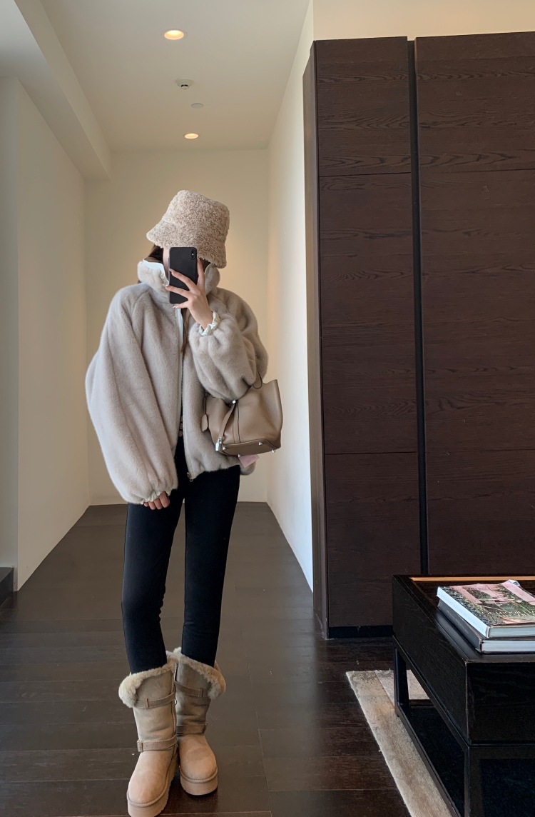加厚的厚度,挺括有型且防风,皮毛轻盈无厚重感!