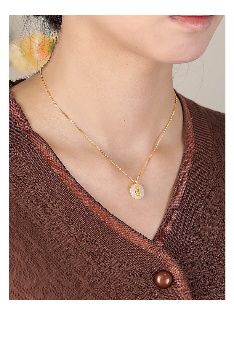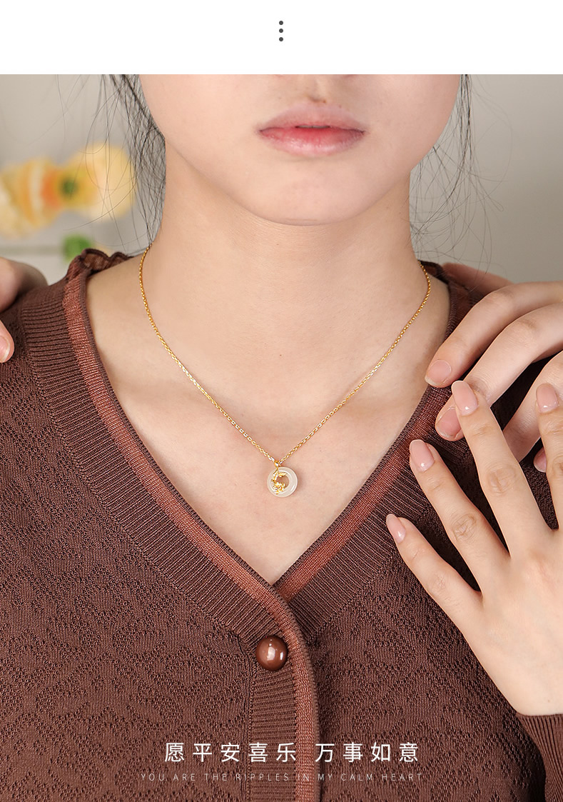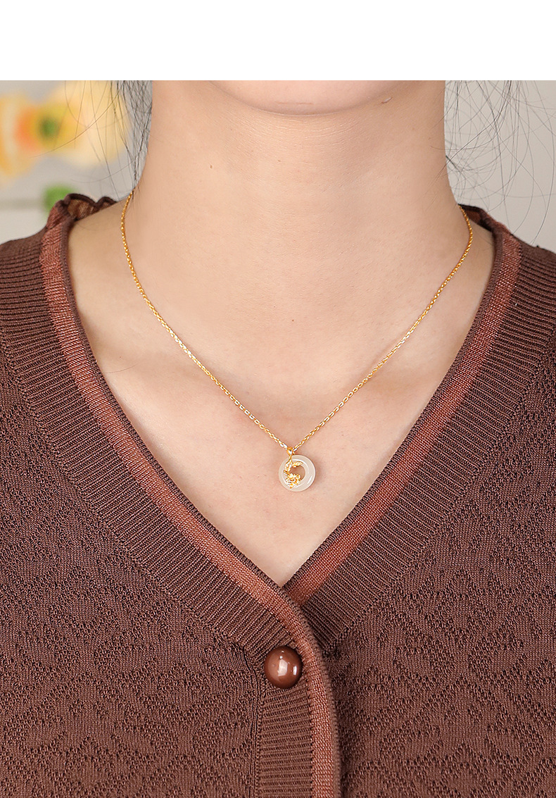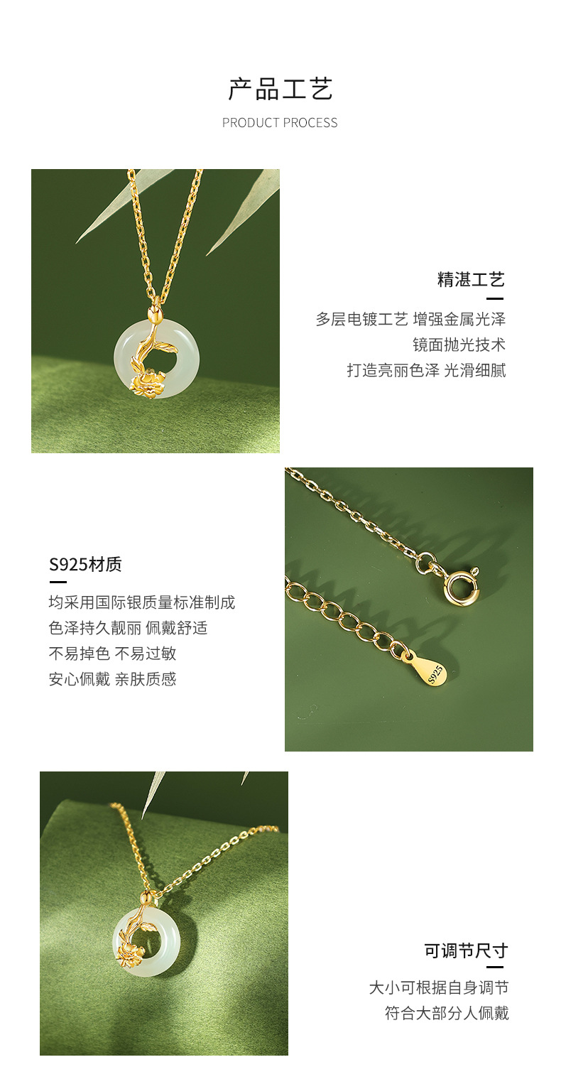【母亲节礼物】六鑫珠宝 牡丹花平安扣和田玉项链 送妈妈婆婆