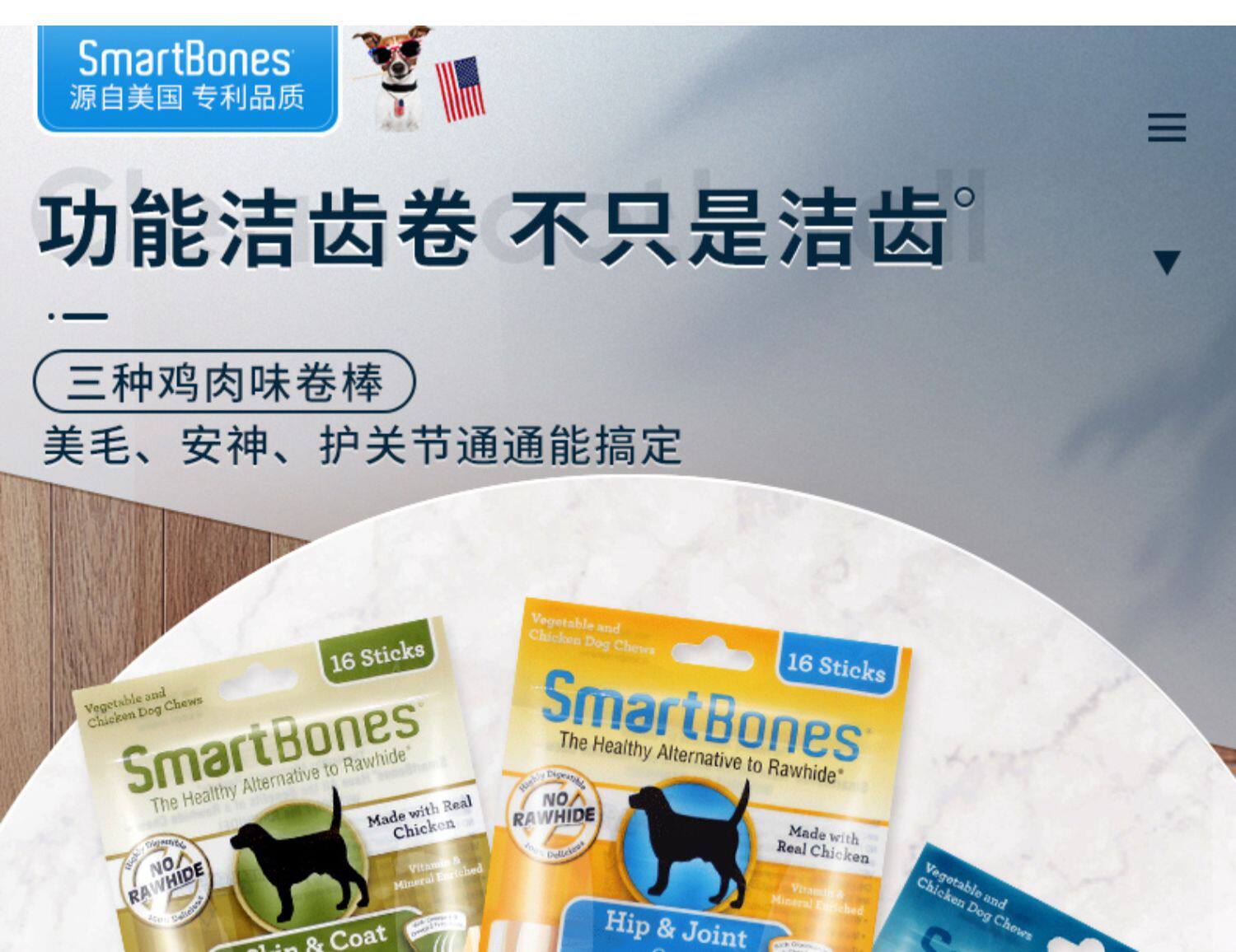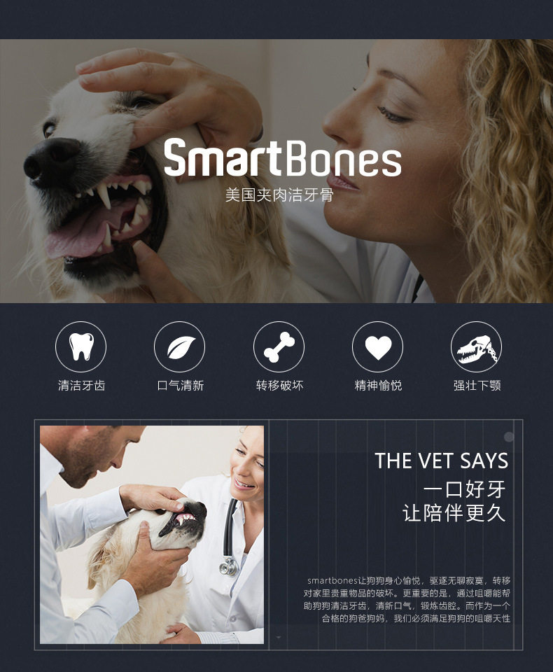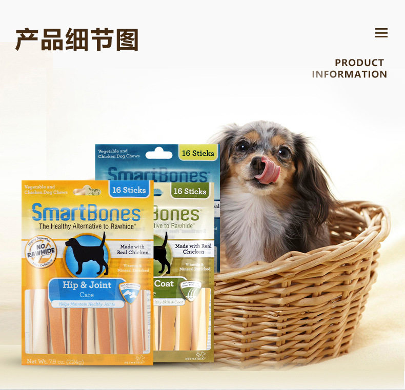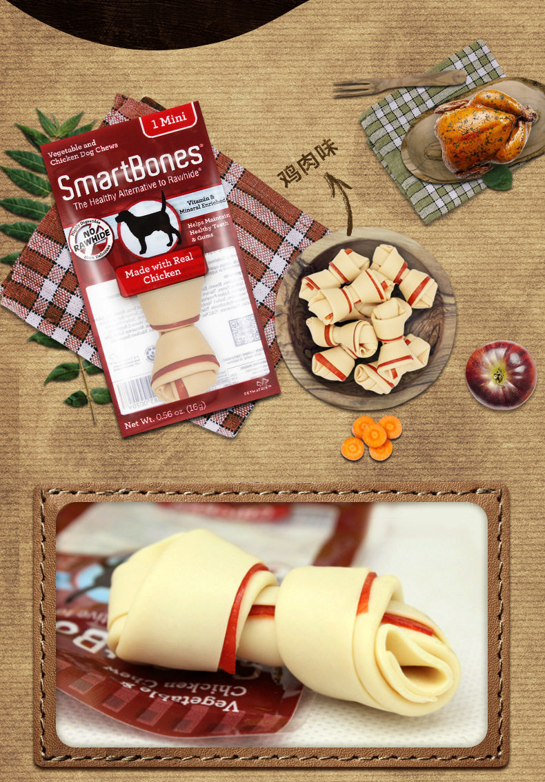 SmartBones洁齿骨狗狗咬胶磨牙棒小型犬耐咬狗零食磨牙洁齿除口臭