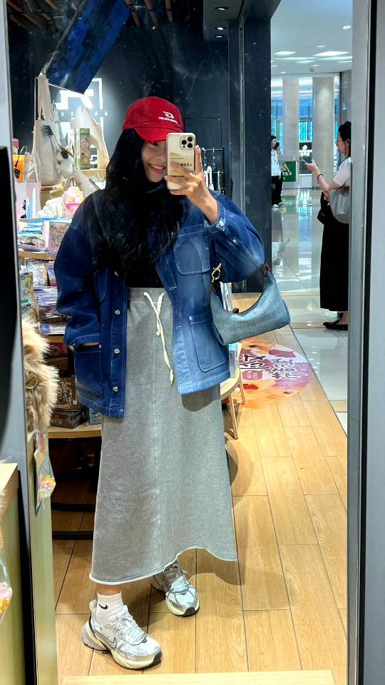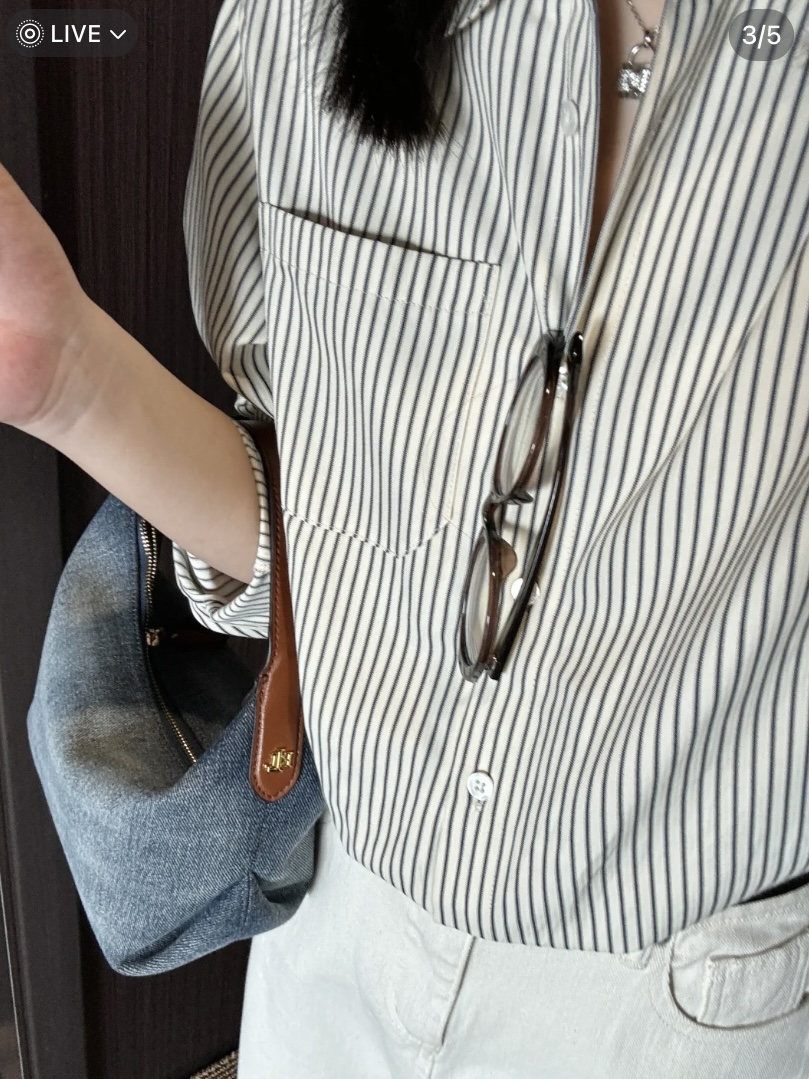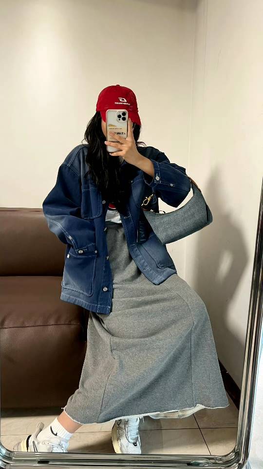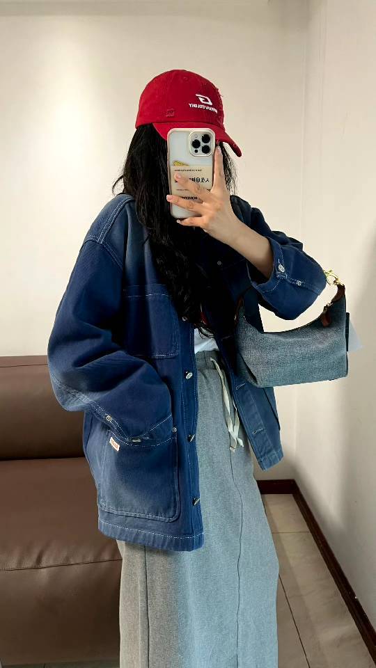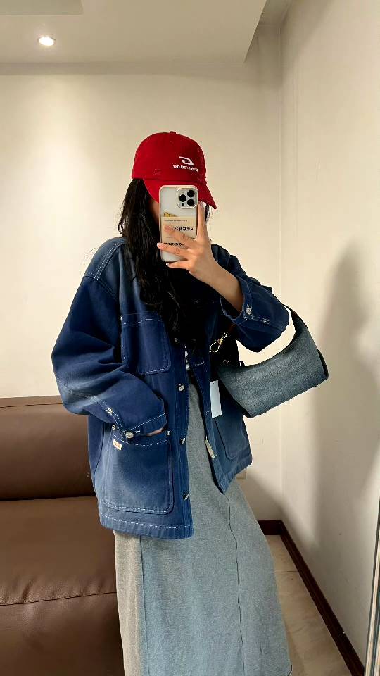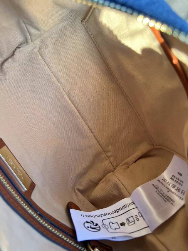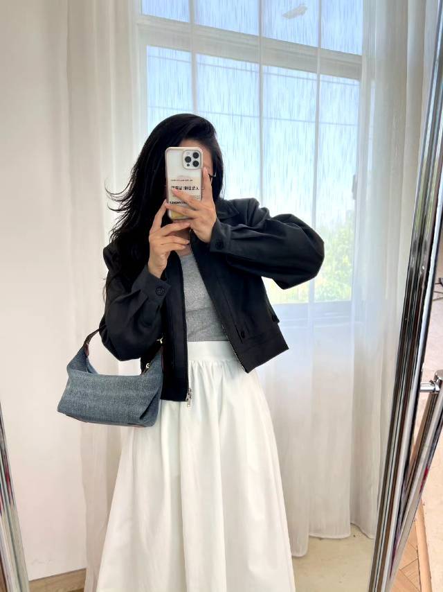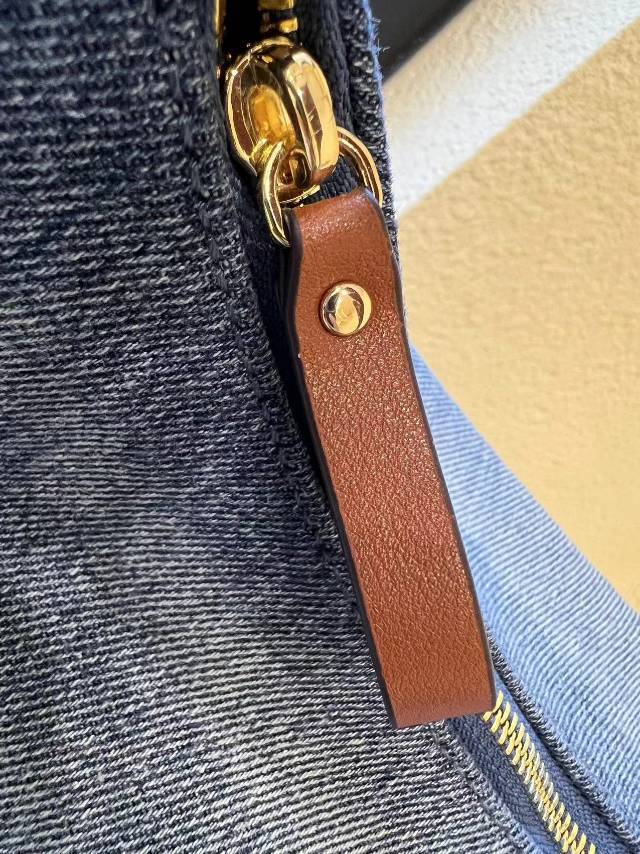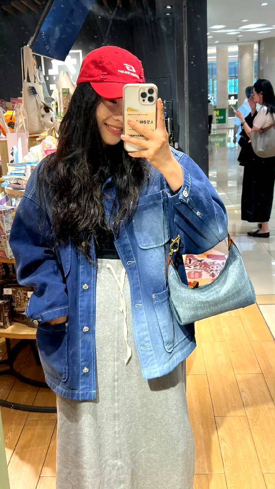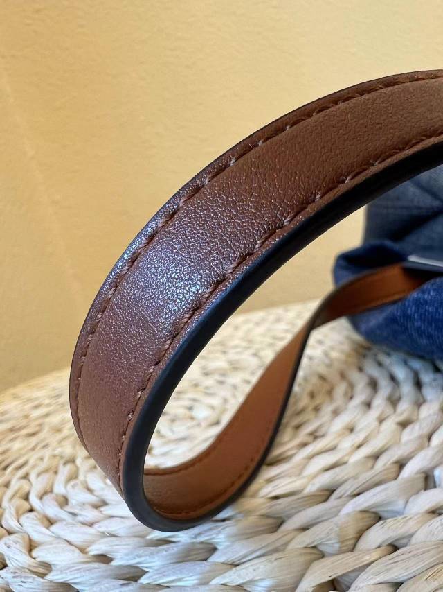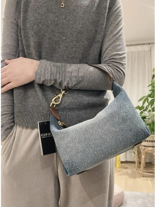 斜纹结构牛仔布,水洗带有微泛白肌理感,柔韧挺括有支撑感,但是不生硬,不会太重奢高调,最大的支撑其实来源地包底的拼皮和两侧的立体双压线捏褶"耳朵",包型立体不塌~