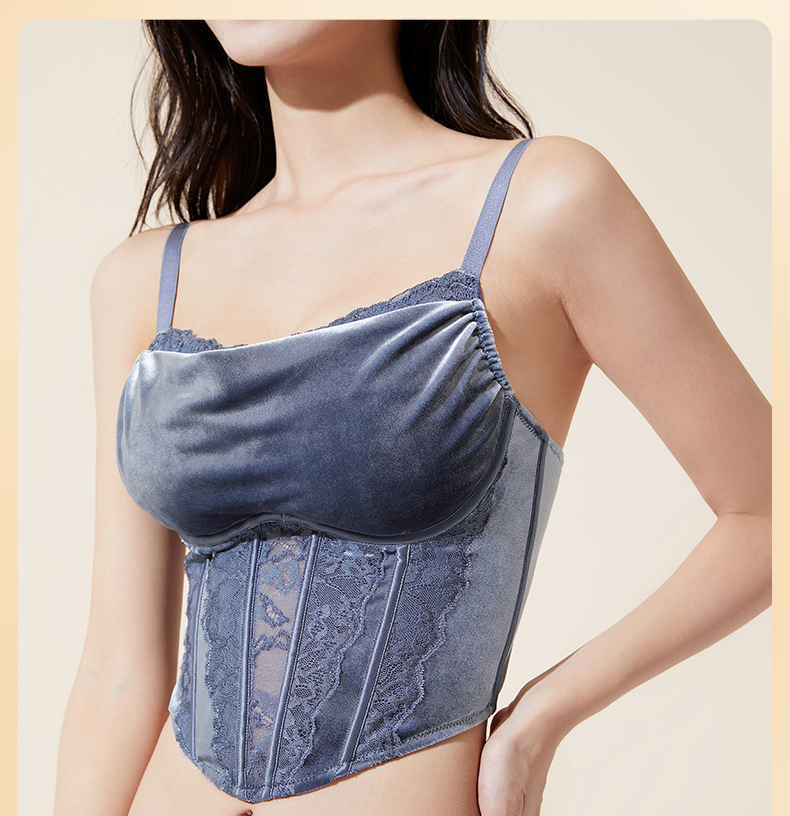 【会员积分兑换】奶糖派大胸抹胸幽梦轻奢丝绒复古三角杯胸衣胸型圆润大码显瘦内衣