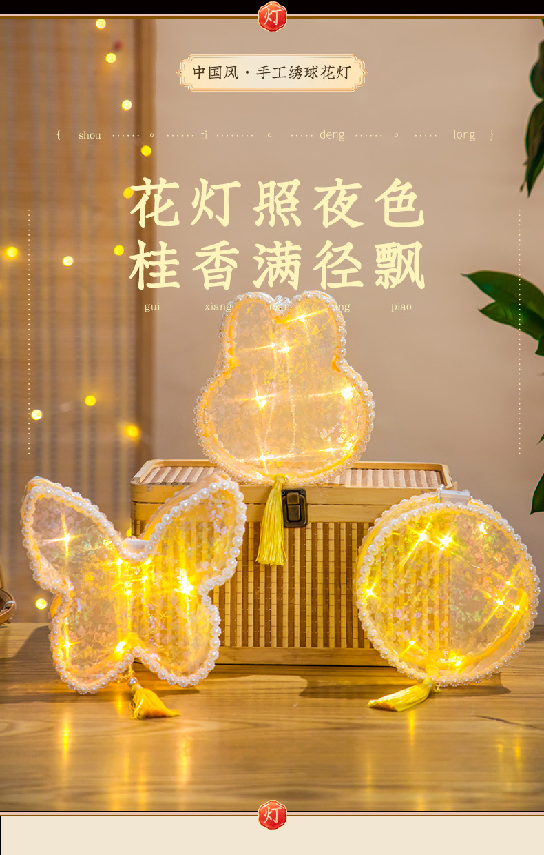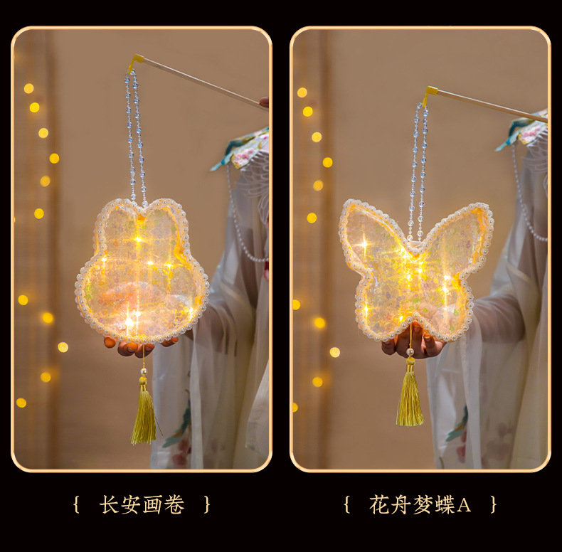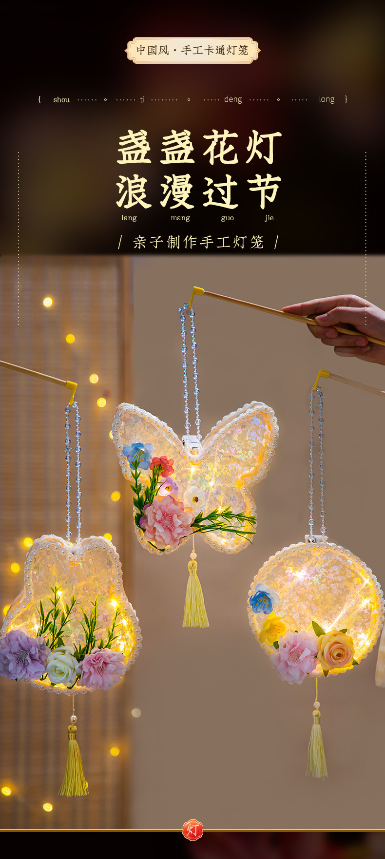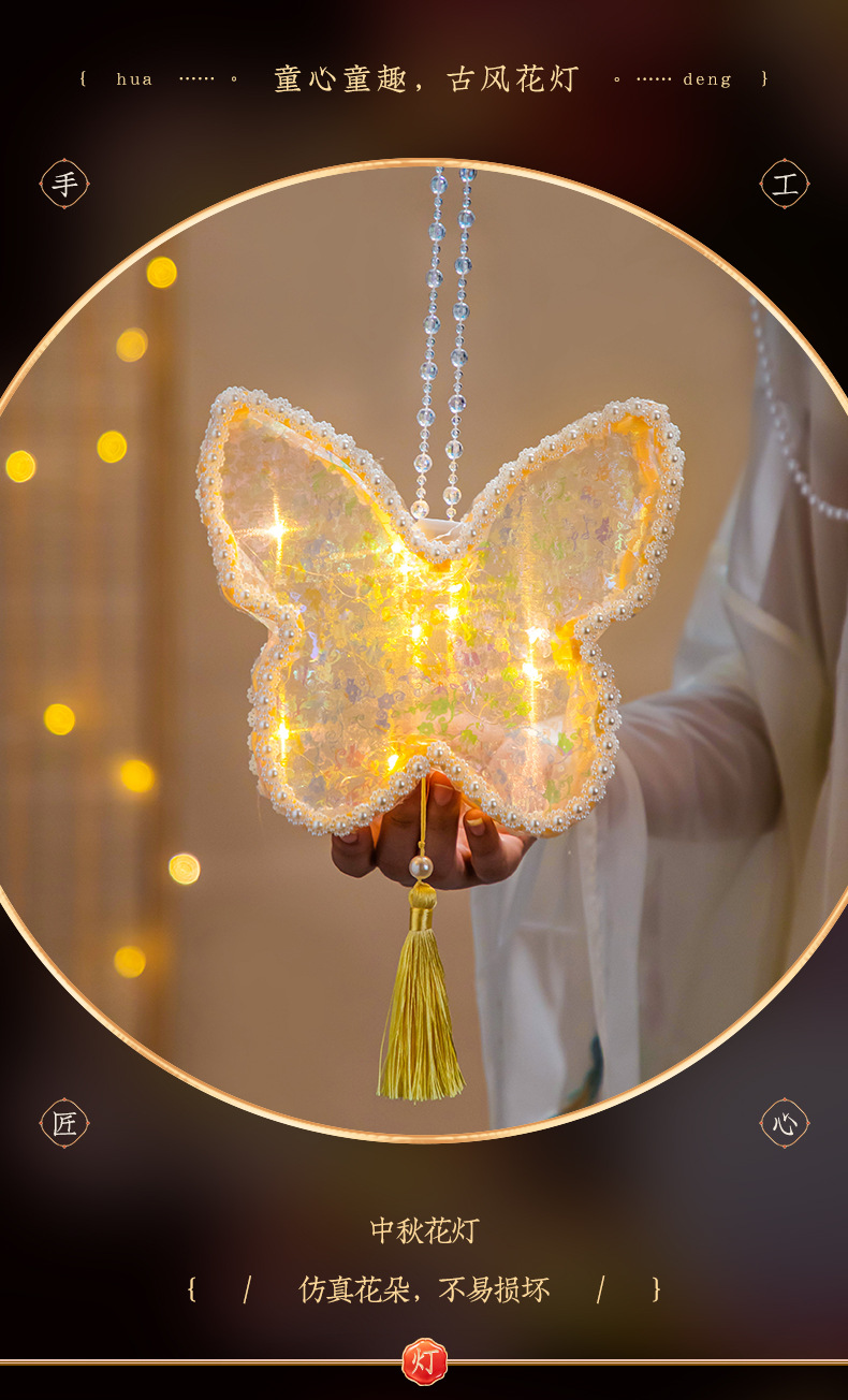 <有书独家>【古风小兔子蝴蝶灯笼】发光手提儿童手工diy材料包 中秋灯笼新款幻彩花灯