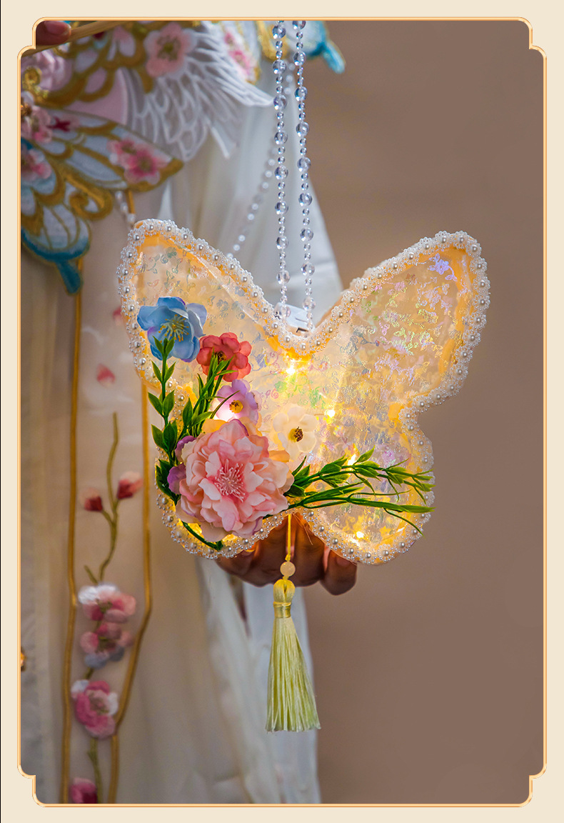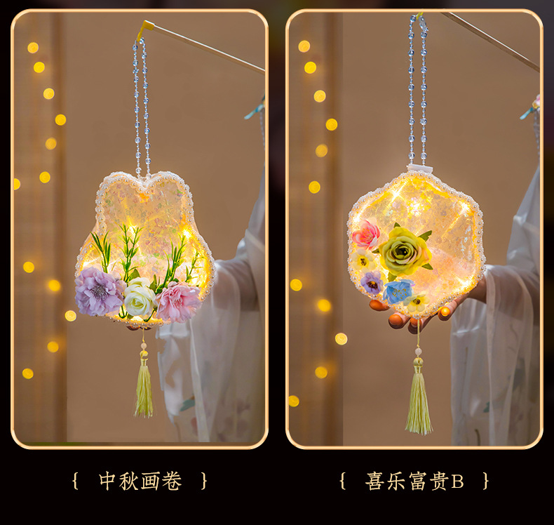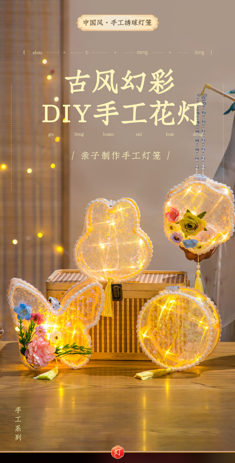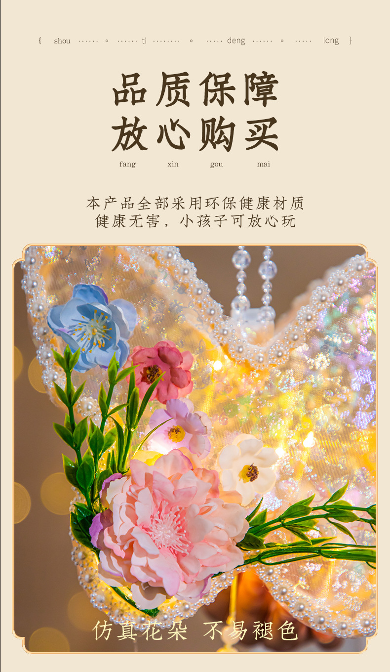 <有书独家>【古风小兔子蝴蝶灯笼】发光手提儿童手工diy材料包 中秋灯笼新款幻彩花灯