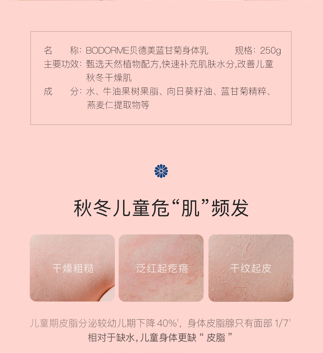 9楼母婴生活馆 贝德美蓝甘菊身体乳舒缓干燥滋润婴幼儿童保湿乳全身可用250g 吊牌价:89元 活动价:59元