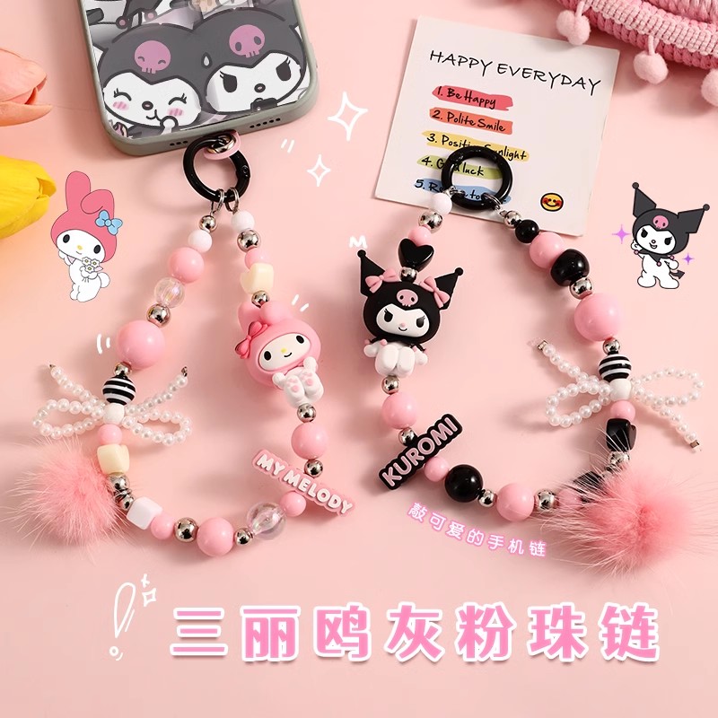 三丽鸥系列手绳扣 灰粉珠链 挂件