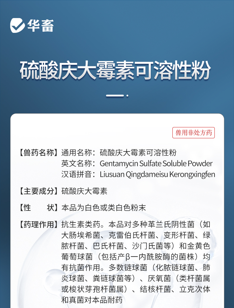 华畜5%硫酸庆大霉素可溶性粉 治疗肠炎拉稀 抗菌消炎