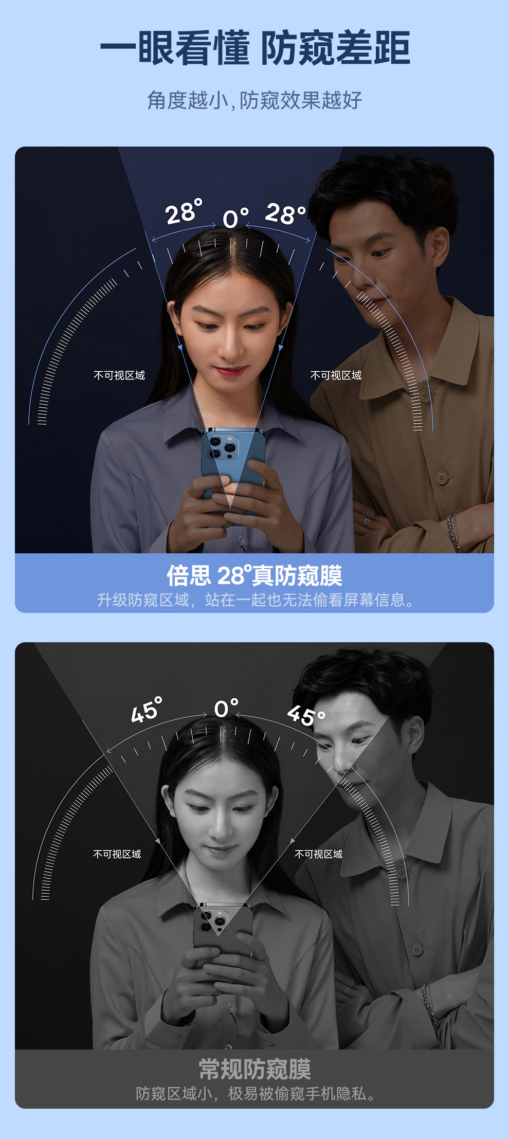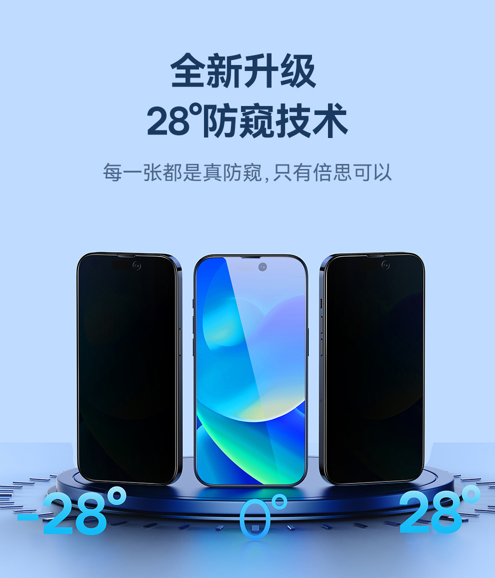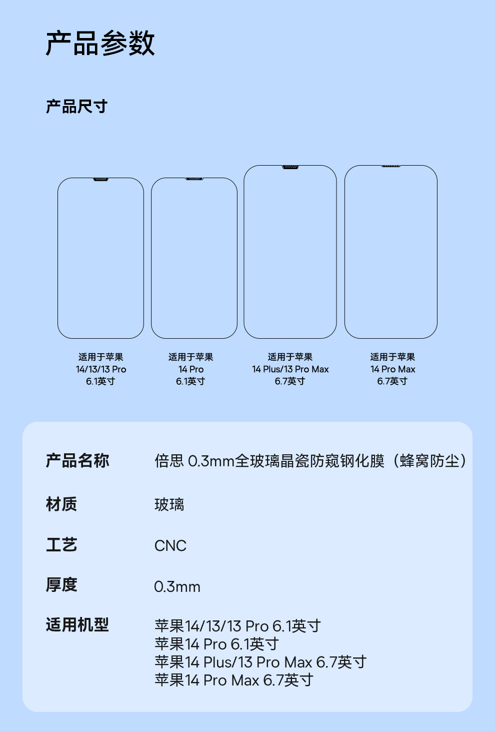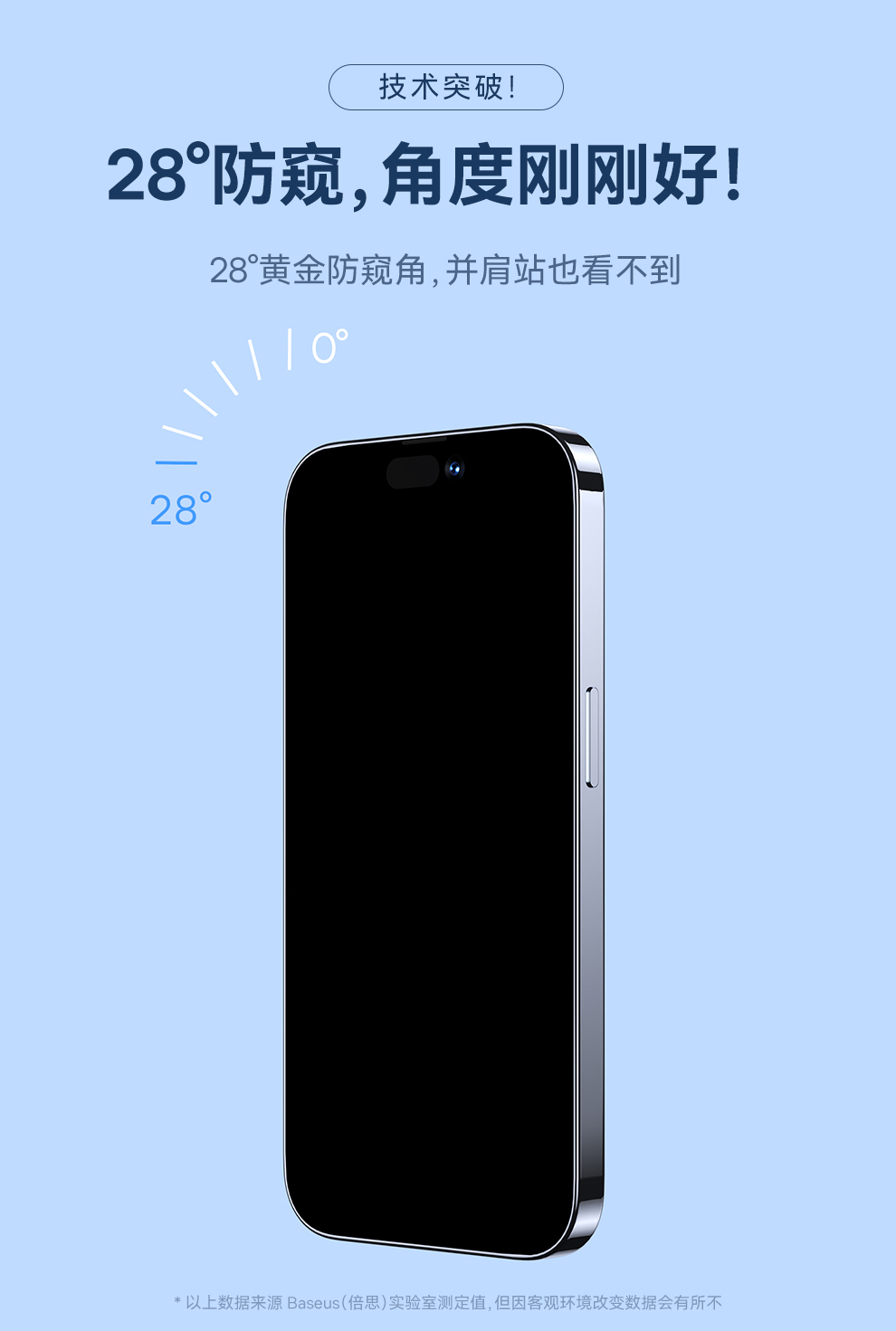 倍思 0.3mm全玻璃晶瓷防窥钢化膜(蜂窝防尘)适用 iPhone11-15系列 苹果手机膜保护膜