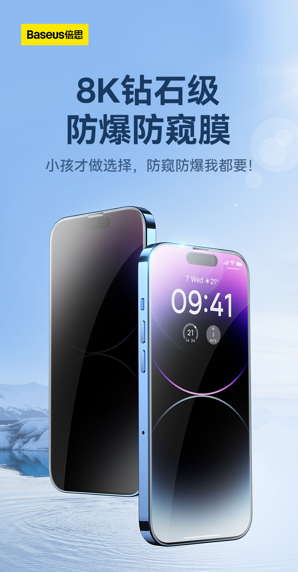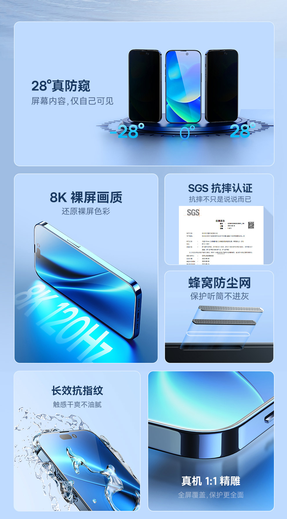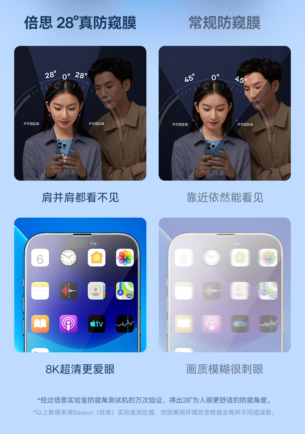 倍思 0.3mm全玻璃晶瓷防窥钢化膜(蜂窝防尘)适用 iPhone11-15系列 苹果手机膜保护膜