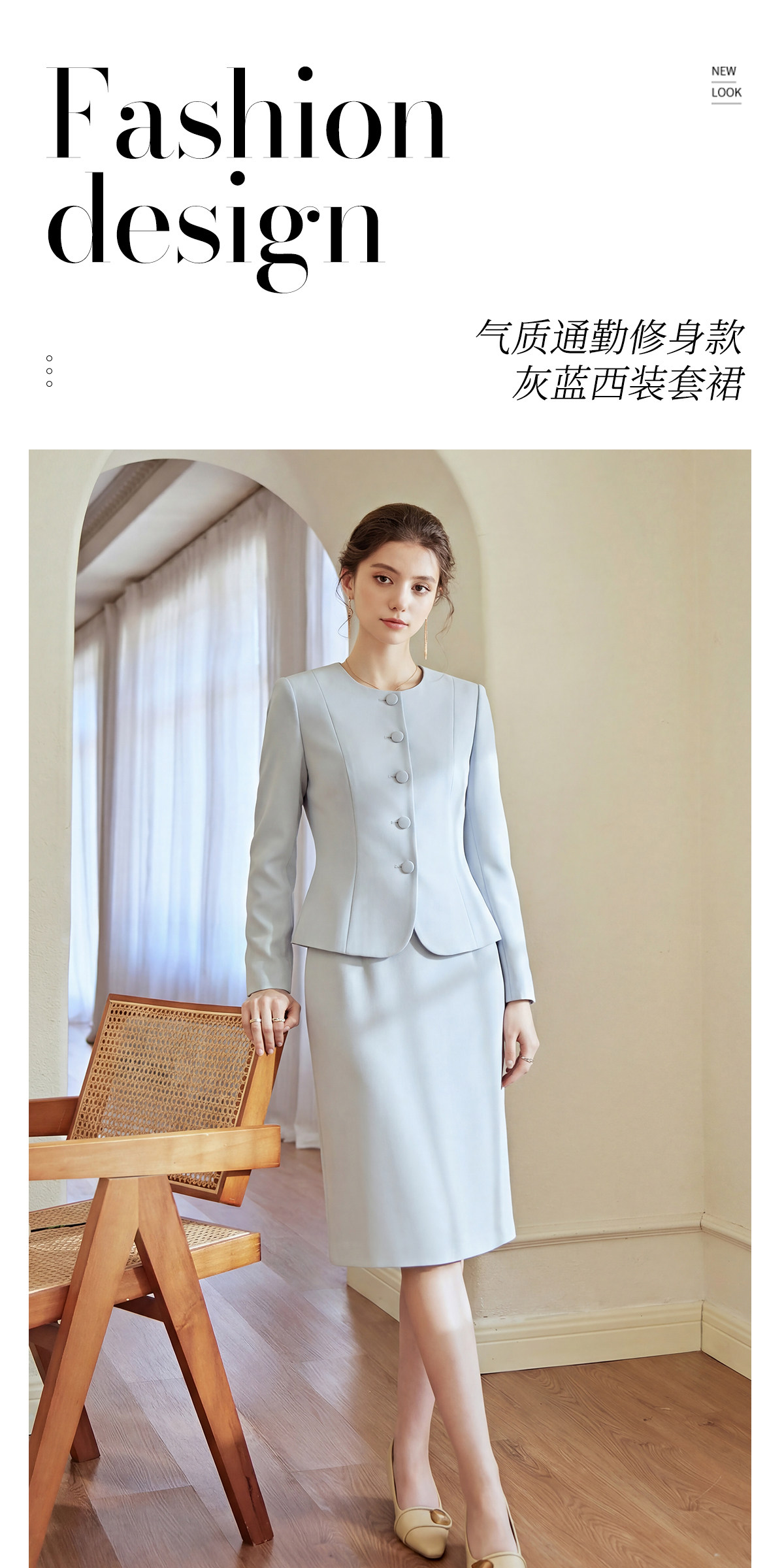 艾尚臣冰岛蓝系列优雅风西装套装女职业装高级感气质时尚两件套春