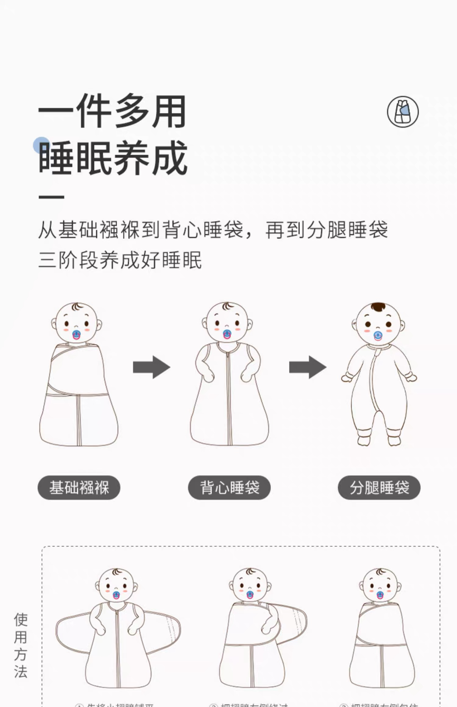 【品牌方直发】 Little Tiny升级版防惊跳恒温新生婴儿襁褓睡袋竹棉全棉
