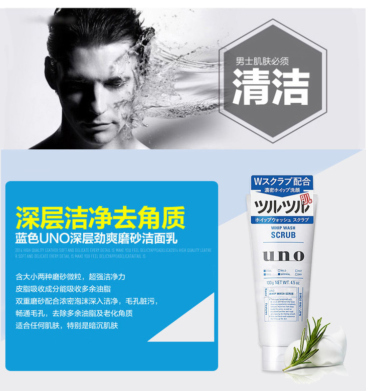 日本资生堂吾诺UNO男士洗面奶 清凉磨砂洁面乳 130g