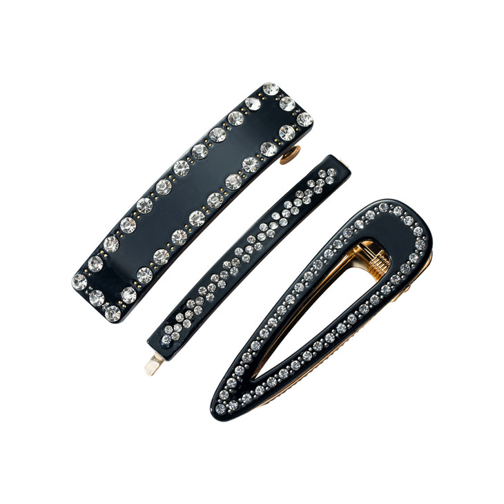 〖一字夹鸭嘴夹顶夹三件套〗欧美气质时尚醋酸板材镶钻发夹女套装组合