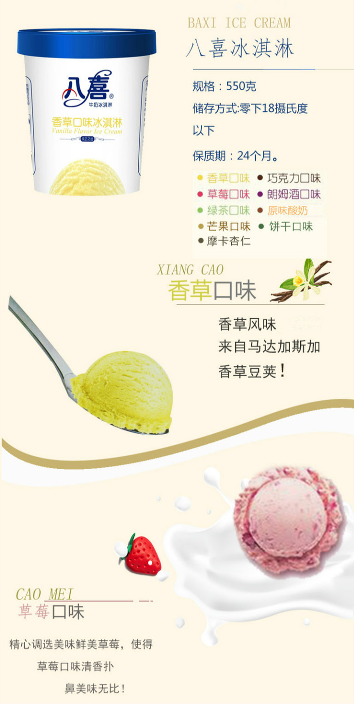【550g】八喜牛奶冰淇淋550g*1桶 (多种口味可选)