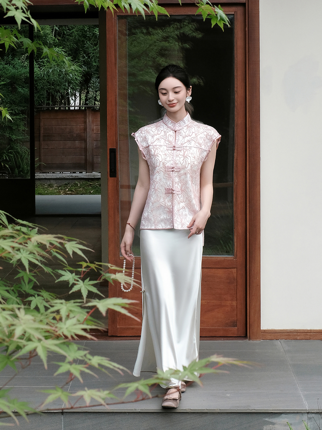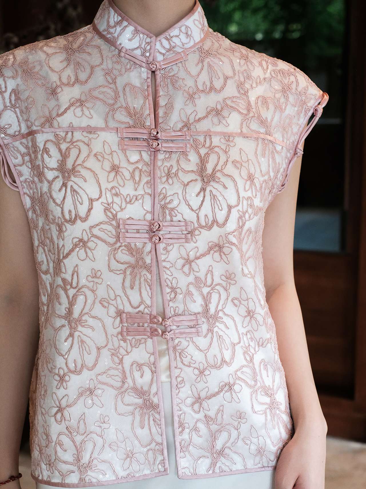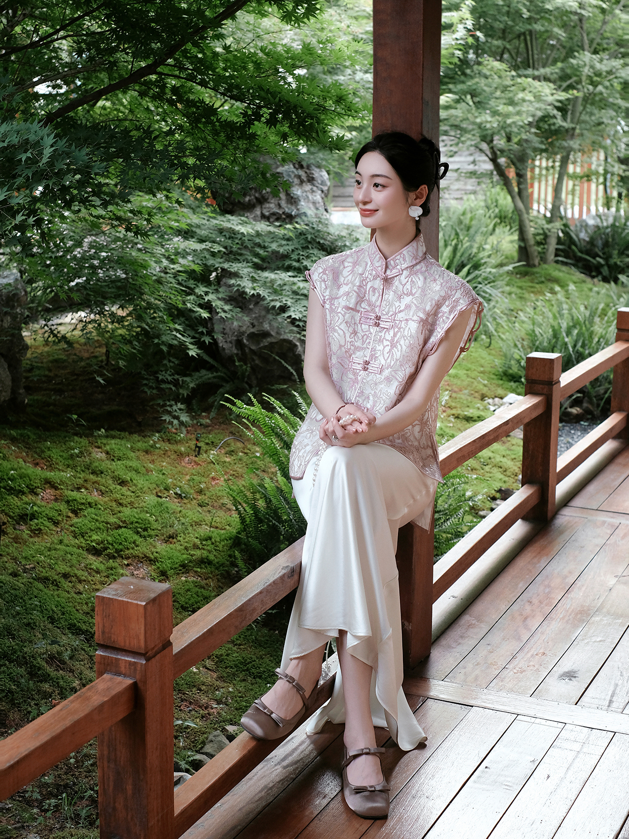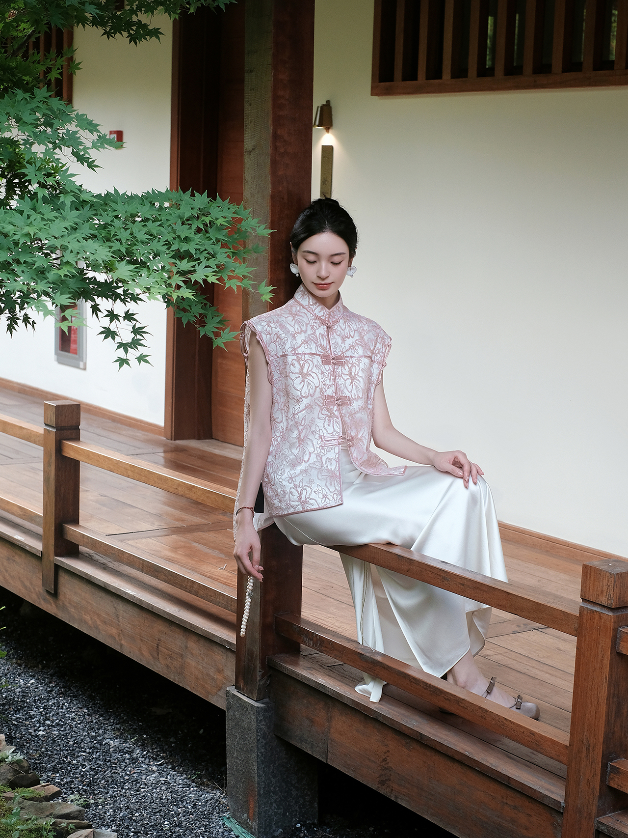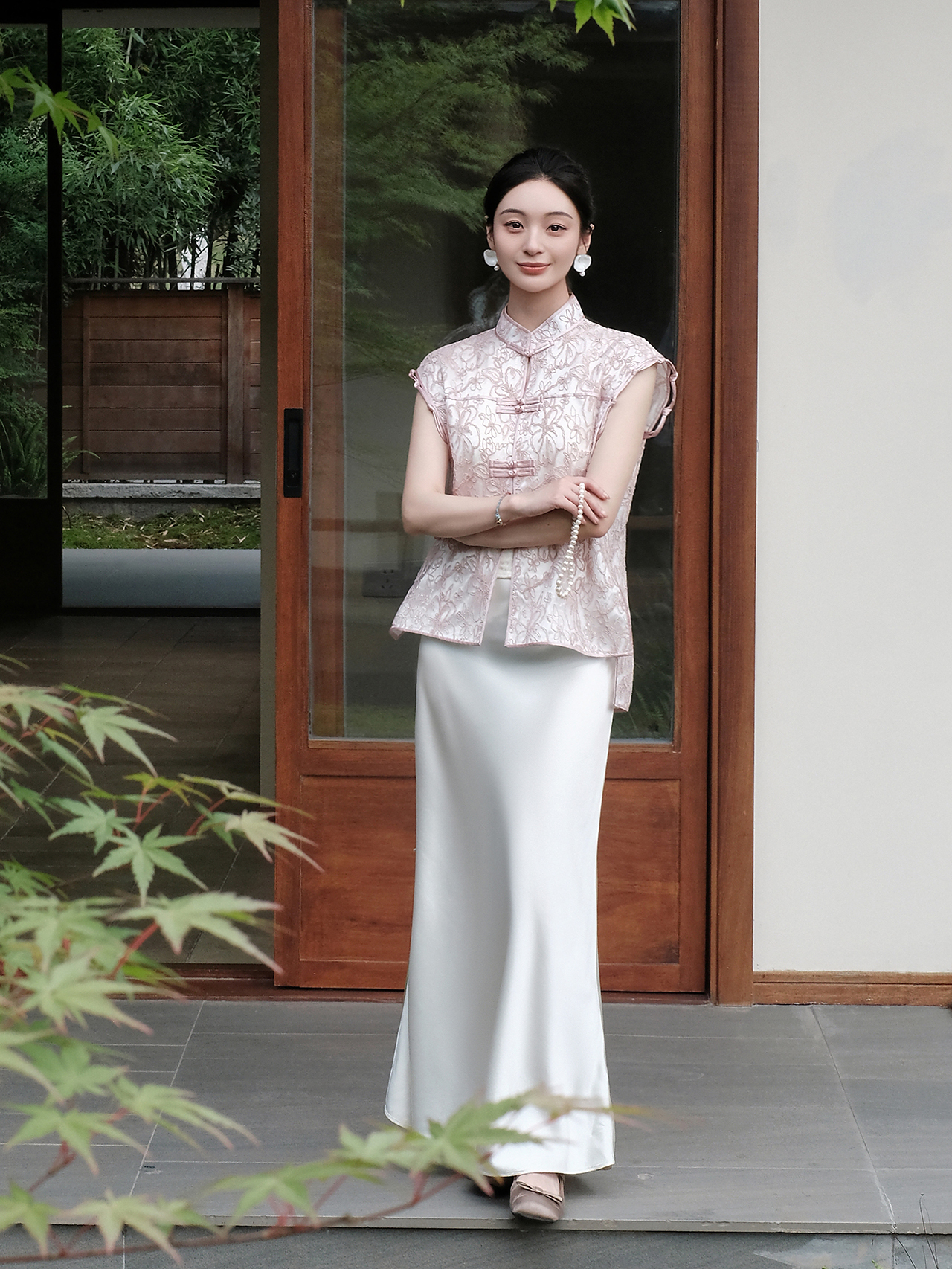 盛唐牡丹 | 松鼠葡萄真丝立领对襟外套(不夹棉-松鼠葡萄闪光面料款)