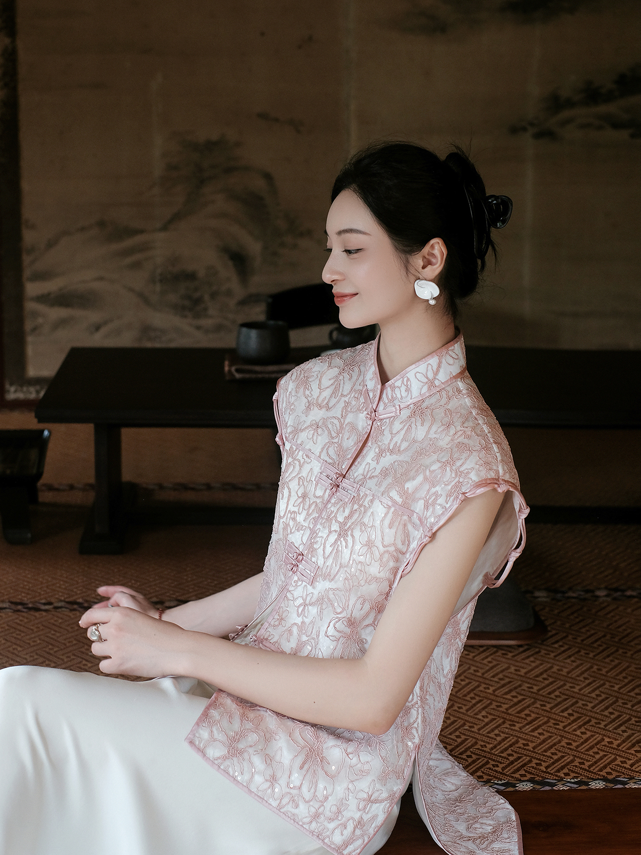 盛唐婧 |金鱼提花一字扣外套-淡绿
