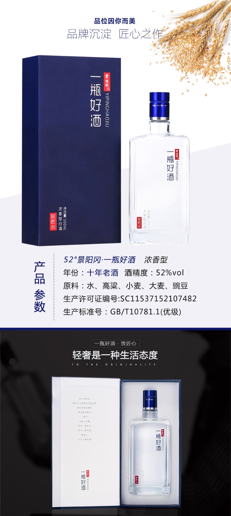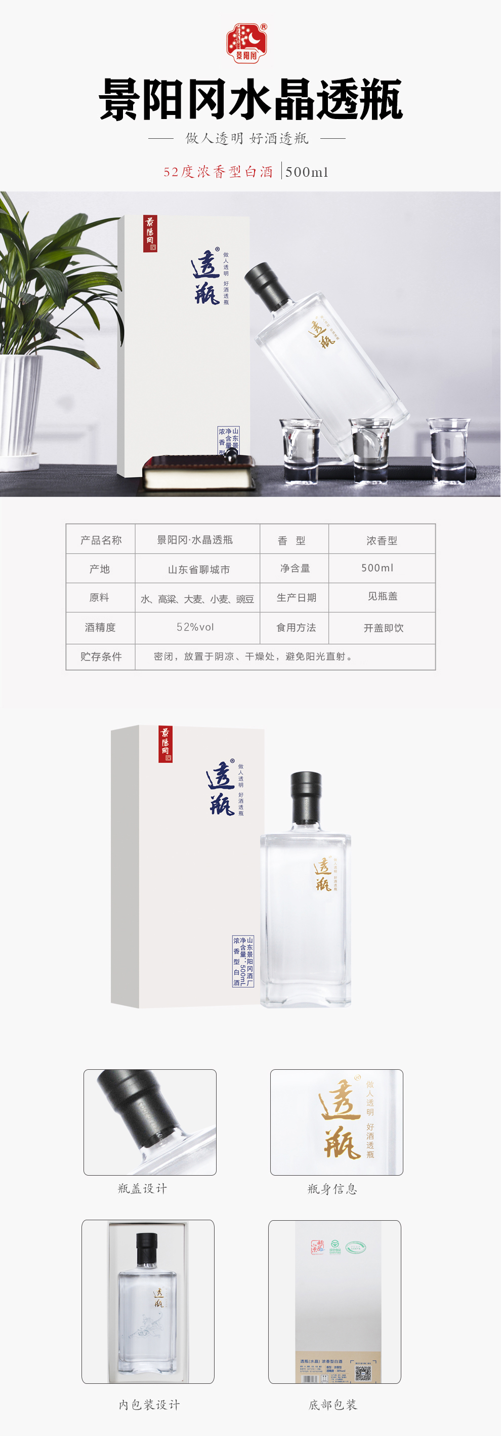 【套餐超值购】景阳冈52度一瓶好酒500ml*1瓶+52度水晶透瓶500ml*1瓶 高端浓香白酒