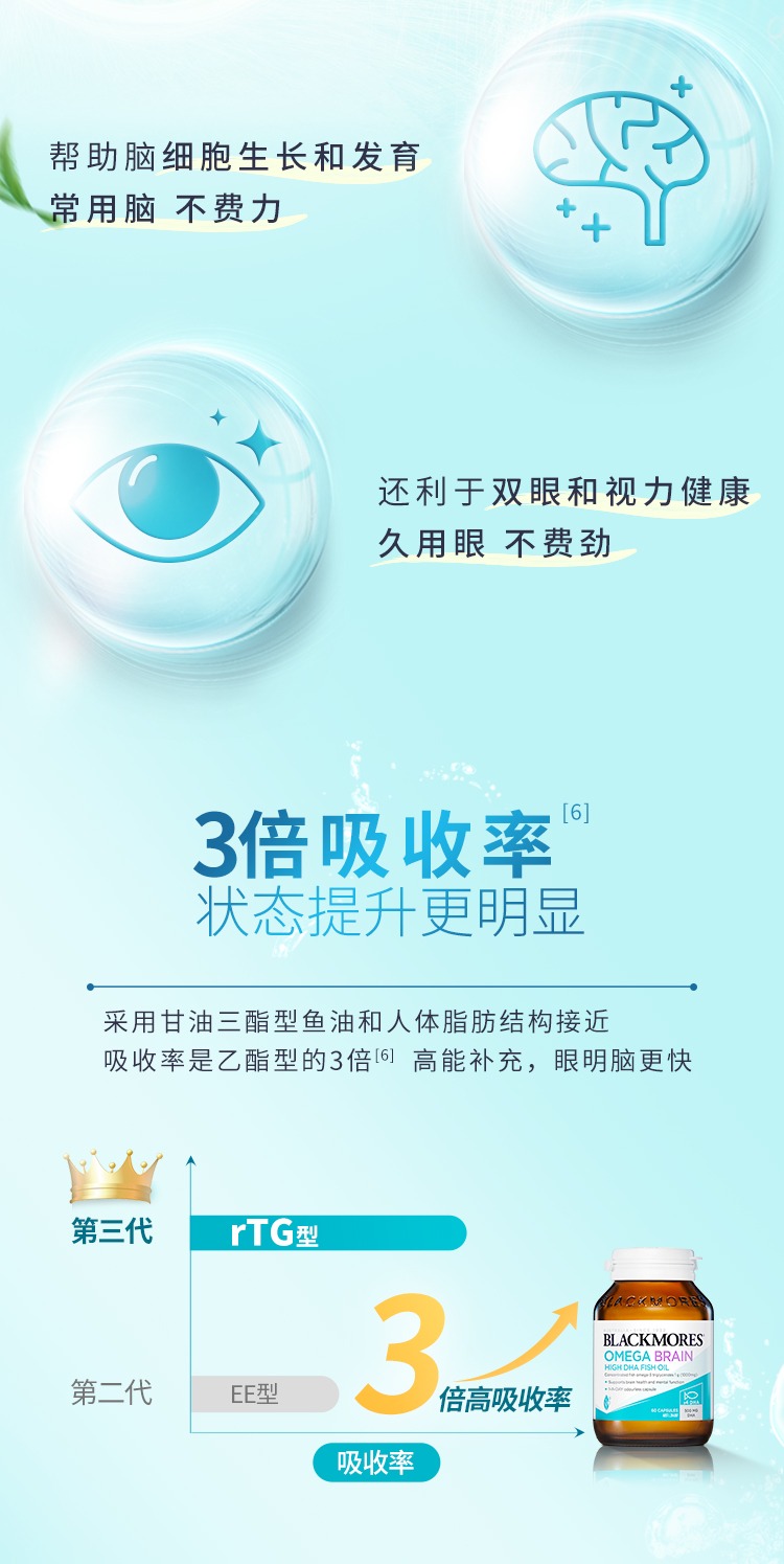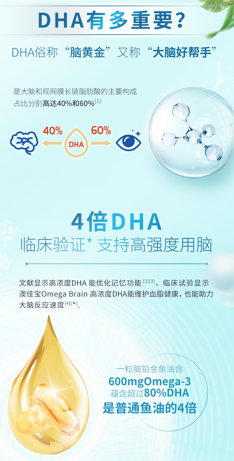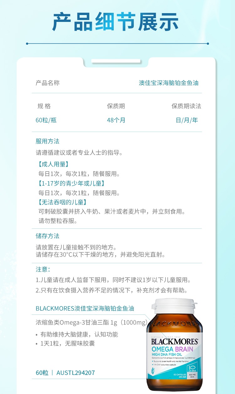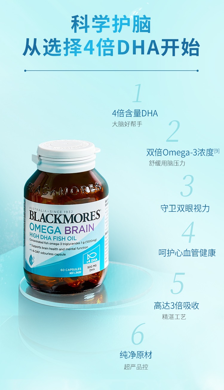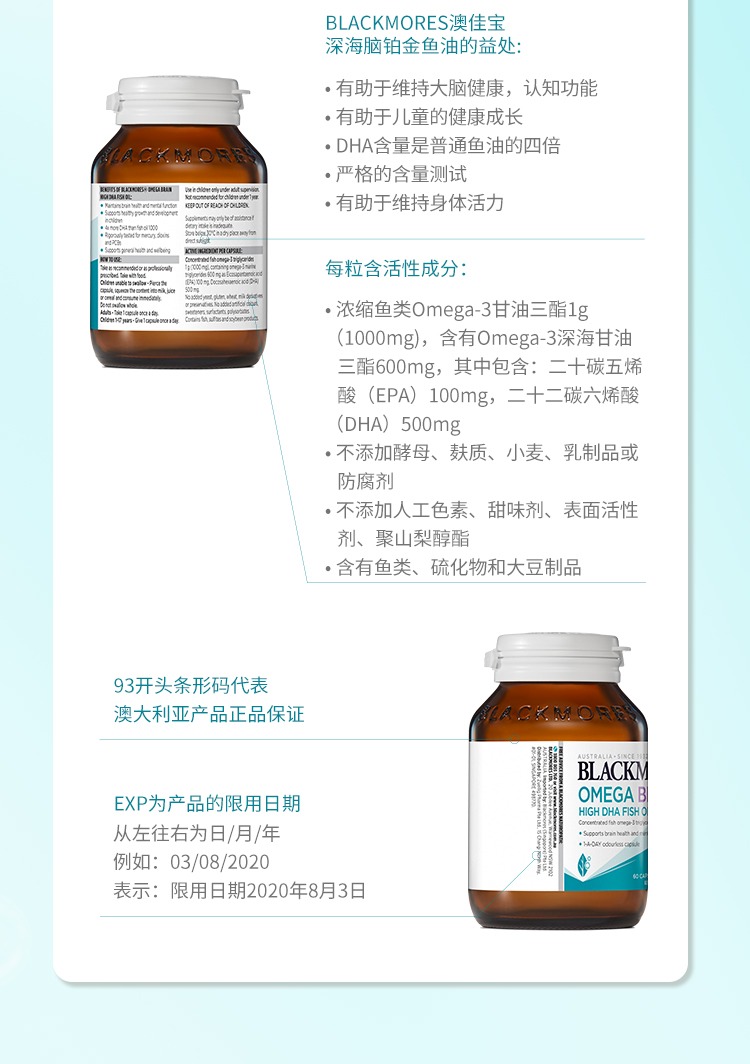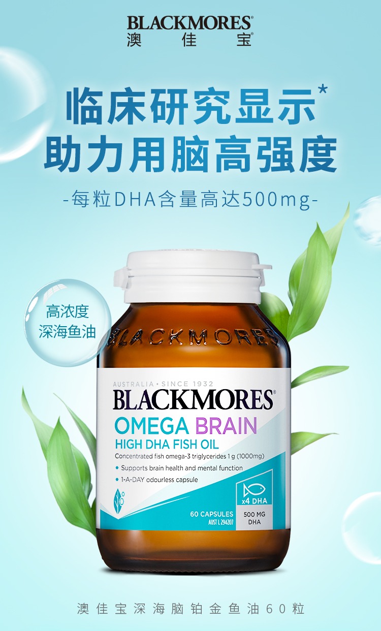澳洲 Blackmores澳佳宝 深海脑铂金DHA4倍鱼油 60粒 新日期