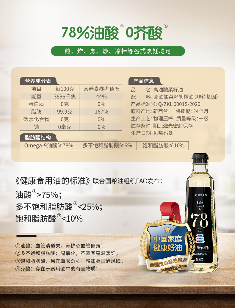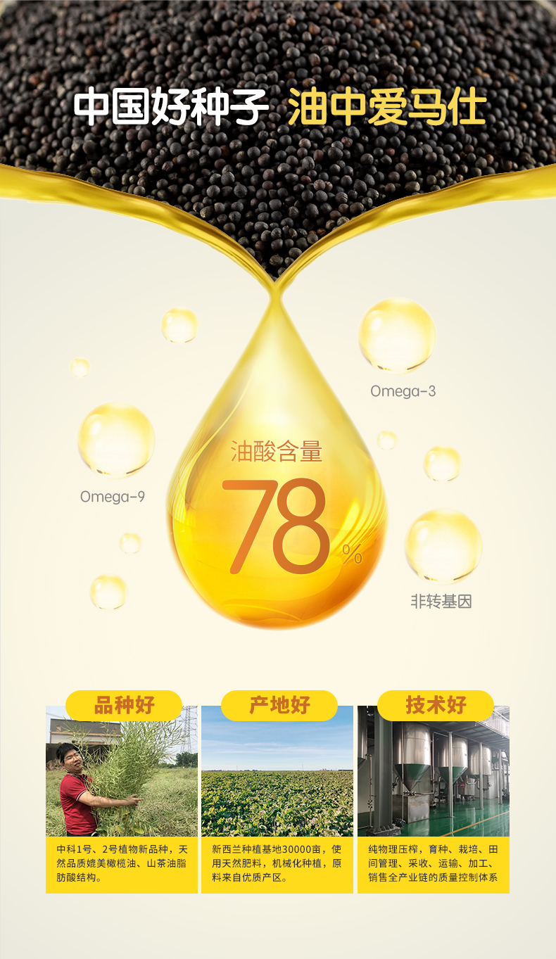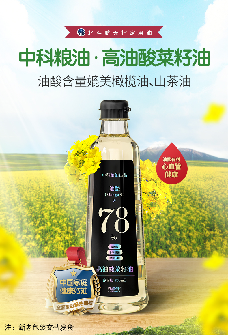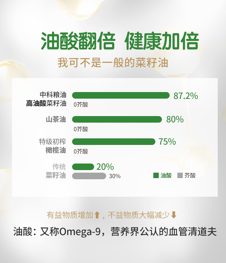 中科粮油 高油酸菜籽油酸≥78%媲美橄榄油山茶油的健康好油食用油