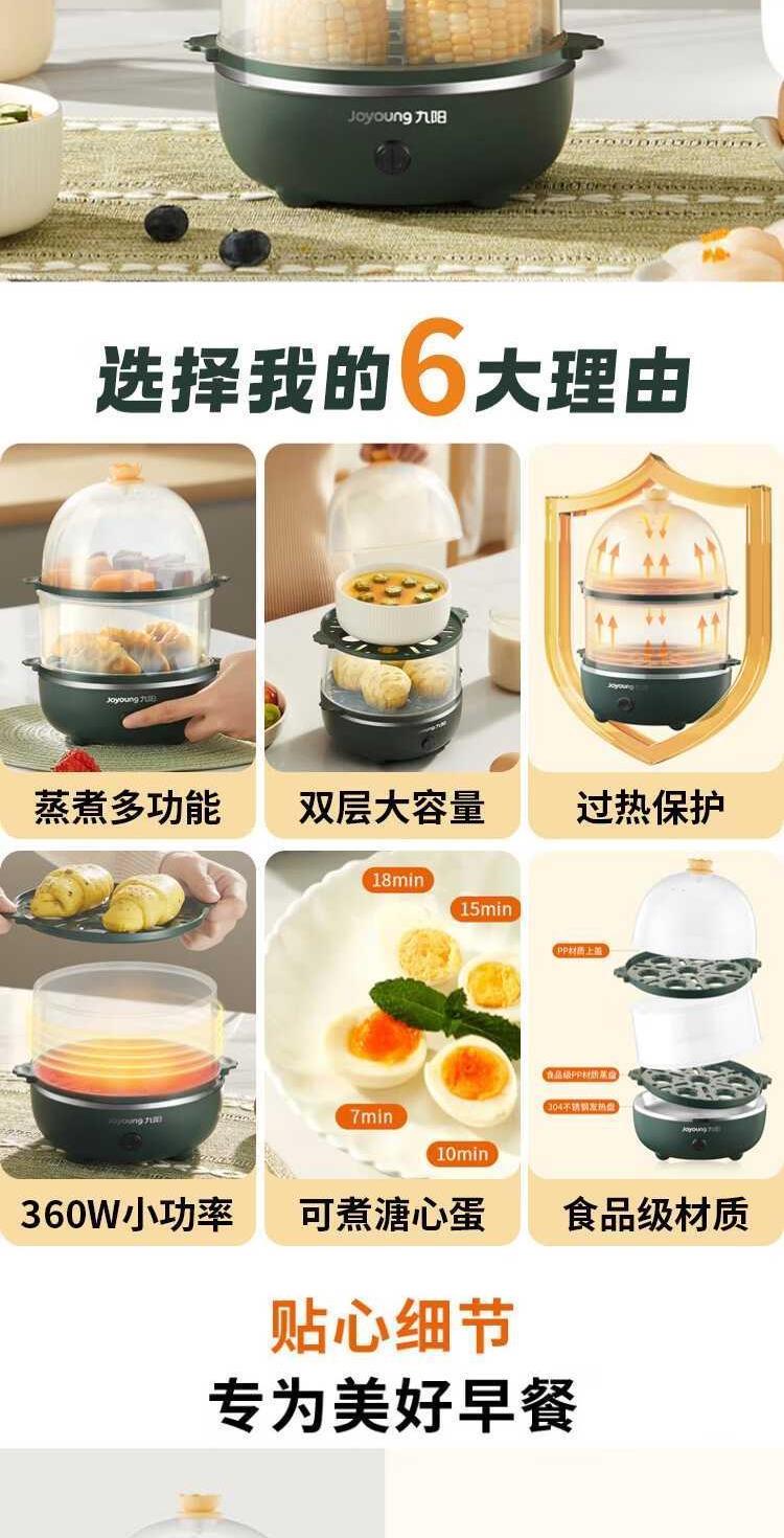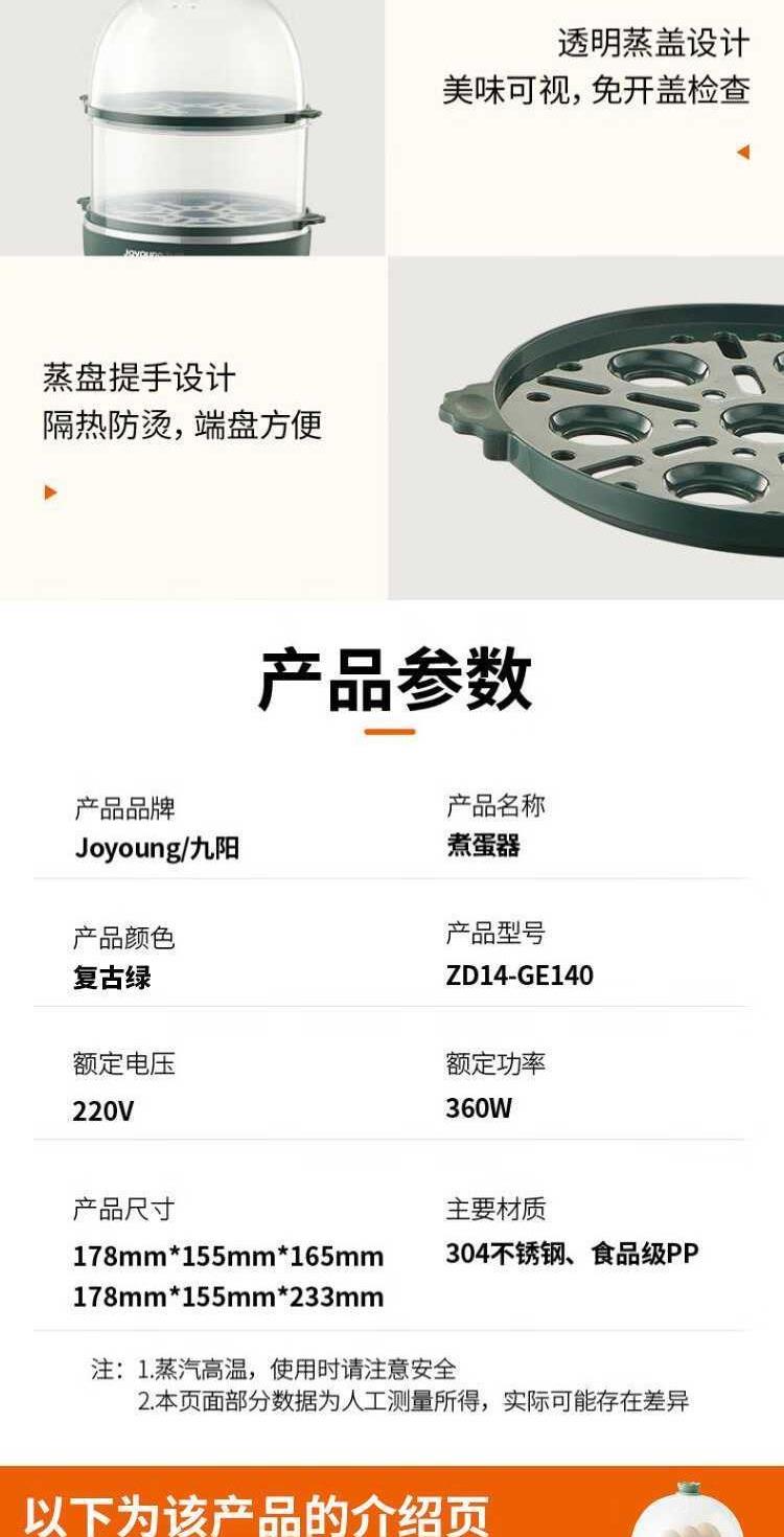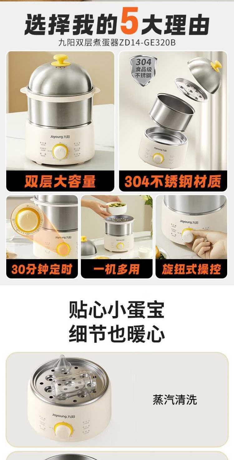 【双层14枚】Joyoung/九阳ZD14-GE140蒸蛋器家用多功能早餐煮蛋器