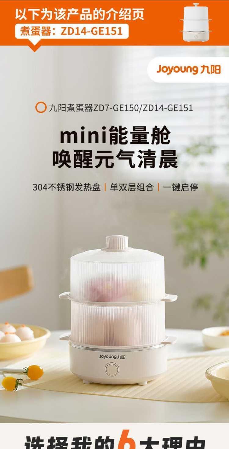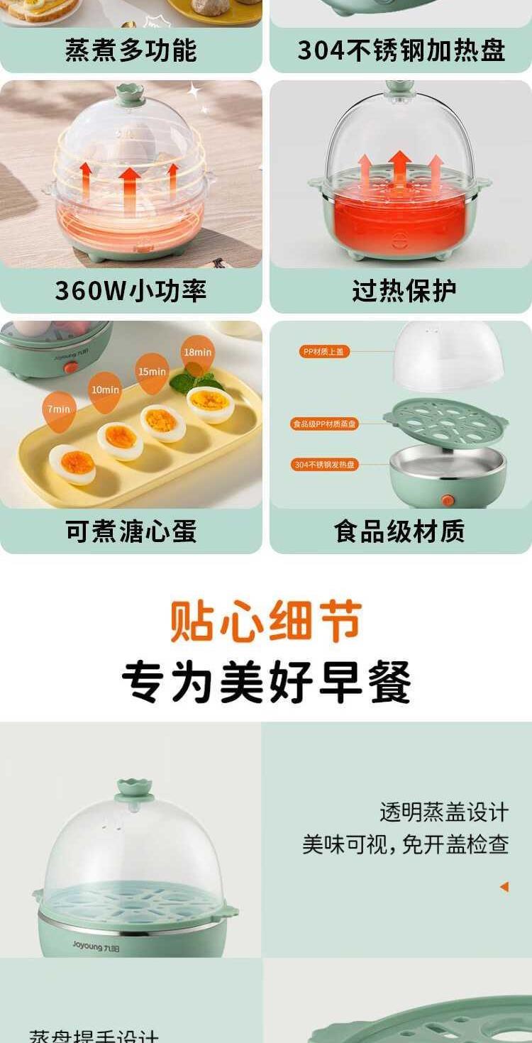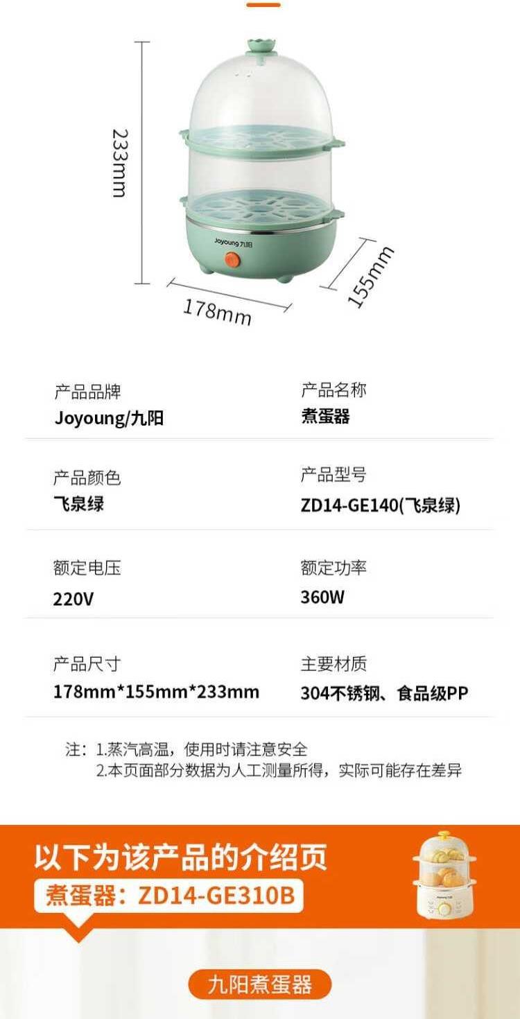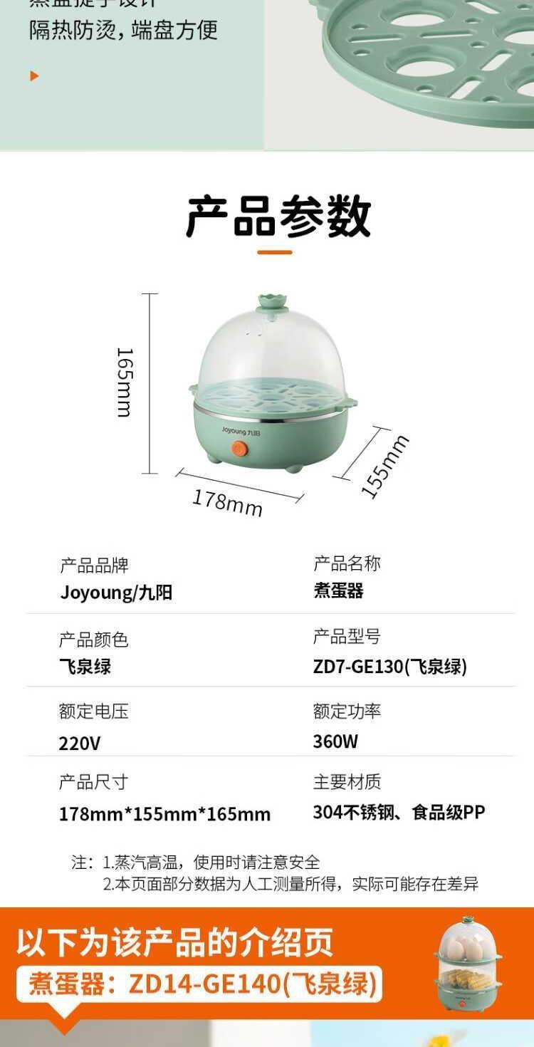 【双层14枚】Joyoung/九阳ZD14-GE140蒸蛋器家用多功能早餐煮蛋器