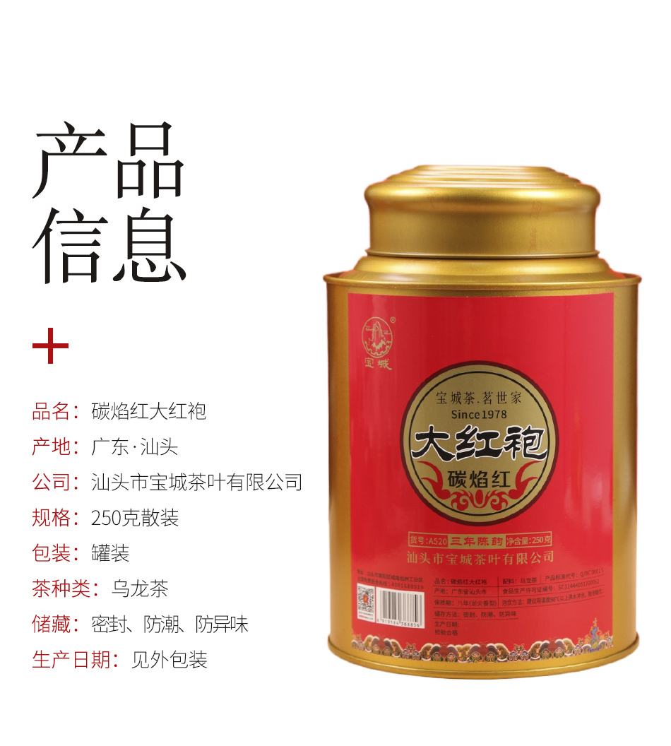 【新品上市,欢迎尝鲜】宝城碳焰红大红袍茶叶250克散装罐装浓香型乌龙茶岩茶