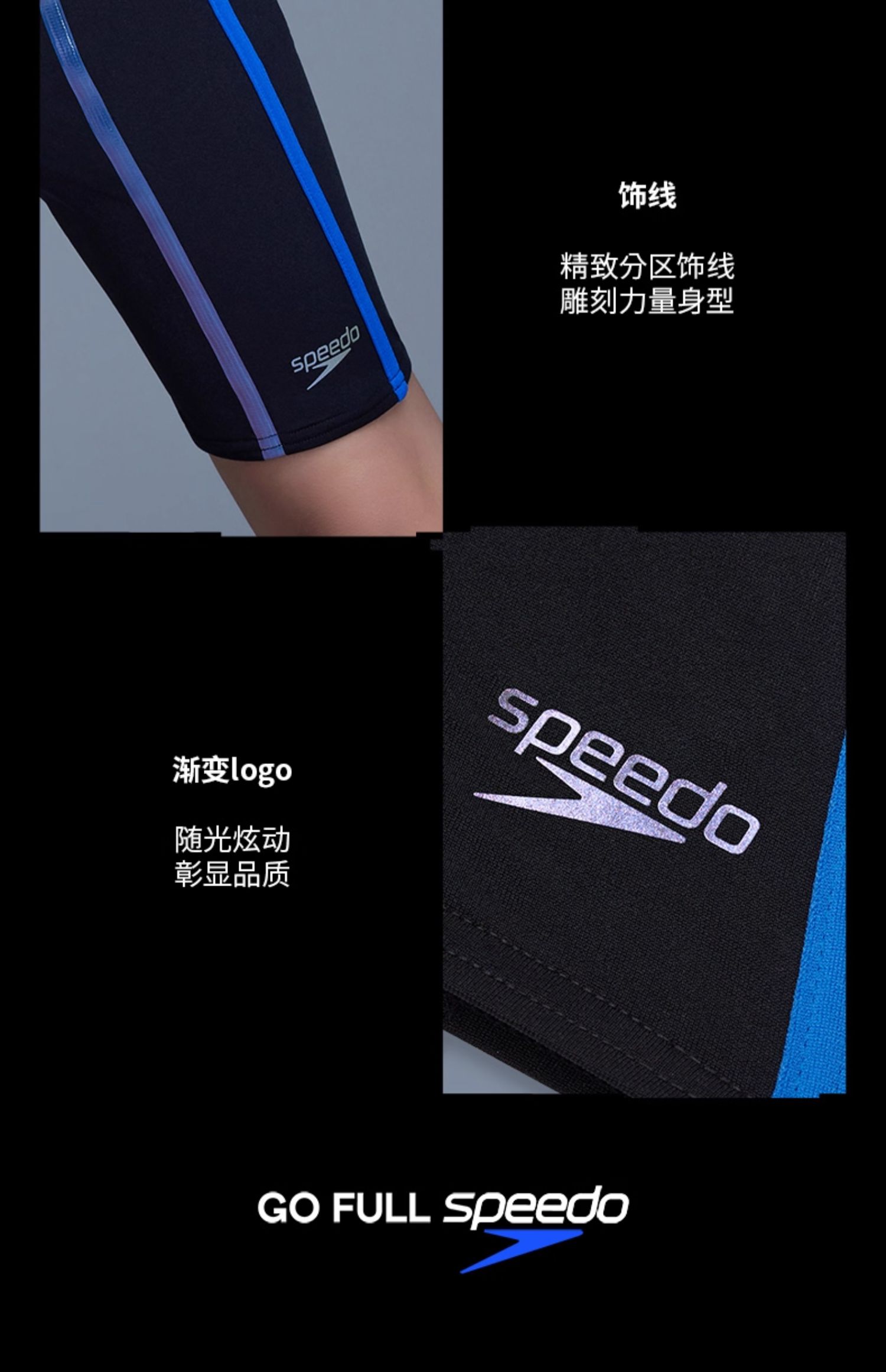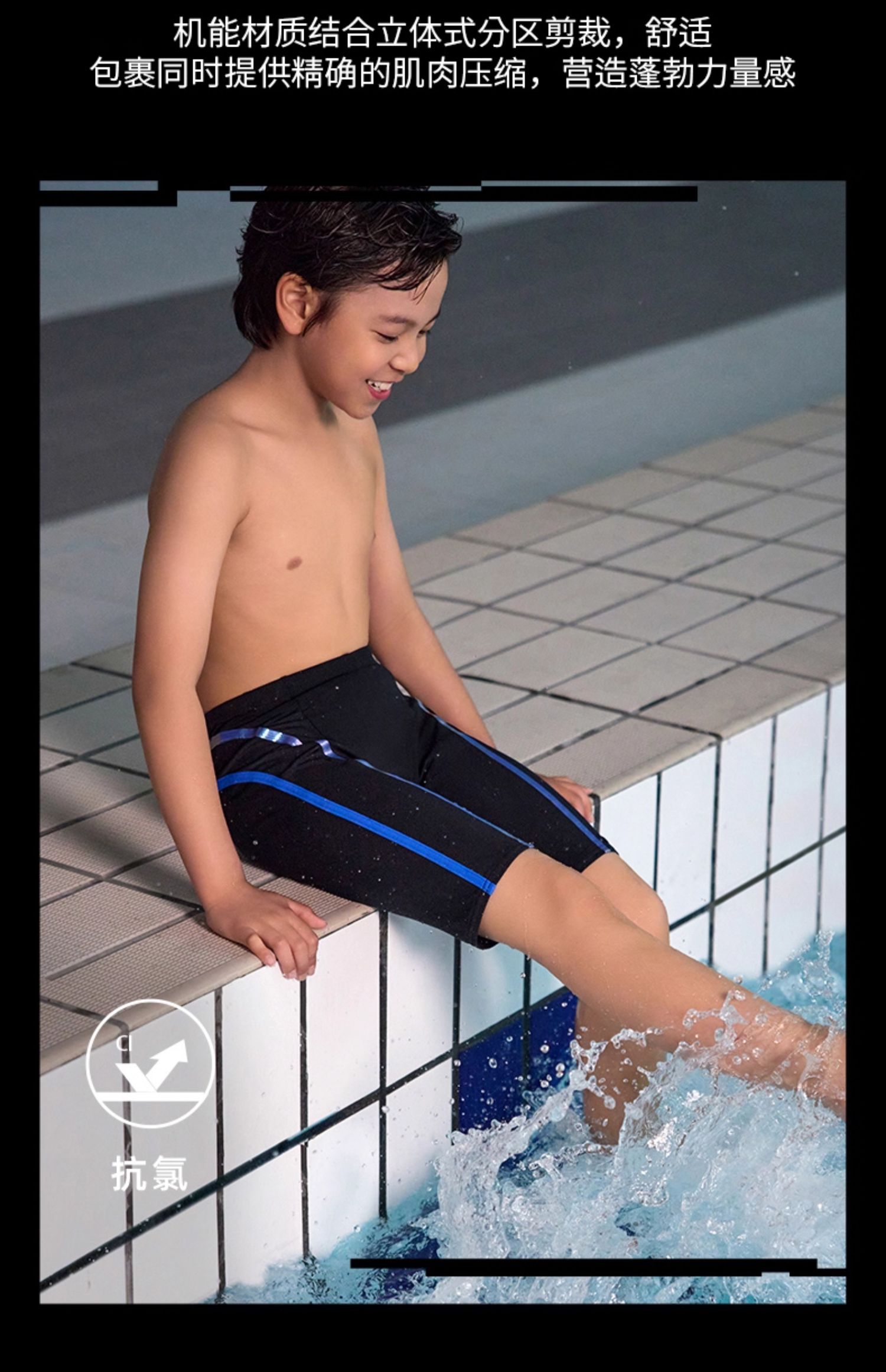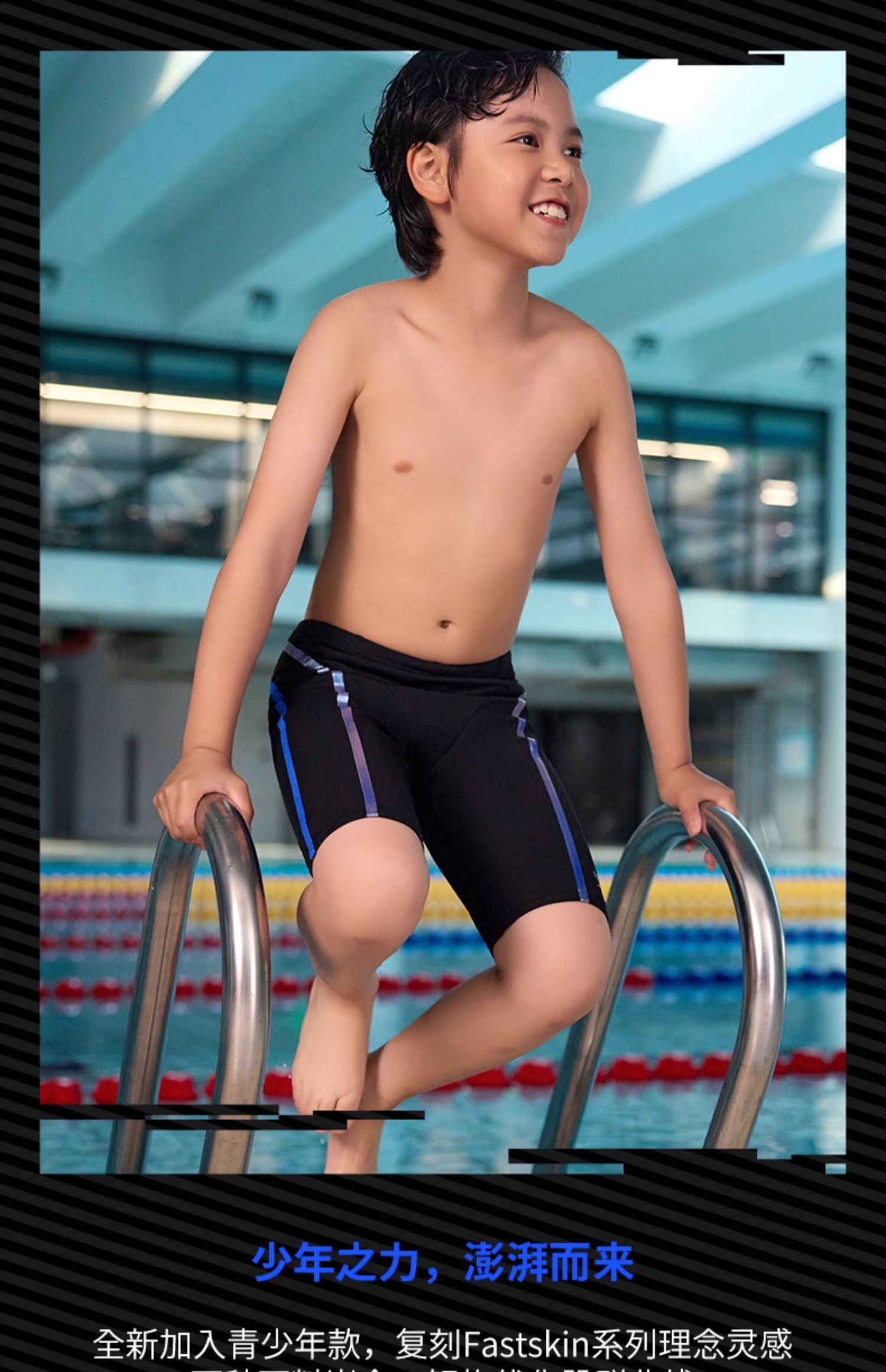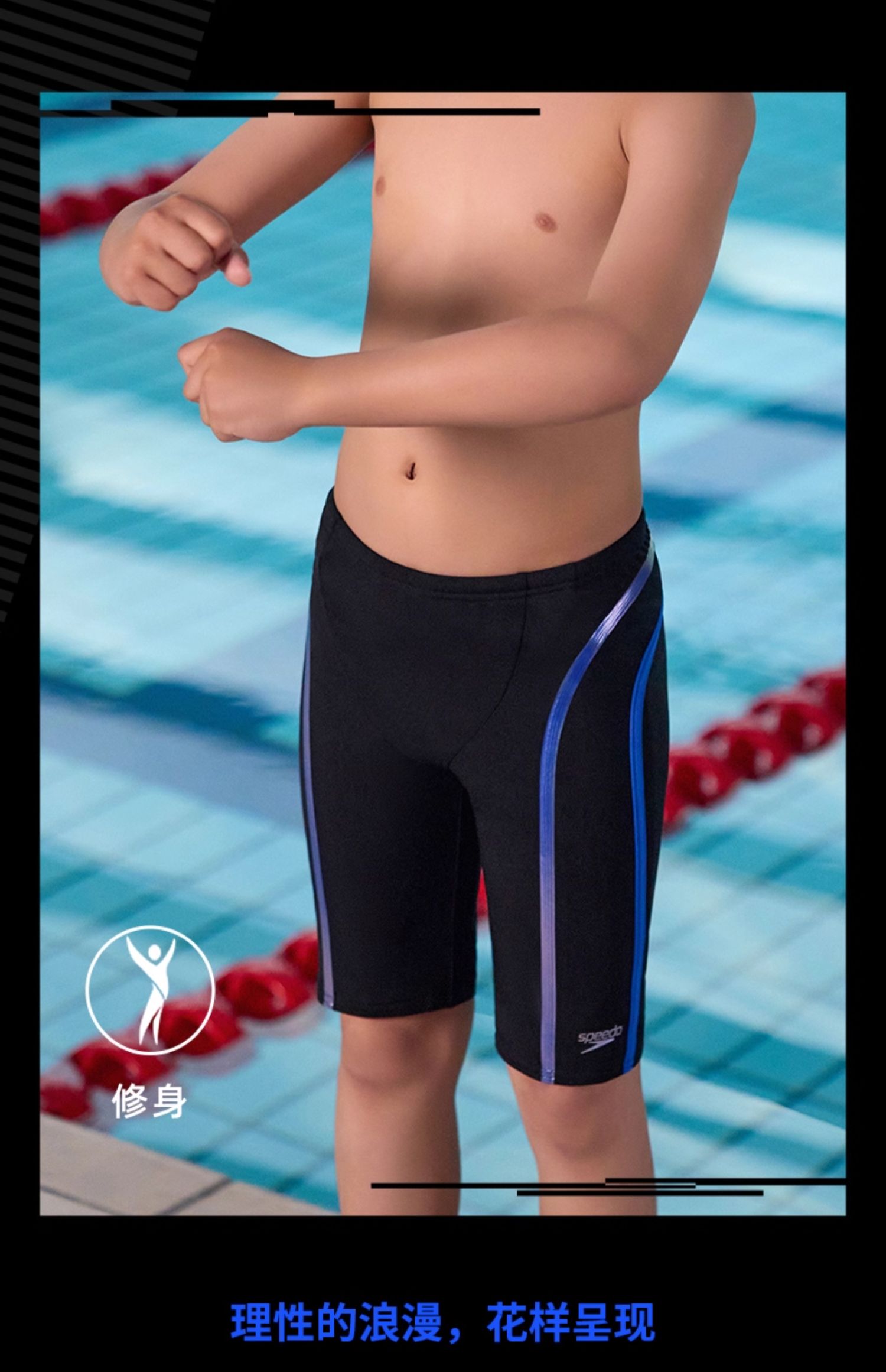 Speedo/速比涛 新升级电气矩阵黑标5.0青少年男及膝泳裤