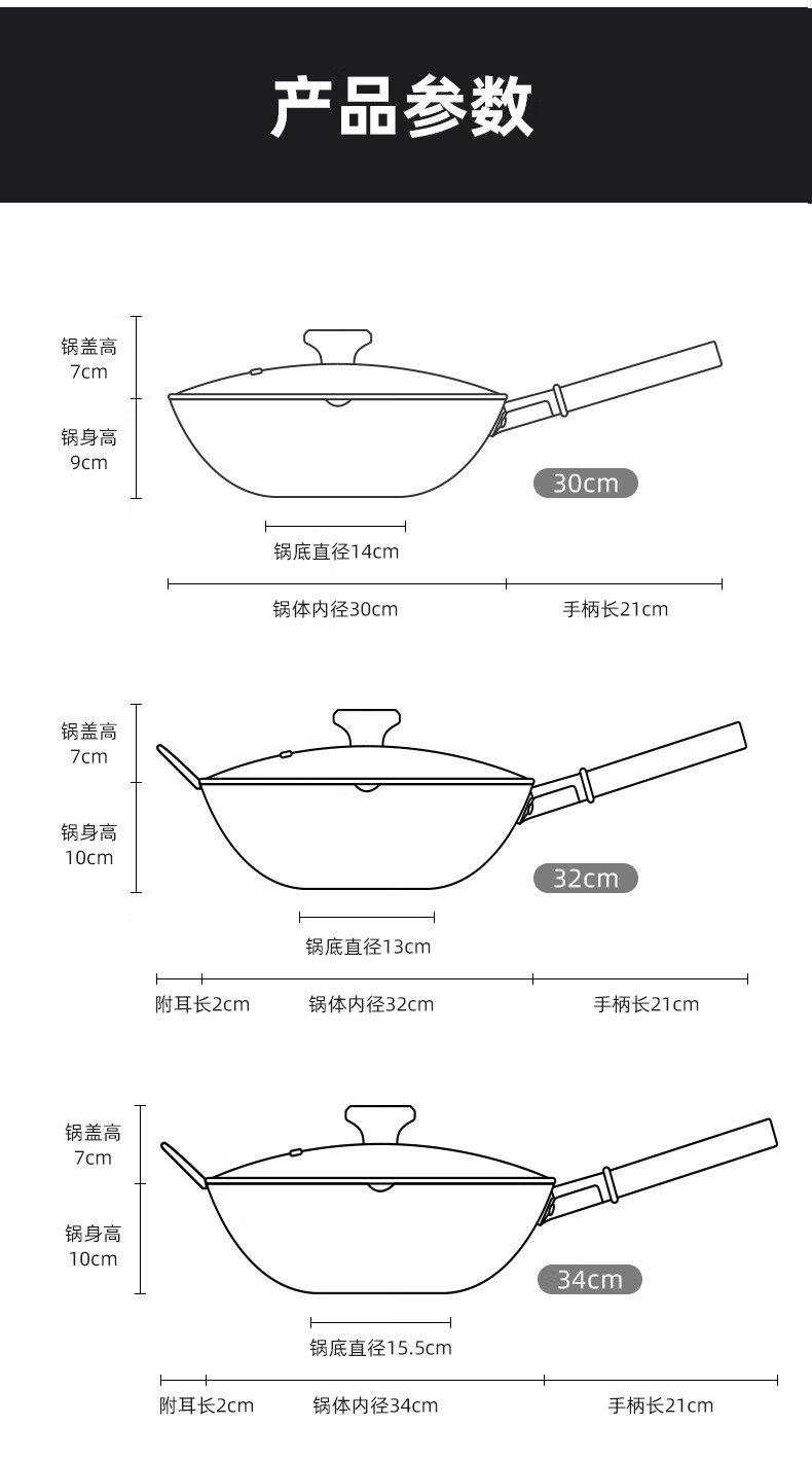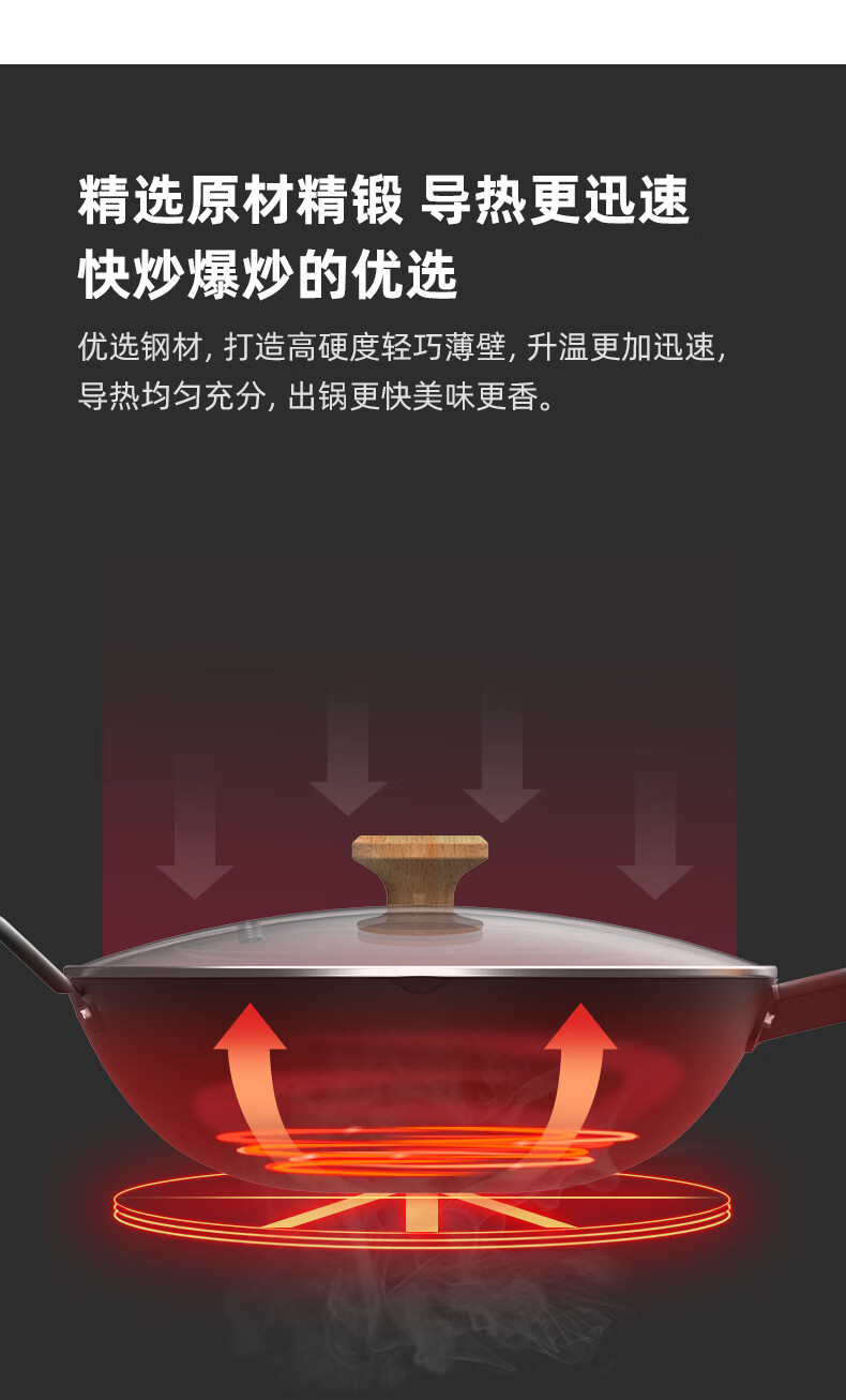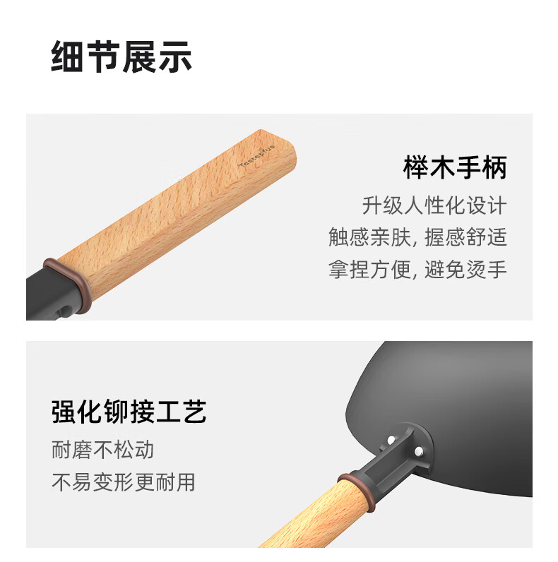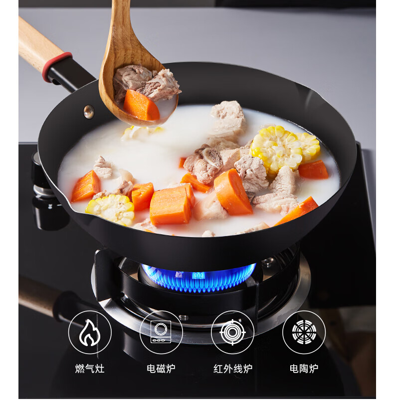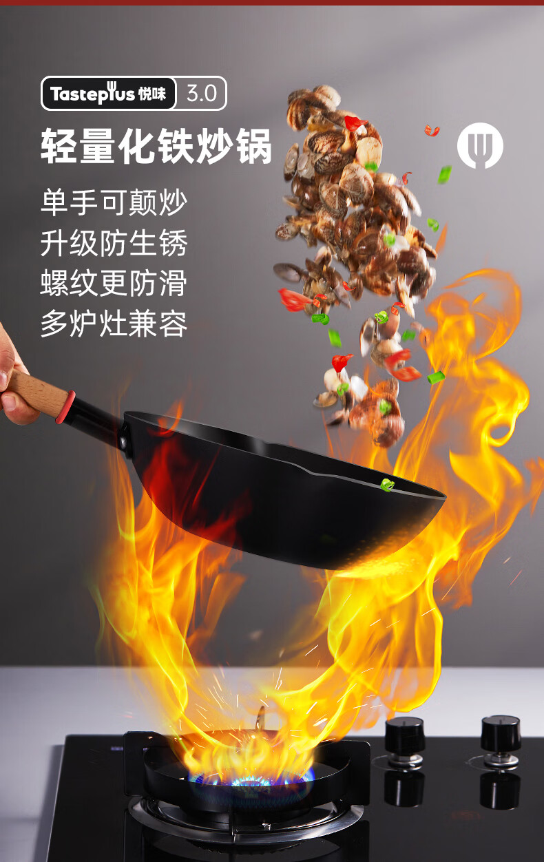 【6F】多样屋悦味轻便铁锅炒锅家用无涂层轻巧炒菜锅燃气灶电磁炉适用 带盖
