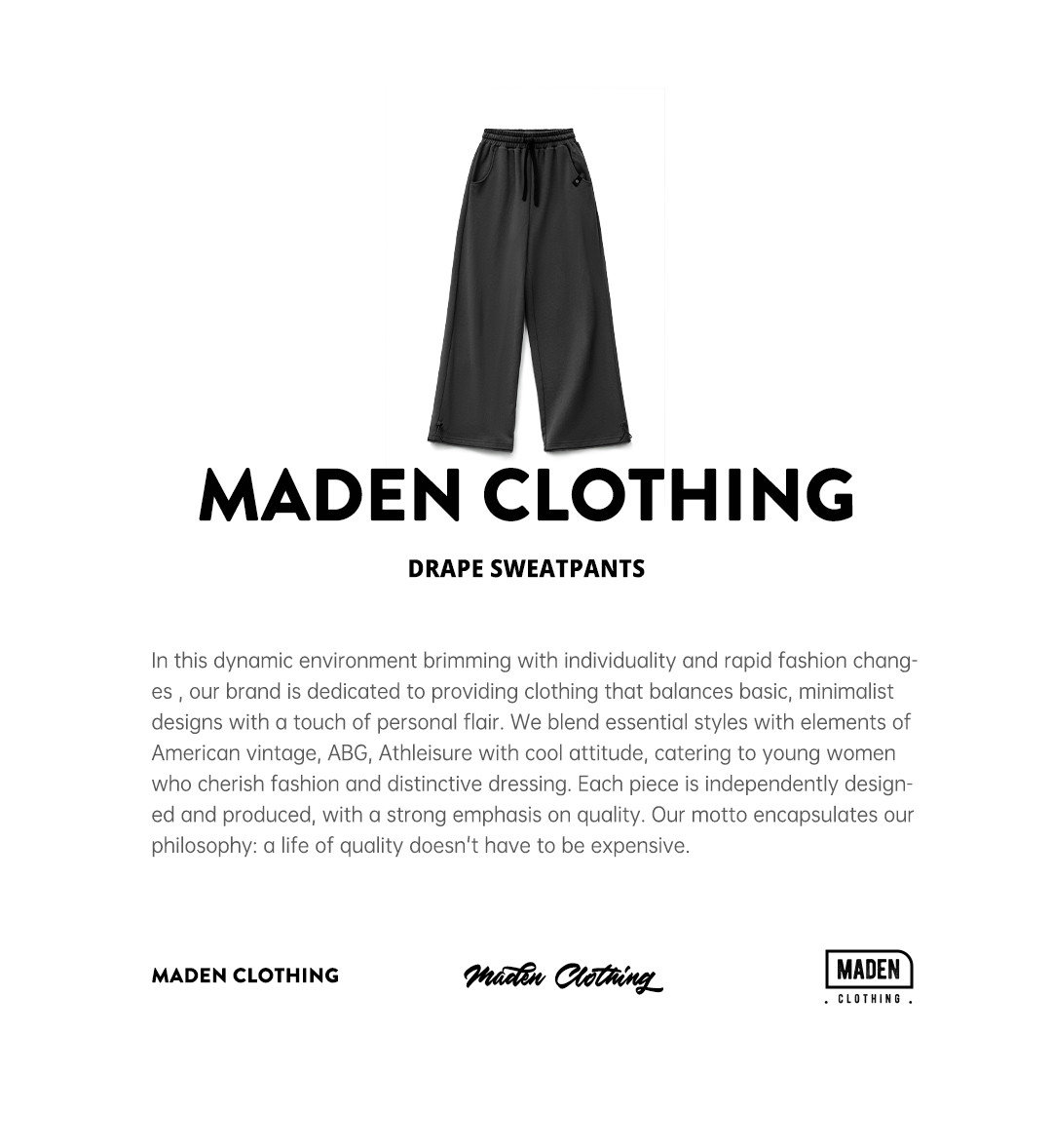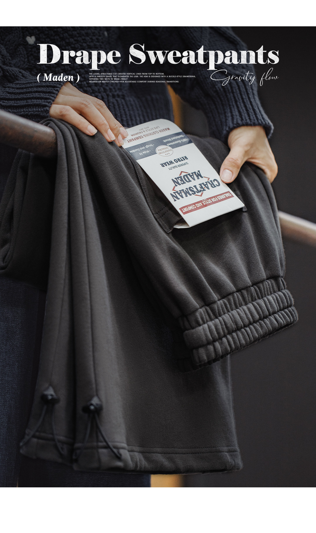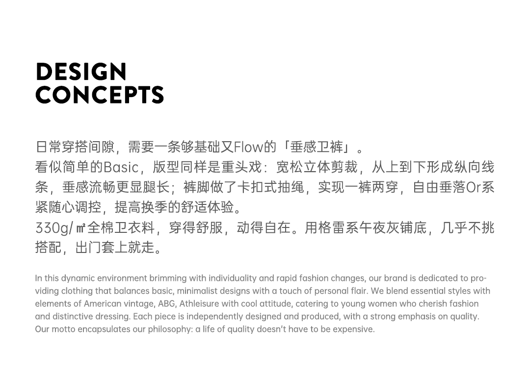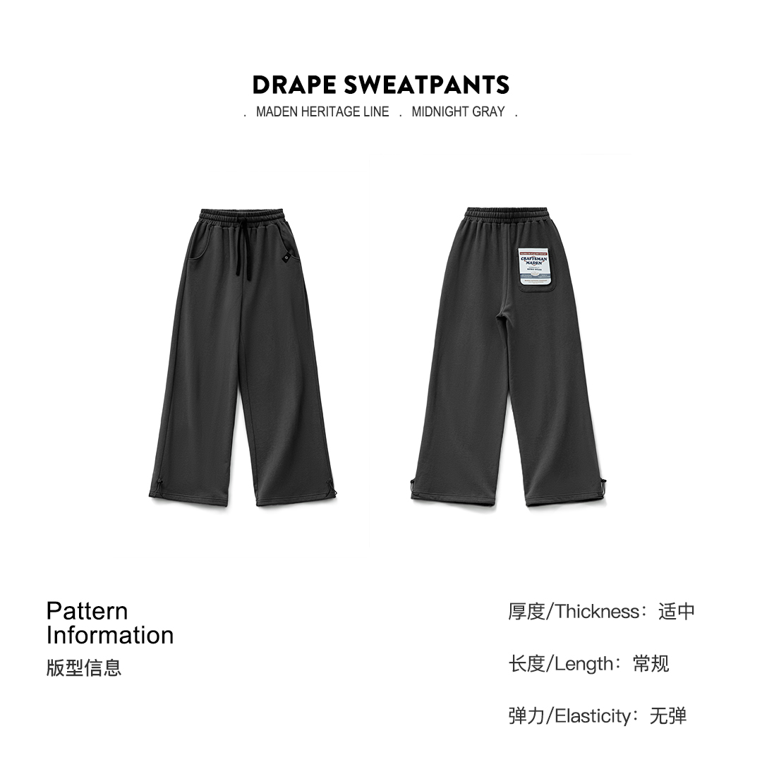马登灰色长裤垂感宽松纯棉松紧腰抽绳休闲直筒阔腿卫裤子女士秋冬