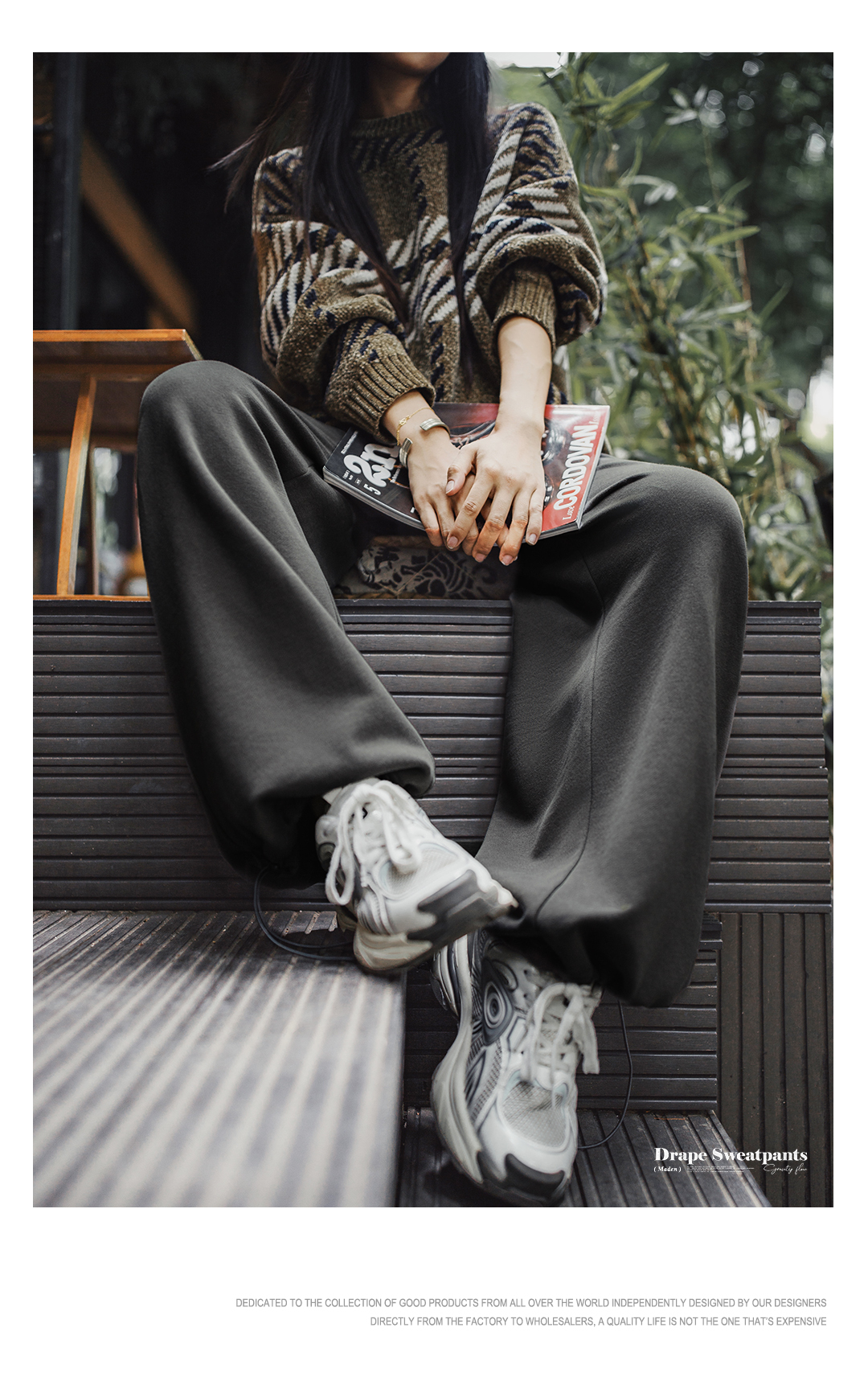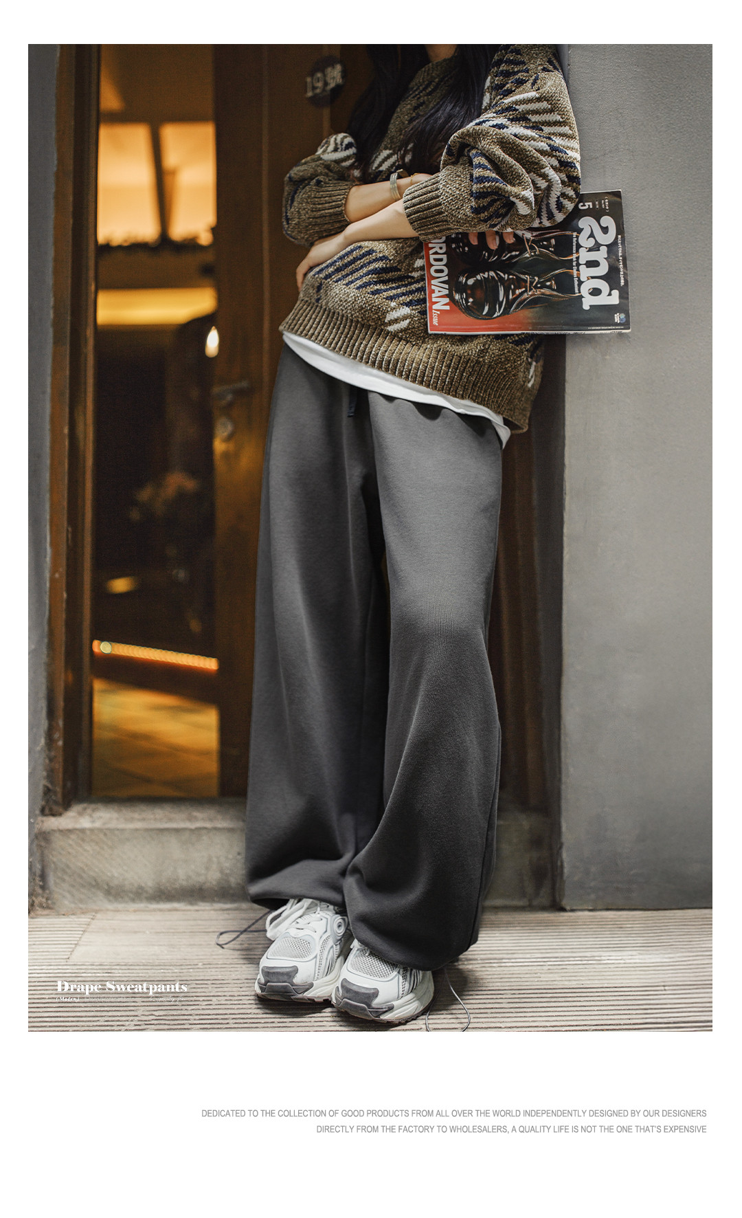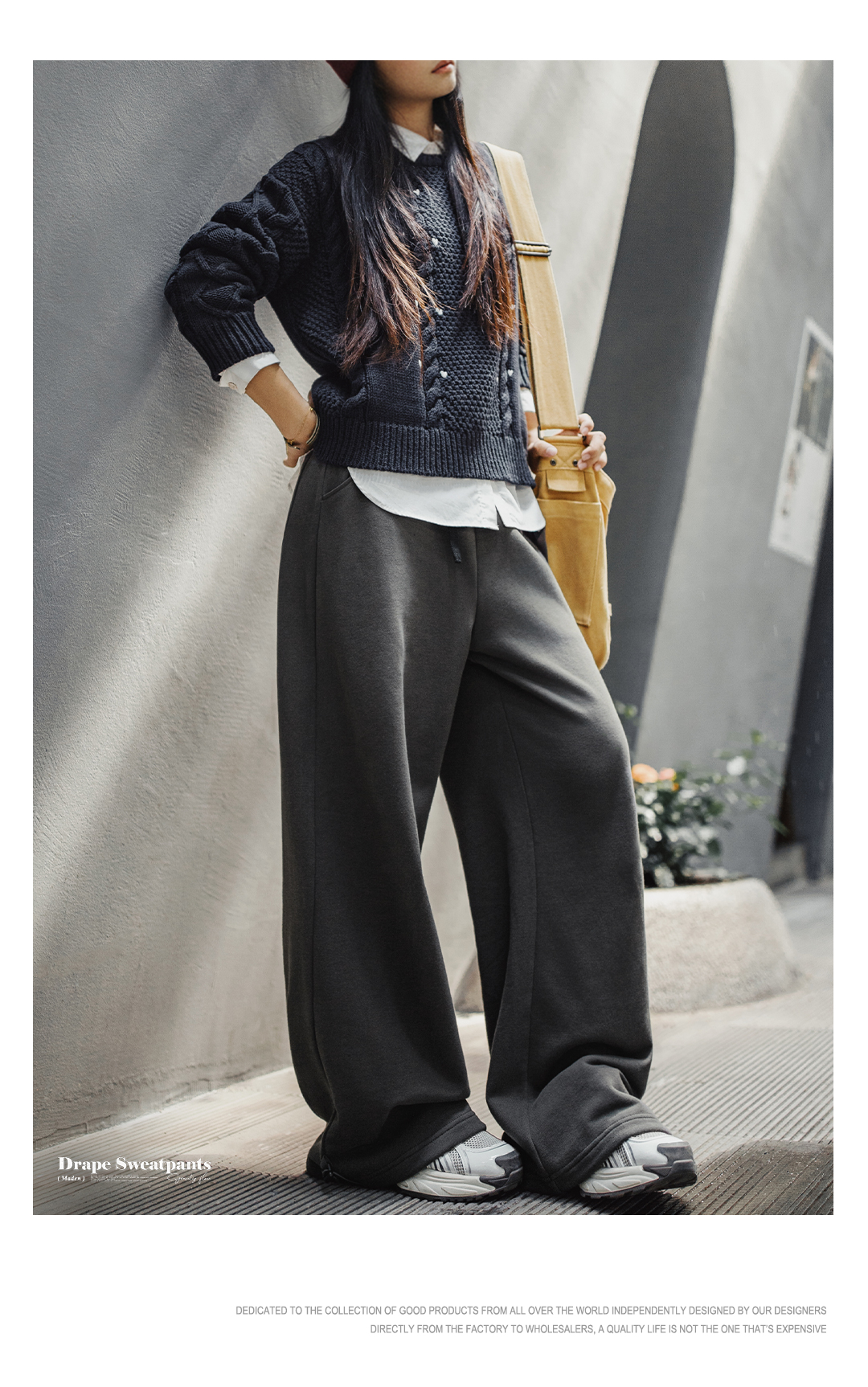 马登灰色长裤垂感宽松纯棉松紧腰抽绳休闲直筒阔腿卫裤子女士秋冬