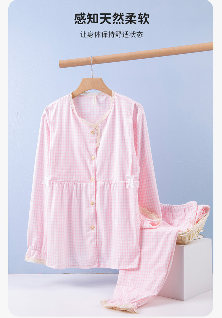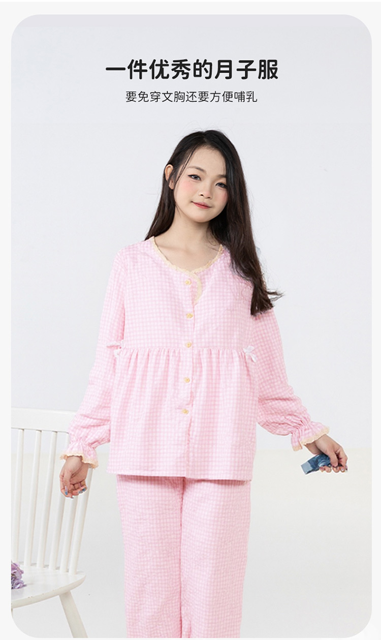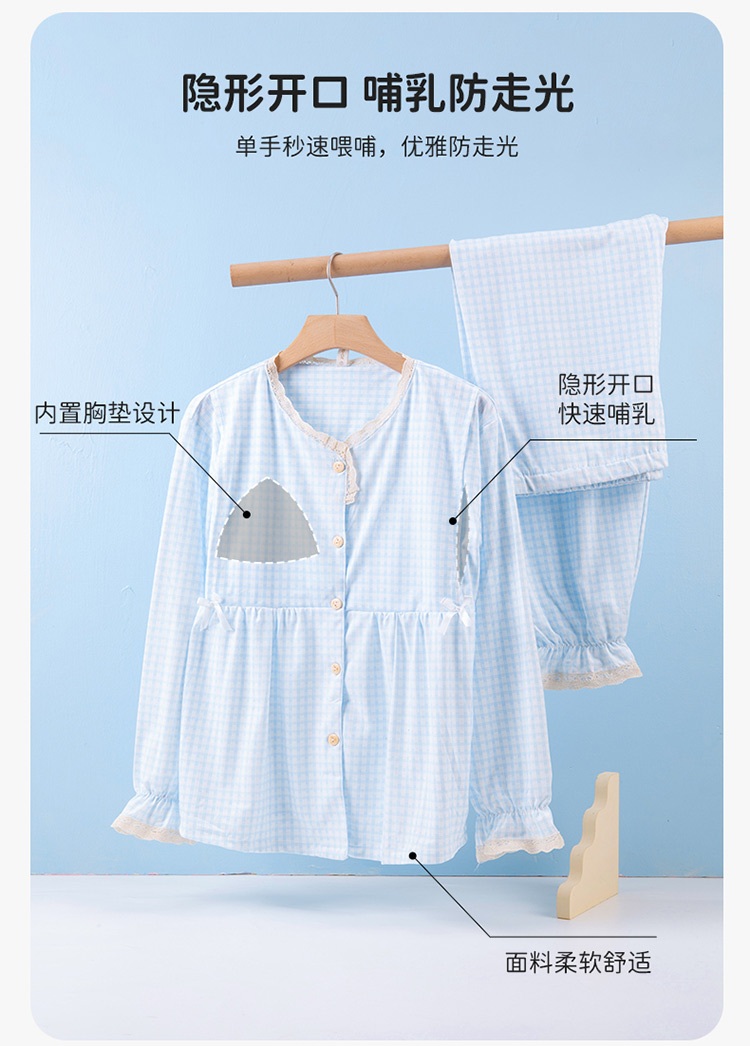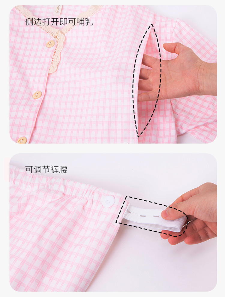 贝贝怡【小清新月子服】春夏新款宽松透气便携哺乳可调腰孕妇家居服套装ZB1EY001