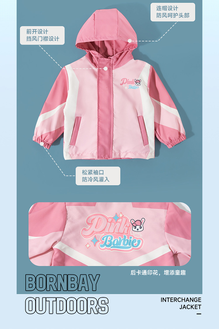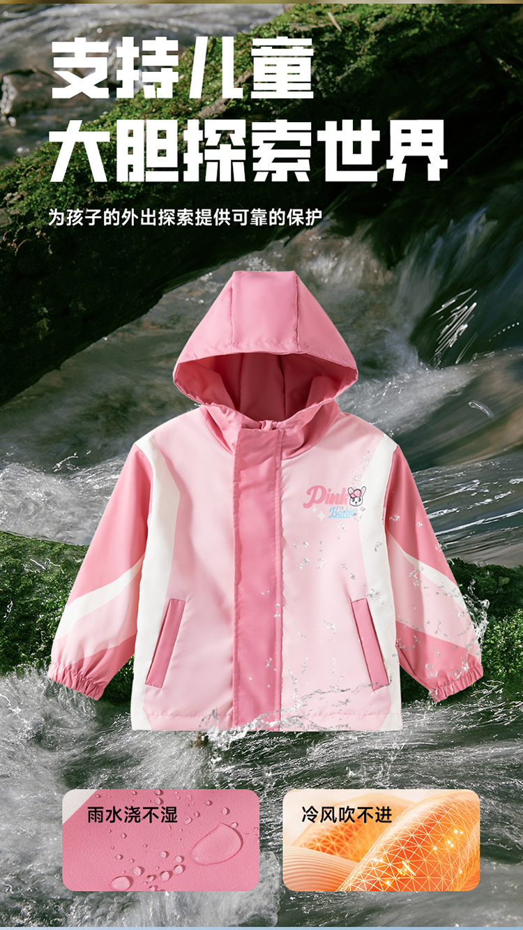 贝贝怡【户外运动】2025新款春夏女童外套薄款遮阳透气防风连帽夹克ZB1ES040