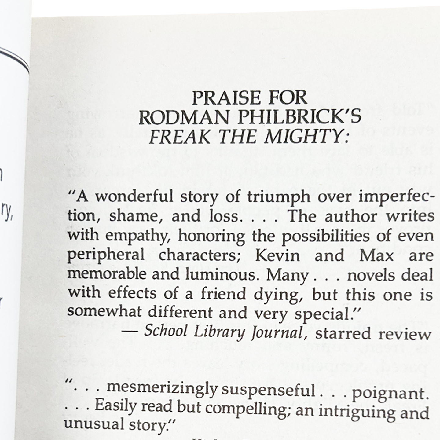 Freak the Mightyis a young adult novel by Rodman Philbrick. Published in 1993, it was followed by the novelMax the Mightyin 1998. The primary characters are friends Maxwell Kane, a large, very slow, but kind-hearted boy, and Kevin Avery, nicknamed “Freak”, who is physically handicapped but very intelligent. Kevin is diagnosed with Morquio syndrome.