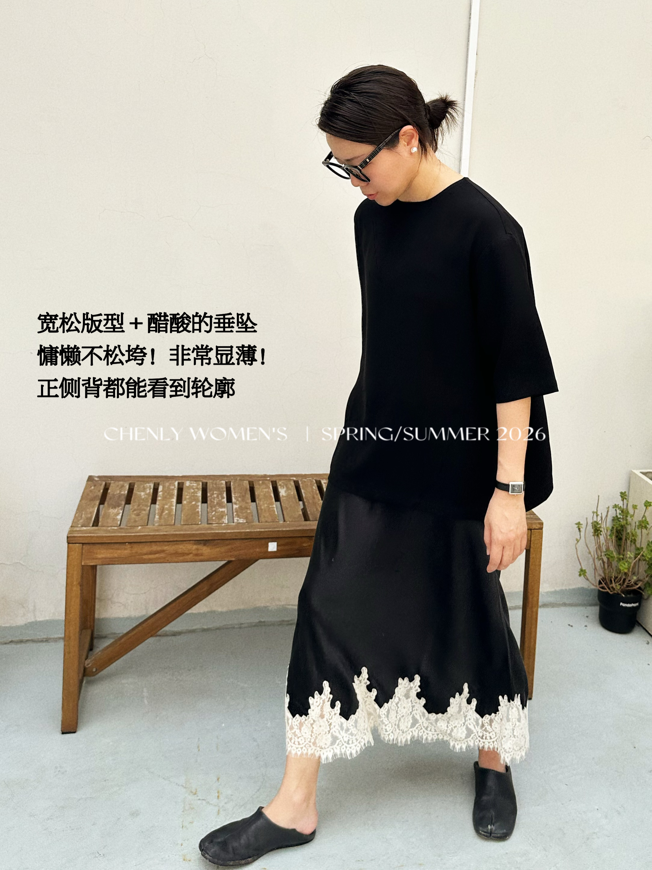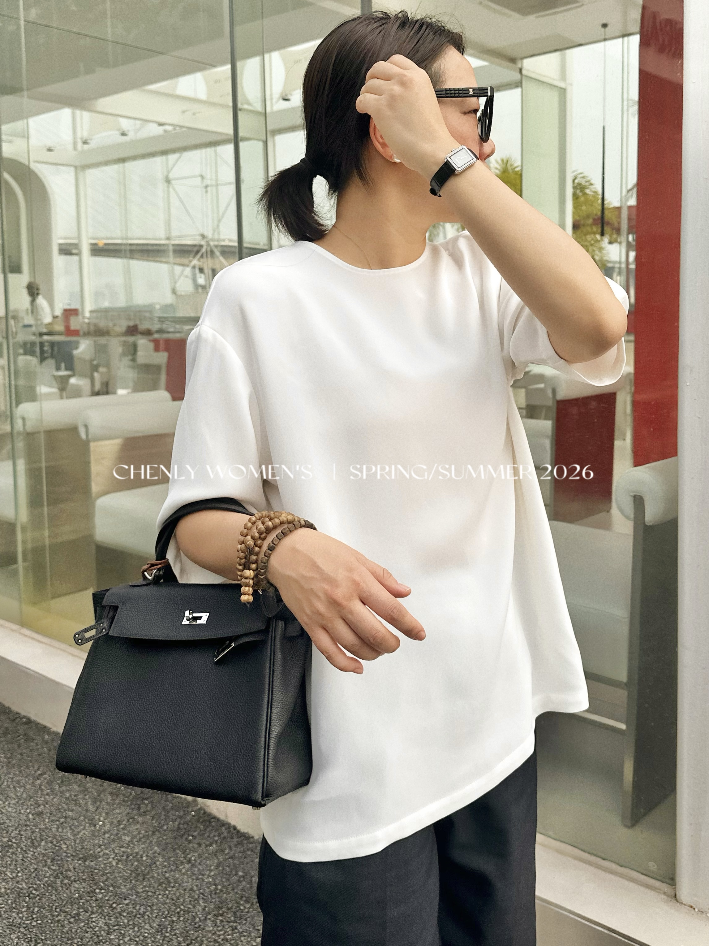 尘衣|26SS ROW极简小圆领垂滑醋酸短袖