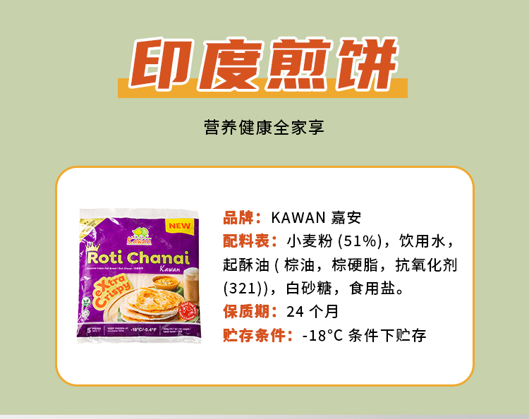 马来西亚Roti,马来手抓饼,印度飞饼,(5片*80g)/袋