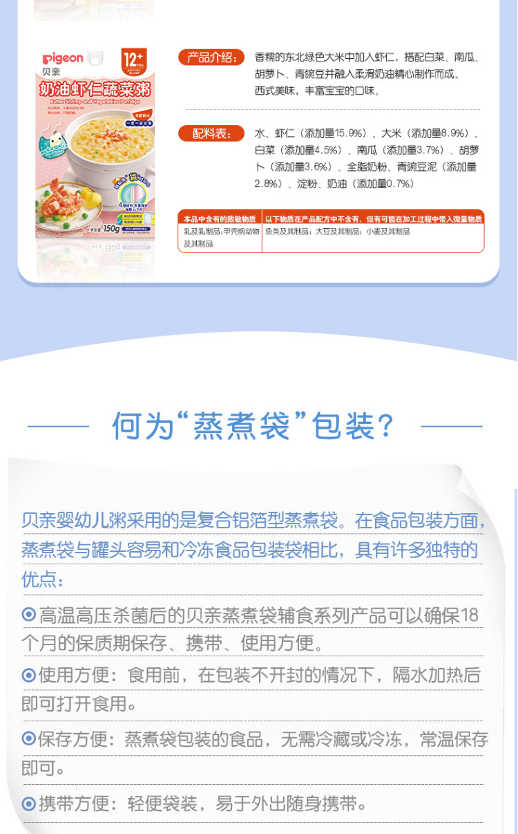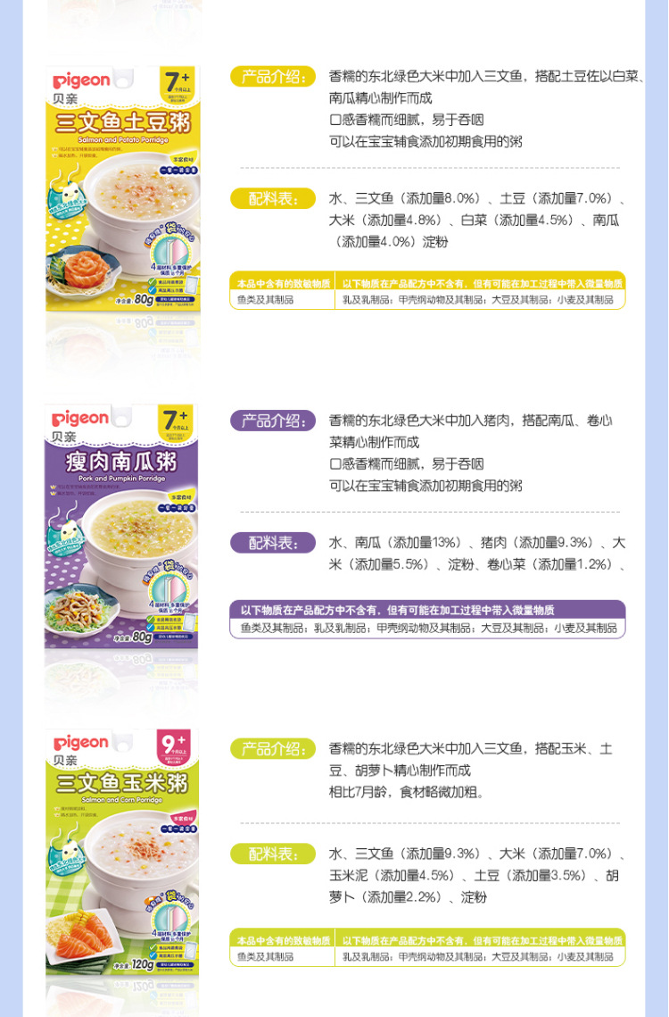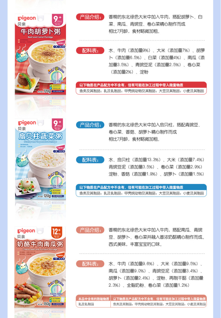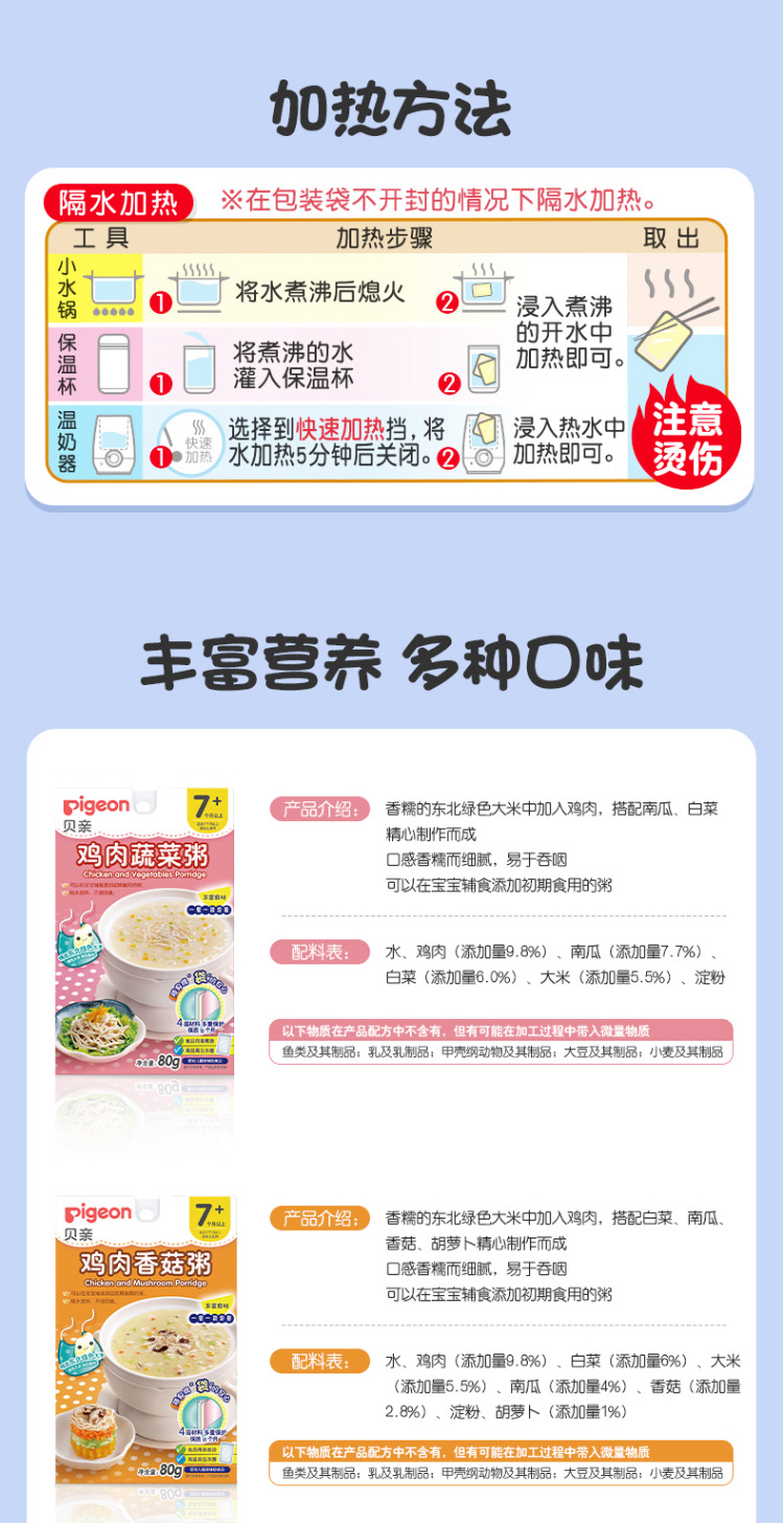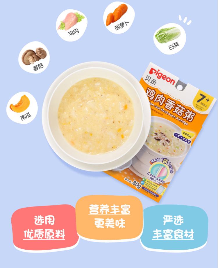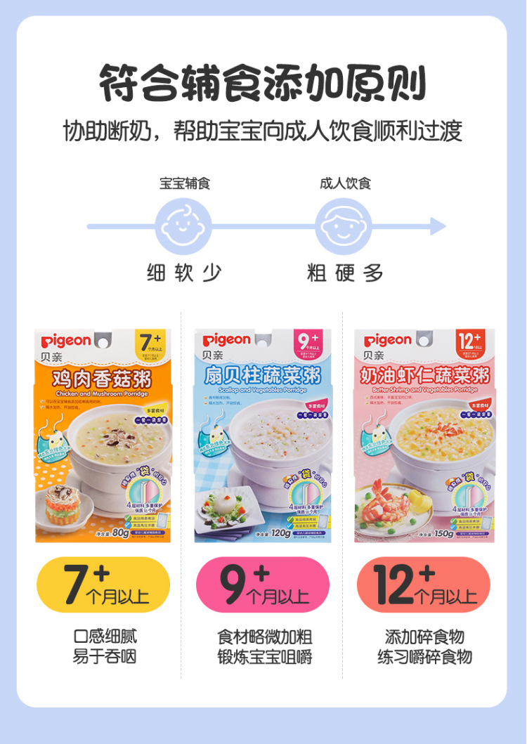 贝亲宝宝营养辅食粥 儿童即食粥米粉米糊 7个月以上 婴儿辅食粥 9种口味