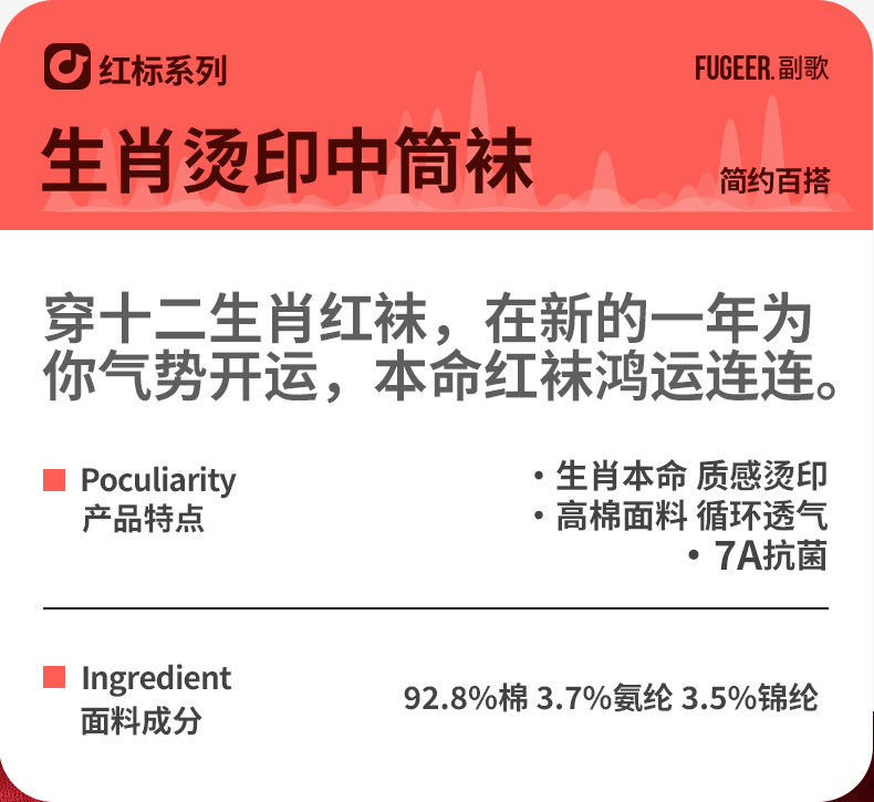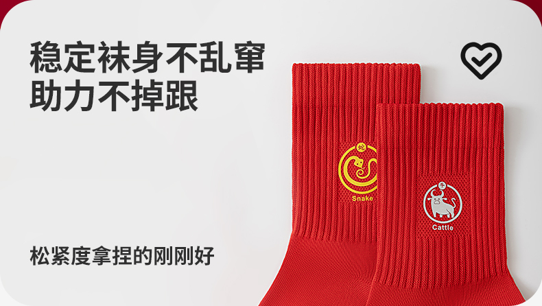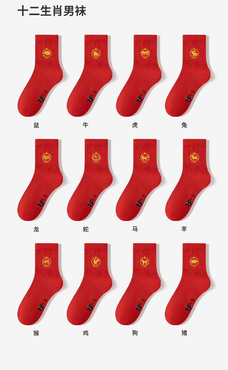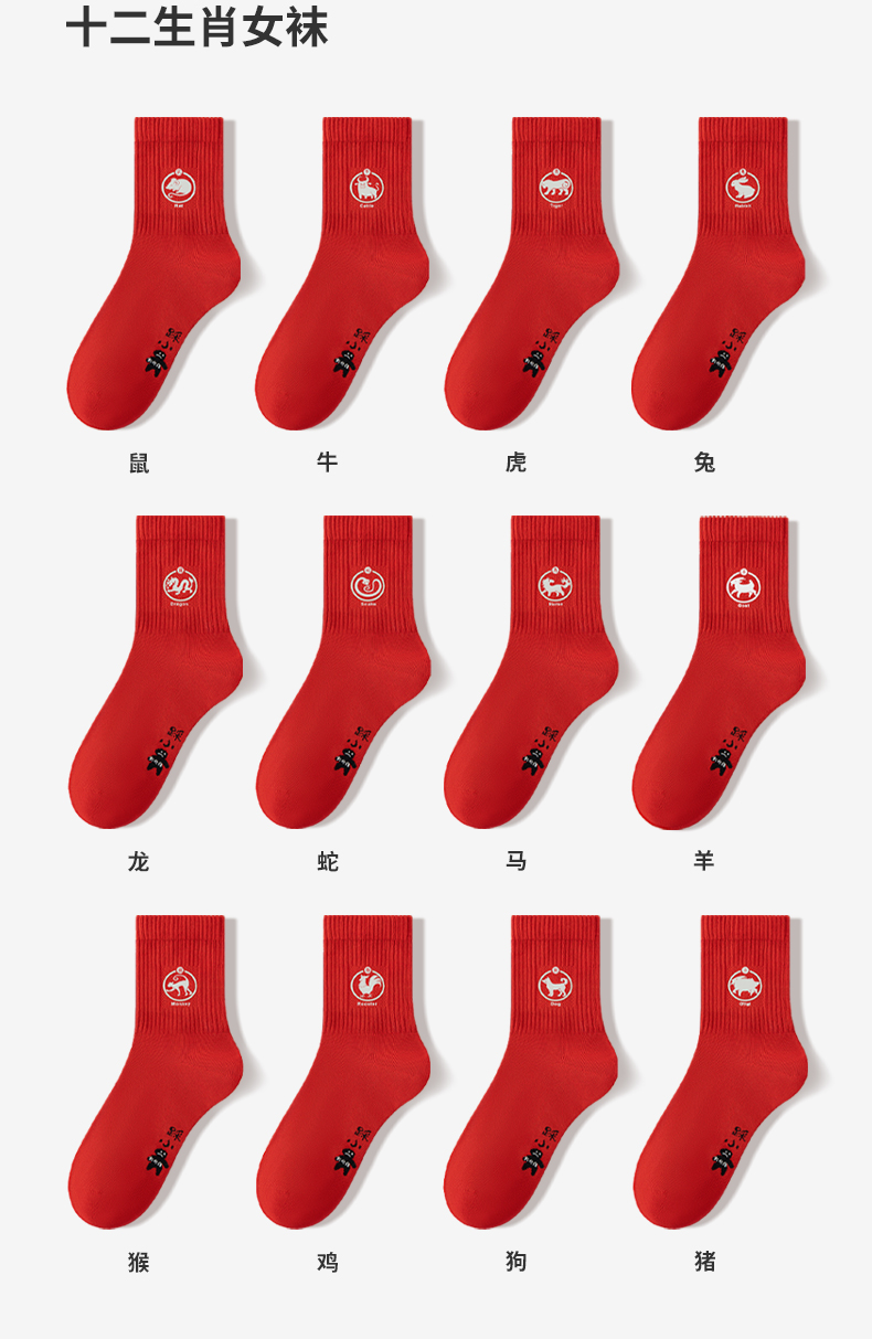 副歌7A抗菌高棉孔庙联名生肖袜男/女袜大红袜中筒袜3双2645/1592(2月5号后发货)