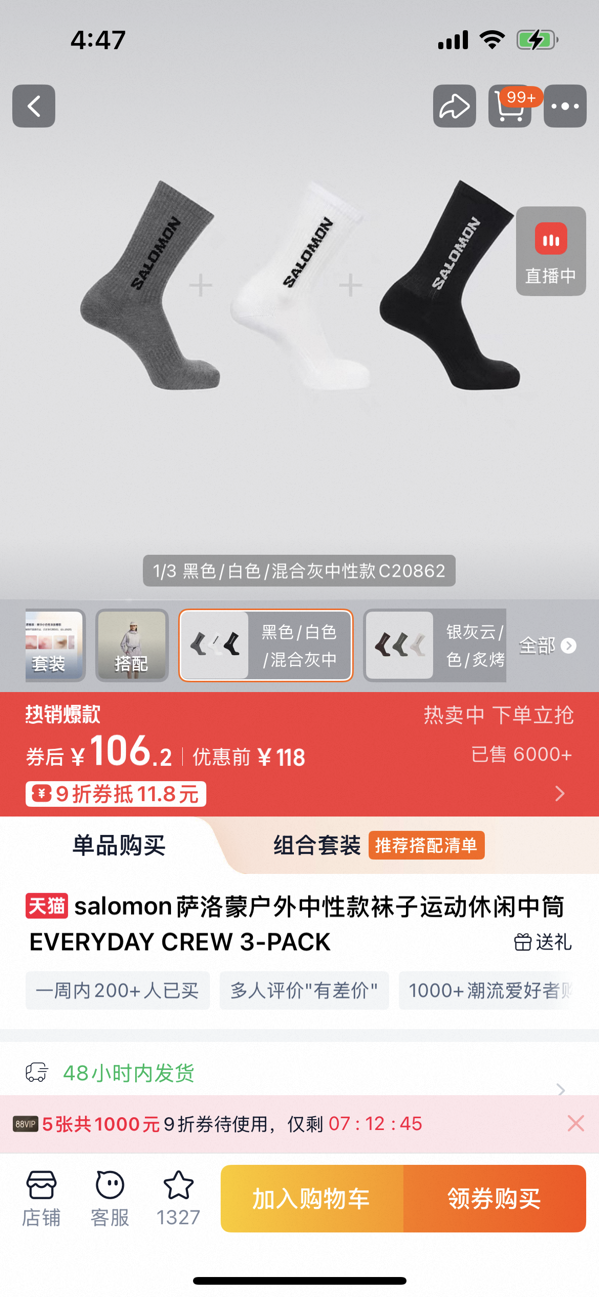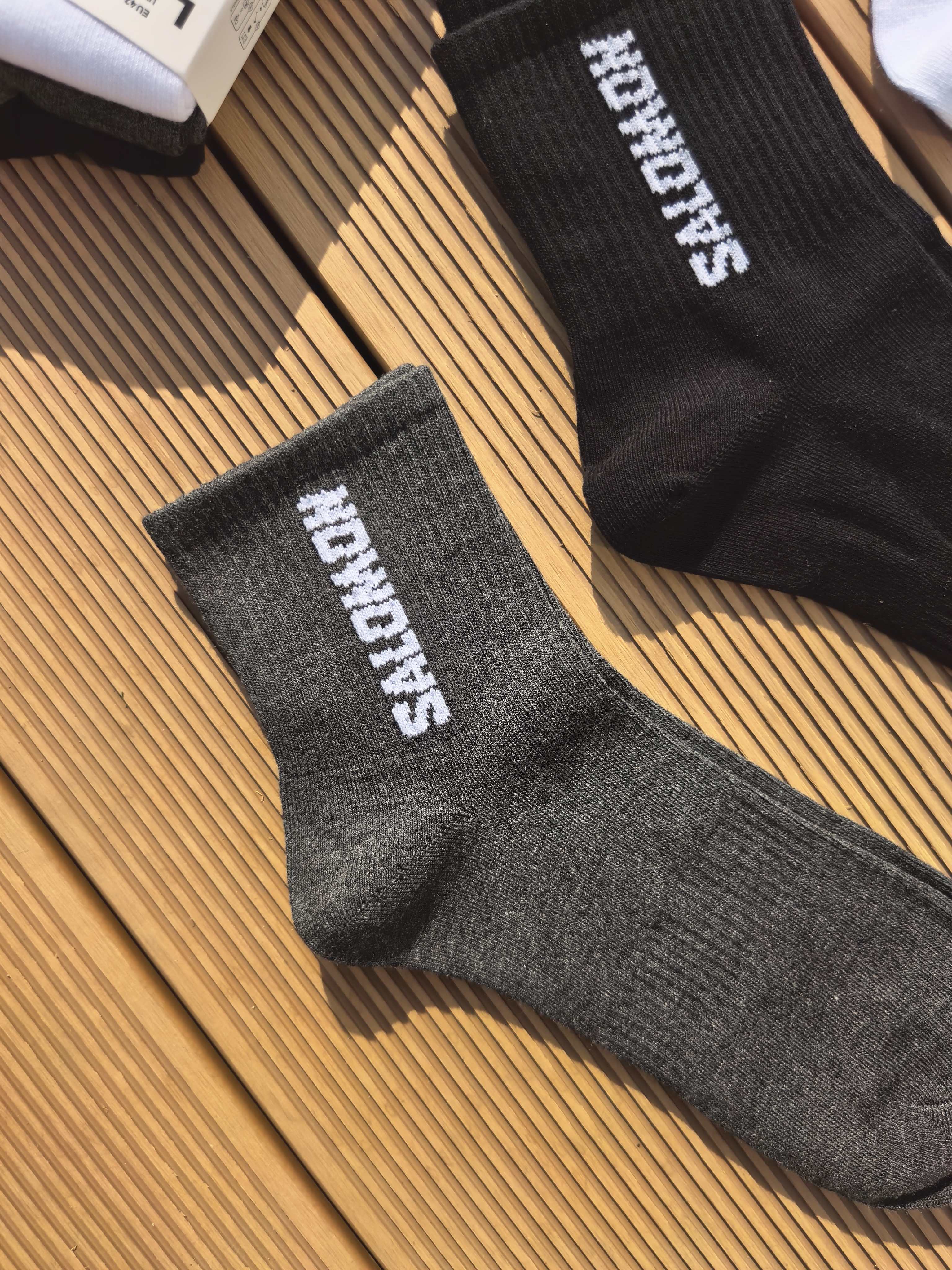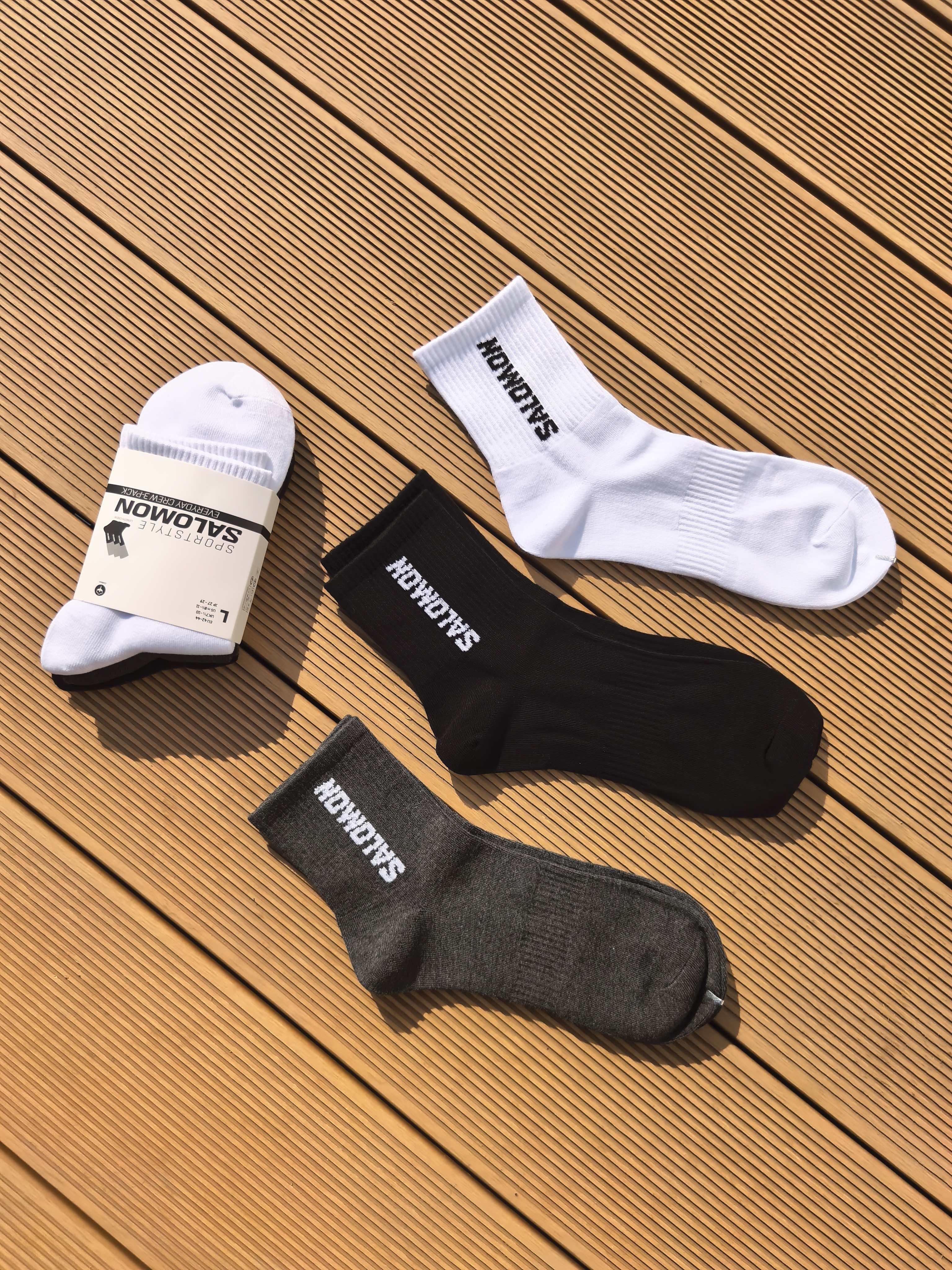 毒家! 纯原! 萨l蒙男女同款 运动休闲中性中筒袜 sa中筒袜黑白灰