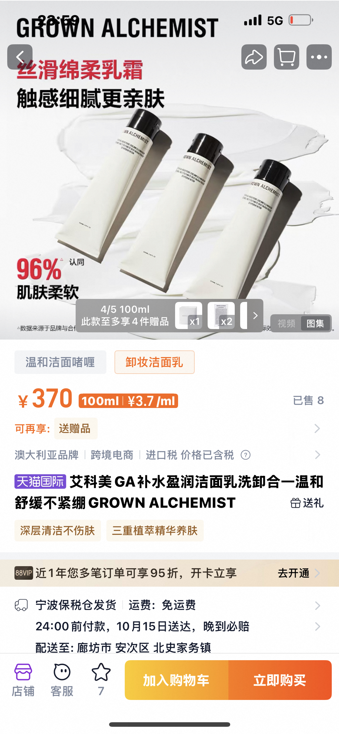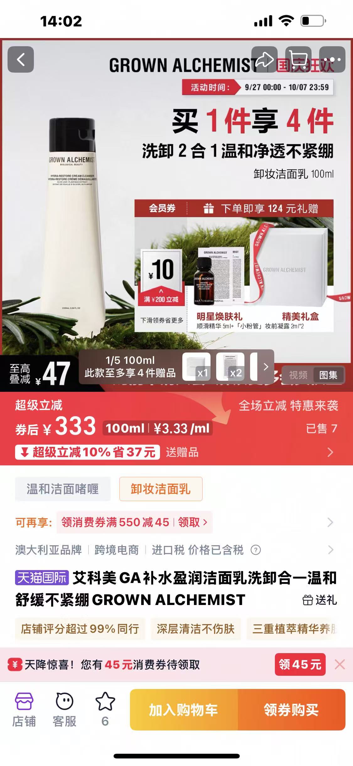 假一赔十,欧舒丹集团旗下准一线品牌,专柜699元!艾科美GA补水盈润洁面乳洗卸合一温和舒缓不紧绷GROWN ALCHEMIST 100g正装洗面奶