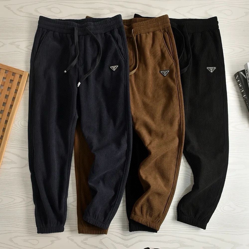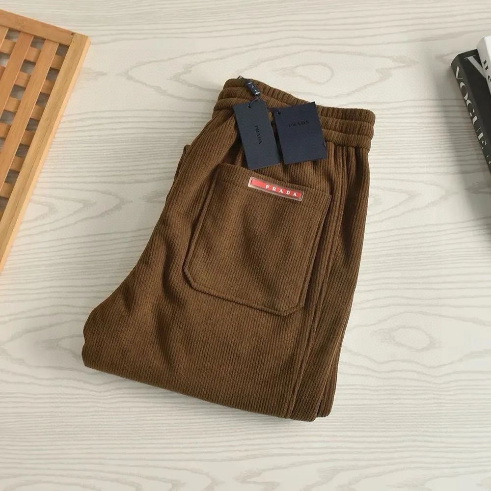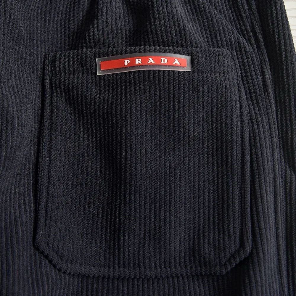 【 复古时尚!雅痞风范!】PRADA(普拉达)秋冬新款灯芯绒休闲裤!时尚经典裤型,科技切绒技术!松紧腰身及脚口,双徽标铭牌装饰!