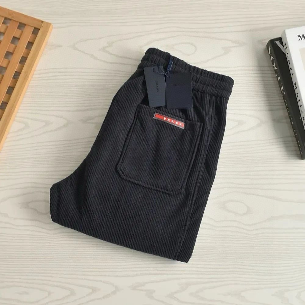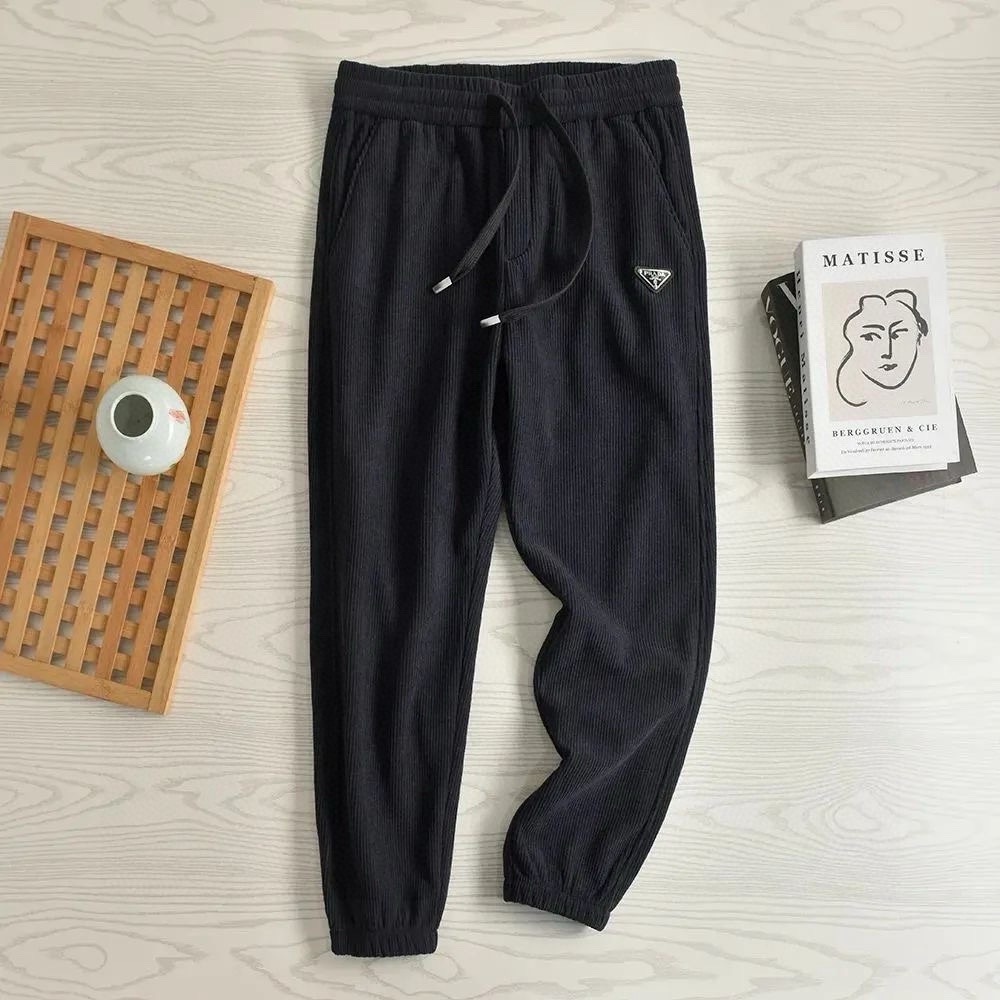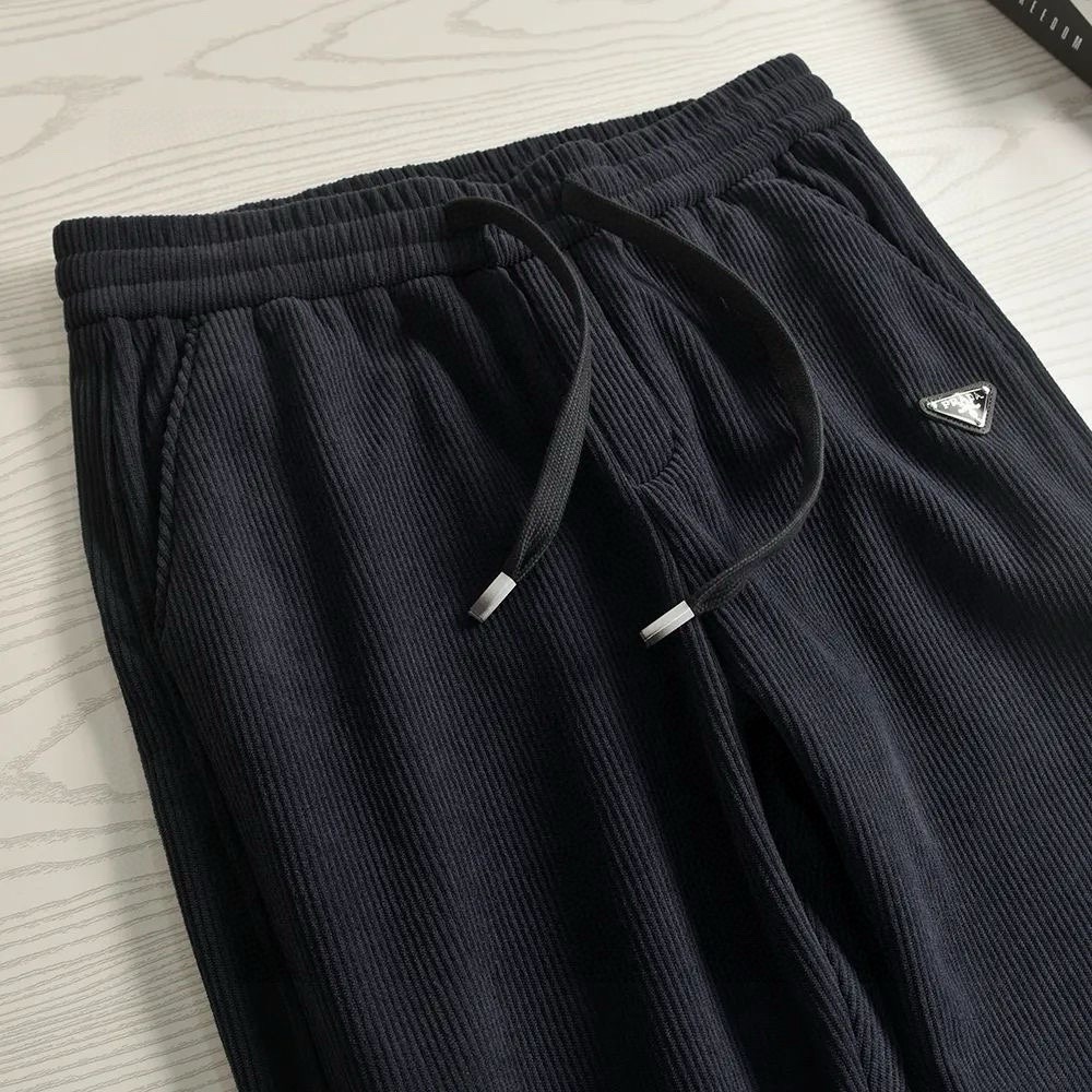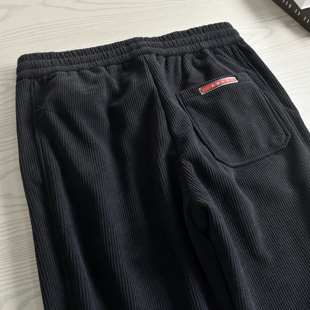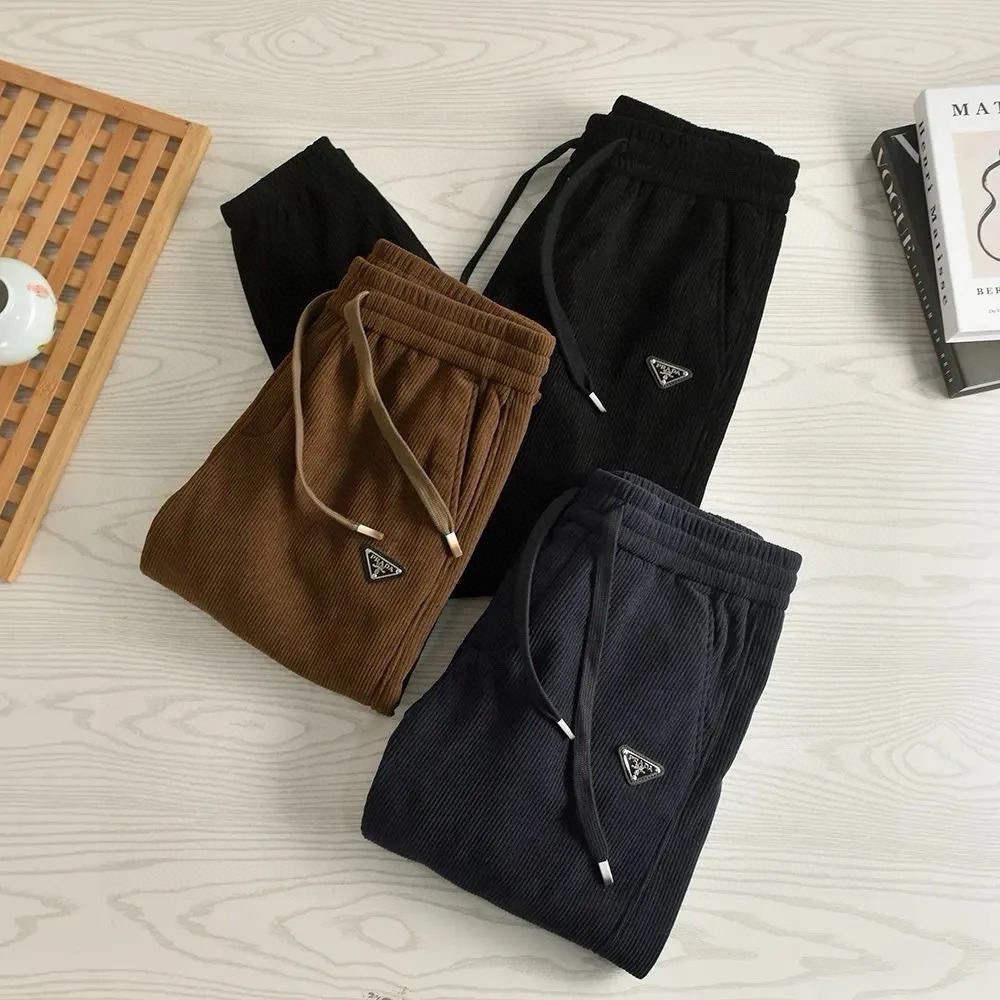PRADA(普拉达)2025秋冬季新款灯芯绒休闲裤!略微收口的直筒版型,松紧腰+抽绳设计,适中的裤腿,松紧脚口,上身自然修饰腿型!搭个宽松卫衣毛衣,非常帅气!